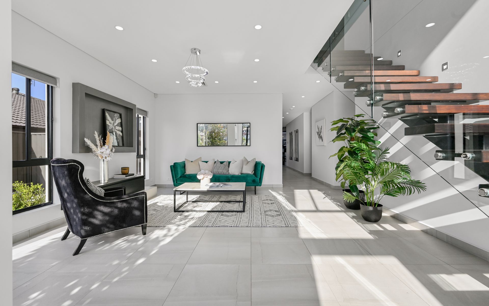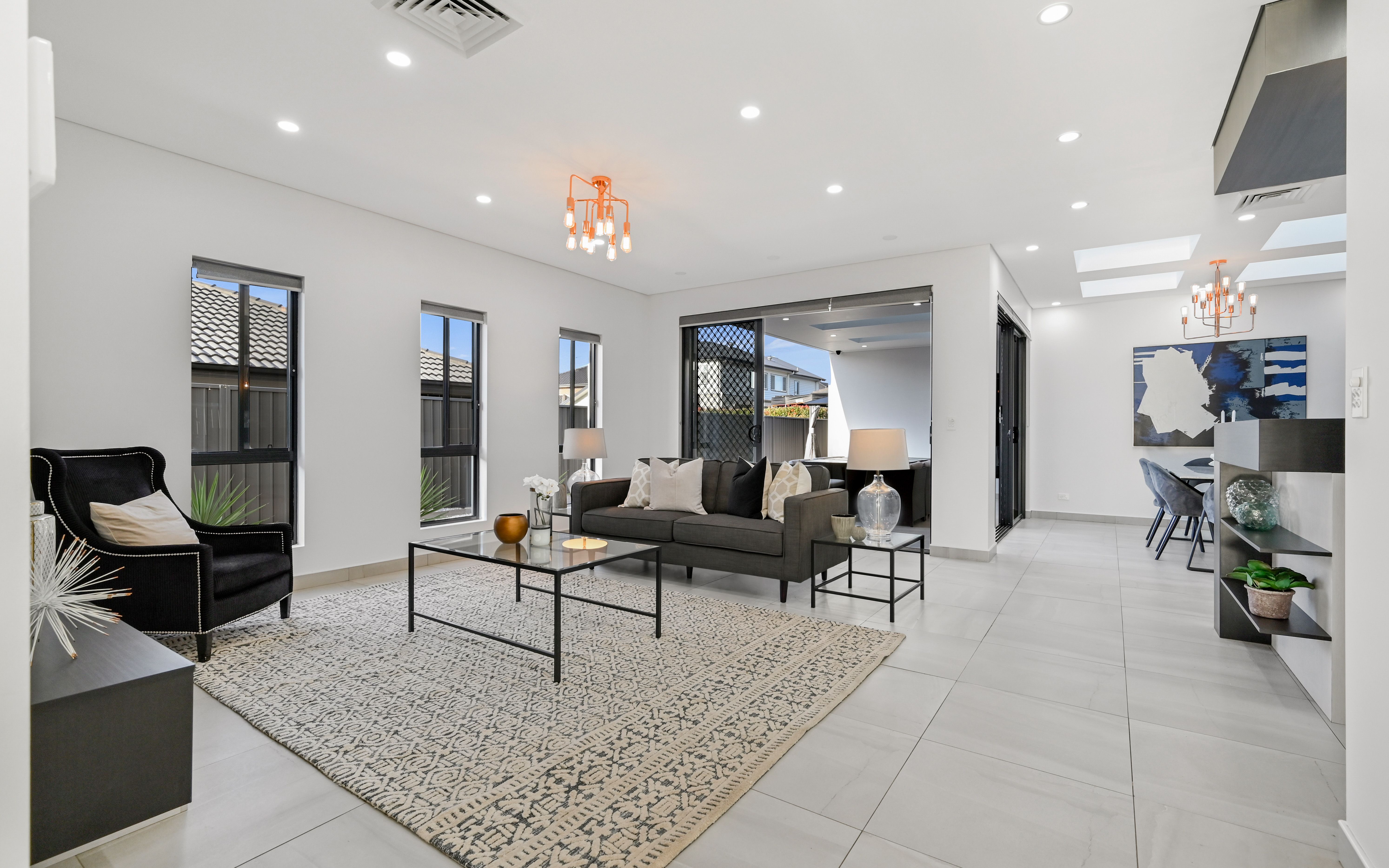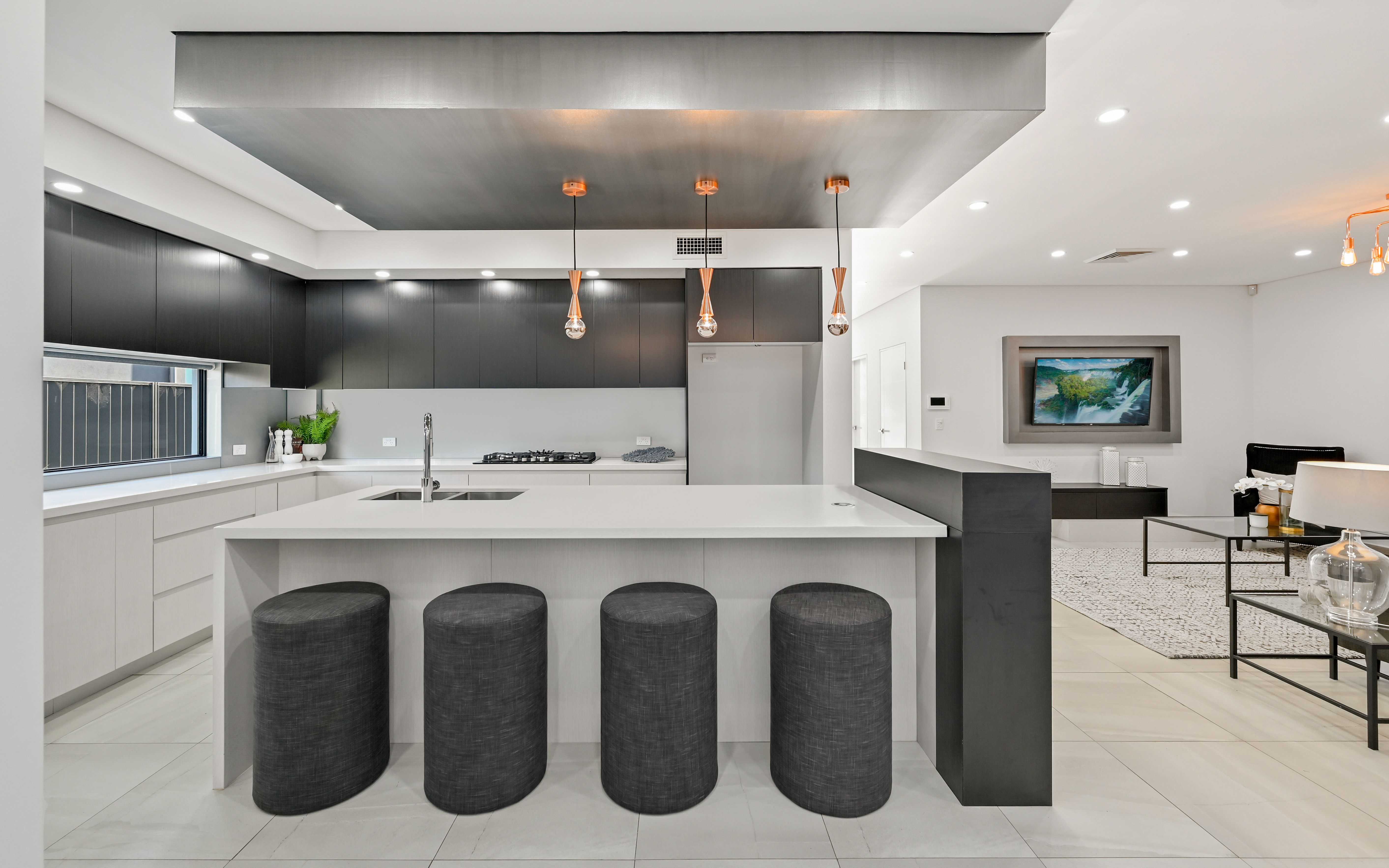 Host of quality Inclusions: - Tiled downstairs - Timber flooring upstairs - Downlights throughout - Ducted AC - Blinds throughout - Floor to ceiling tiled bathrooms - Two freestanding bathtubs - Shower niches - Floating vanities - Built in robes to three - Walk in robes to two - Bedroom four offers a built in study - Shadowline cornices - Separate media room with a twinkle ceiling and stepped flooring - Ample of bench and kitchen storage - Soft close cabinets - Undermount sink - Gascooking - Integrated dishwasher and microwave - Open butlers pantry with additional sink, cooktop & oven - VELUX skylights - Custom stone waterfall benchtops - Floating staircase with glass balustrades - Custom joinery to living areas - Feature pendant lighting - Dual double gated side access- perfect for the trailer or caravan & granny flat access - Additional concrete entertaining area