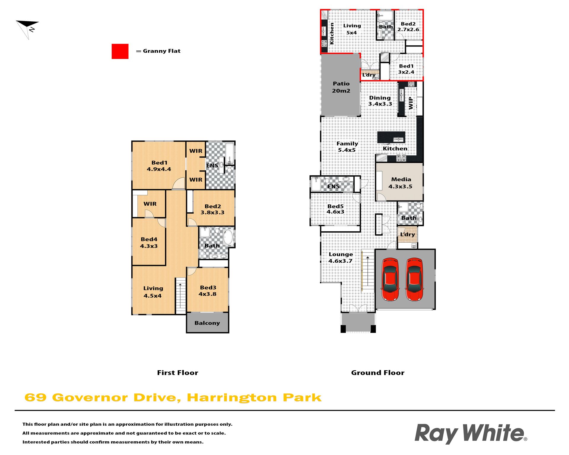 Four of the bedrooms are located upstairs and are generous by design, offering walk-in fitted robes, private balcony to bedroom three, all serviced by the second complete bathroom. The master suite is positioned to the rear of the home and offers beautiful district views with a completely fitted his/her walk in robe that flows effortlessly through to the grand open ensuite complete with a host of quality fittings and fixtures. Downstairs you will find the fifth guest bedroom, consisting of a built in robe and private ensuite. The council approved attached granny flat is strategically placed to the rear of the property and boasts two large bedrooms with built in robes, open family and kitchen with a feature window splashback allowing an abundance of natural light in as well as its own separate double gated side access for parking.