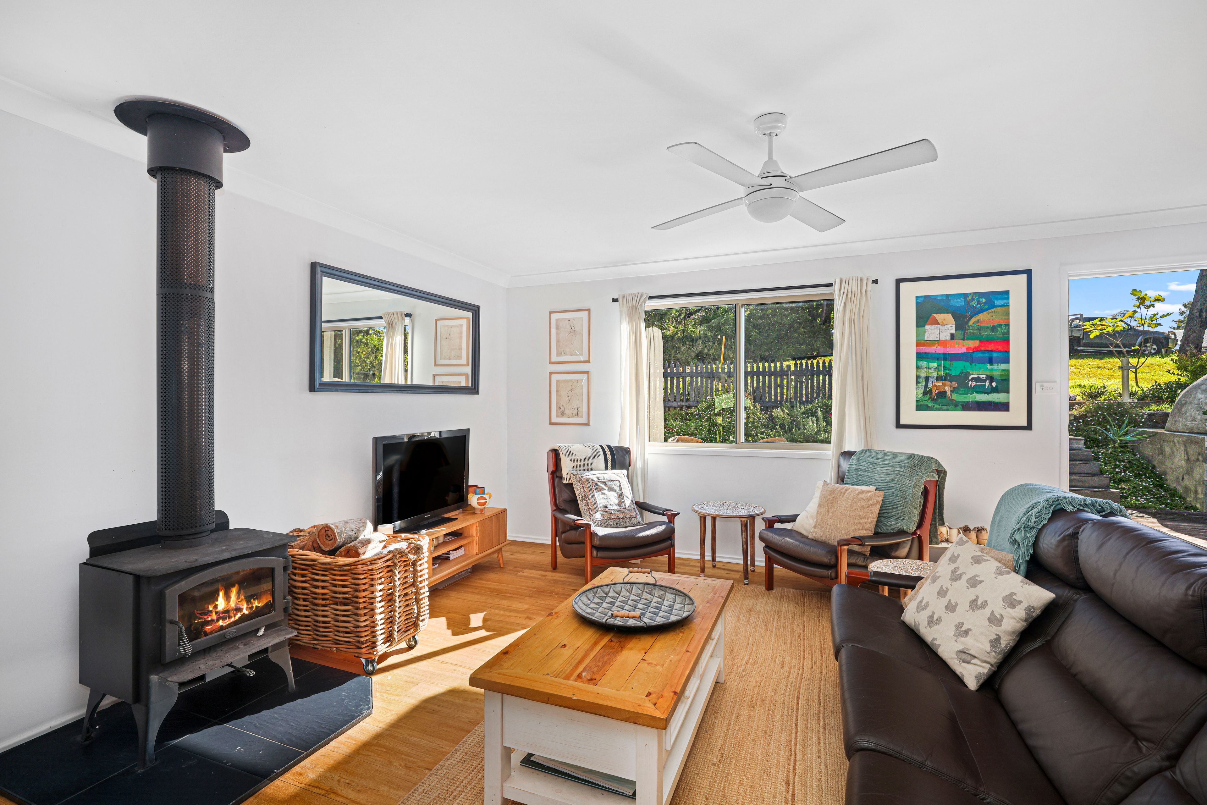 As you approach the cottage, you'll be greeted by the large deck complete with your very own wood fire pizza oven. Step inside, and you'll find yourself in a warm and welcoming living space, complete with timber look flooring an inviting fireplace, and plenty of natural light streaming in through the windows.