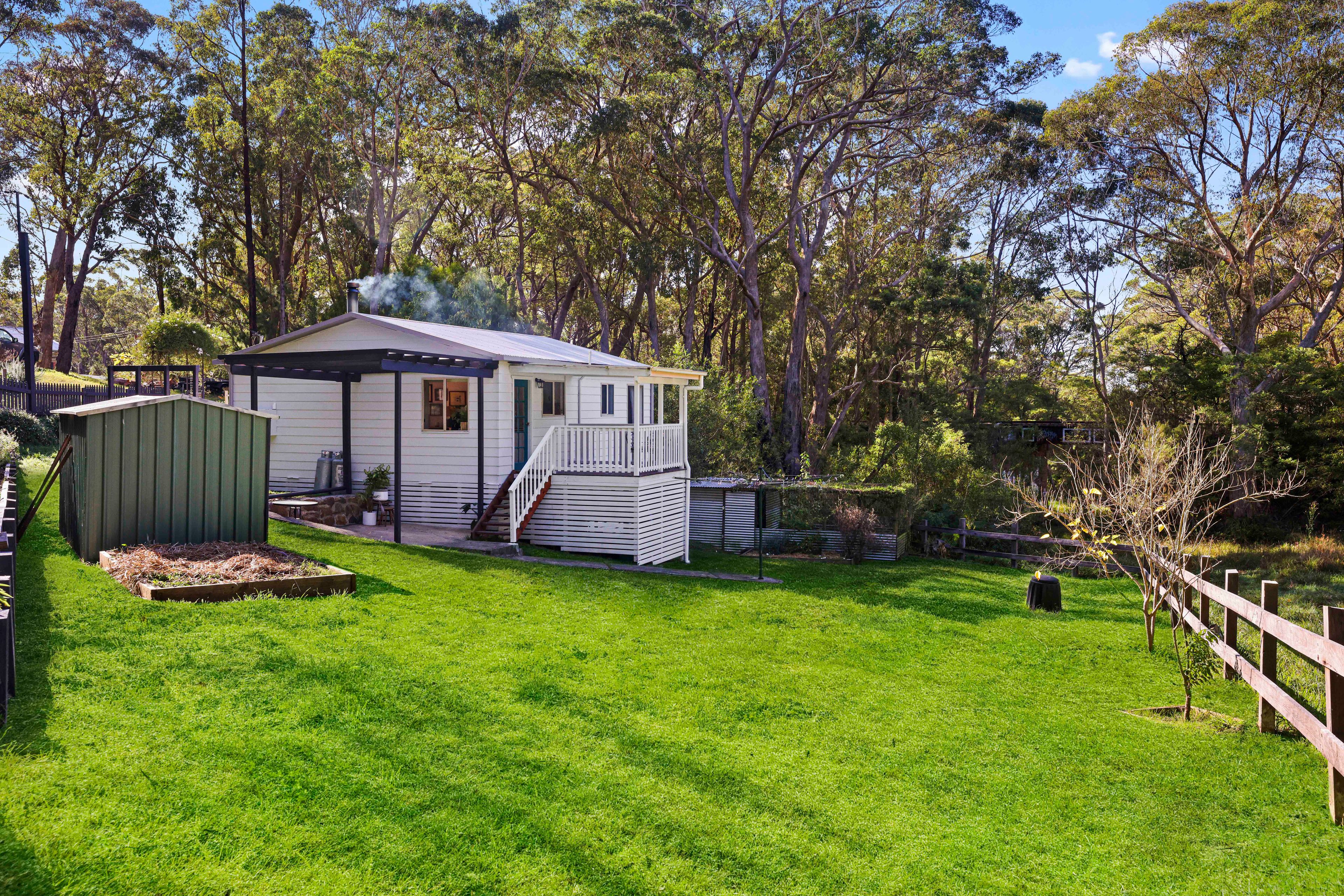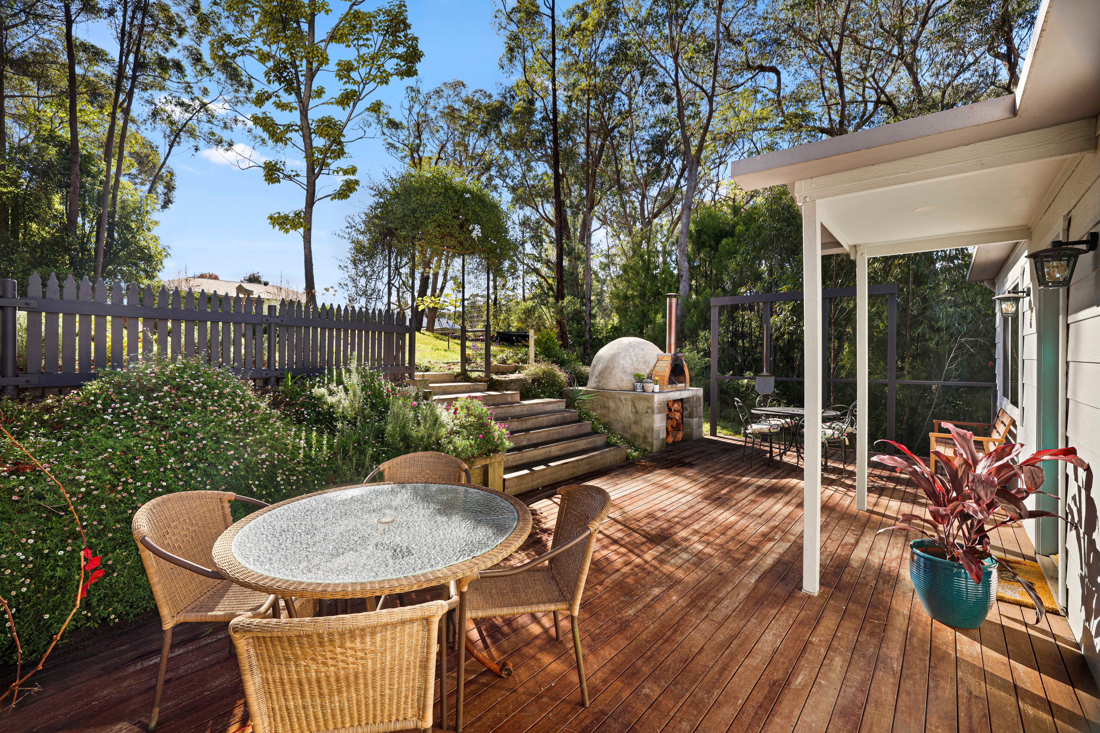 Property Features: - Large front deck with wood fire pizza oven - Free standing fire place - 2 bedrooms - Peaceful bush location - Garden Shed