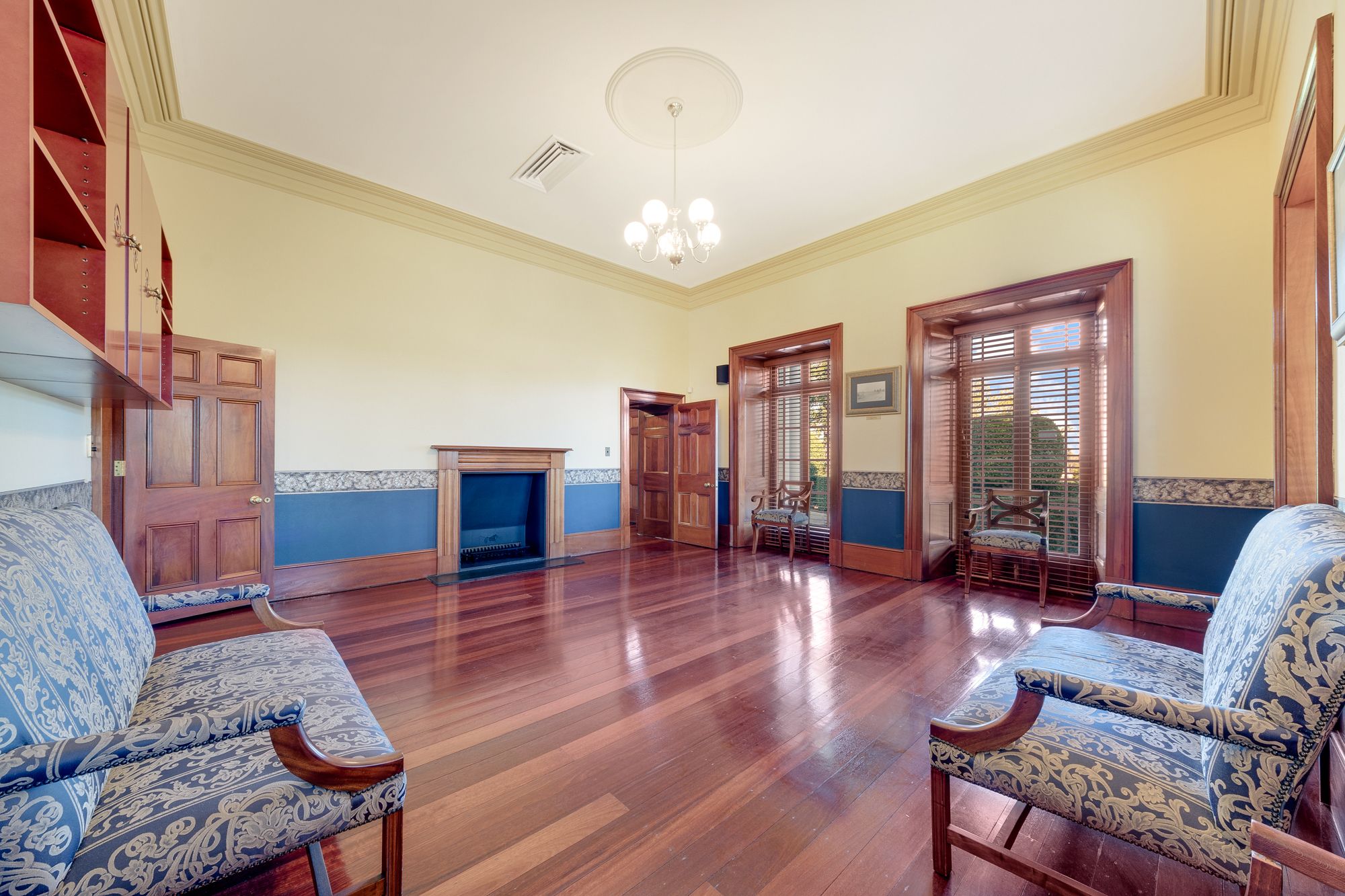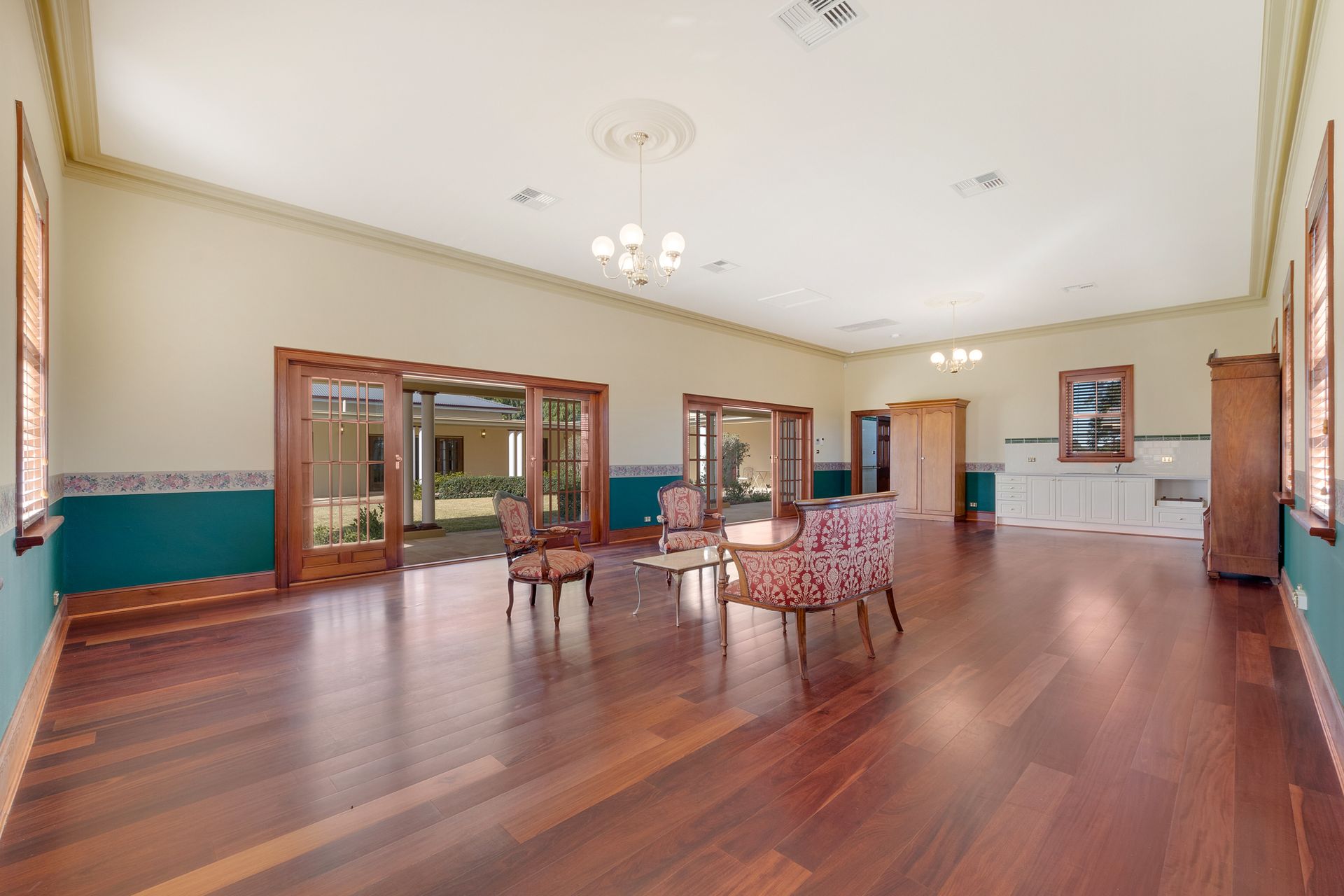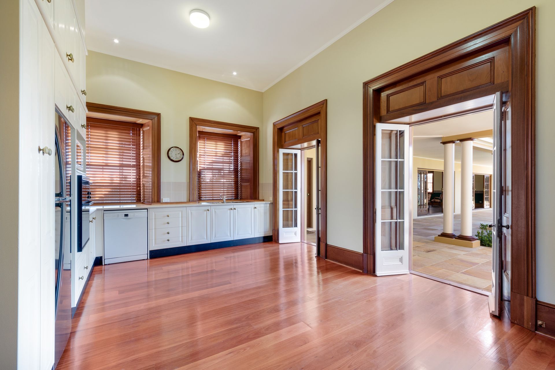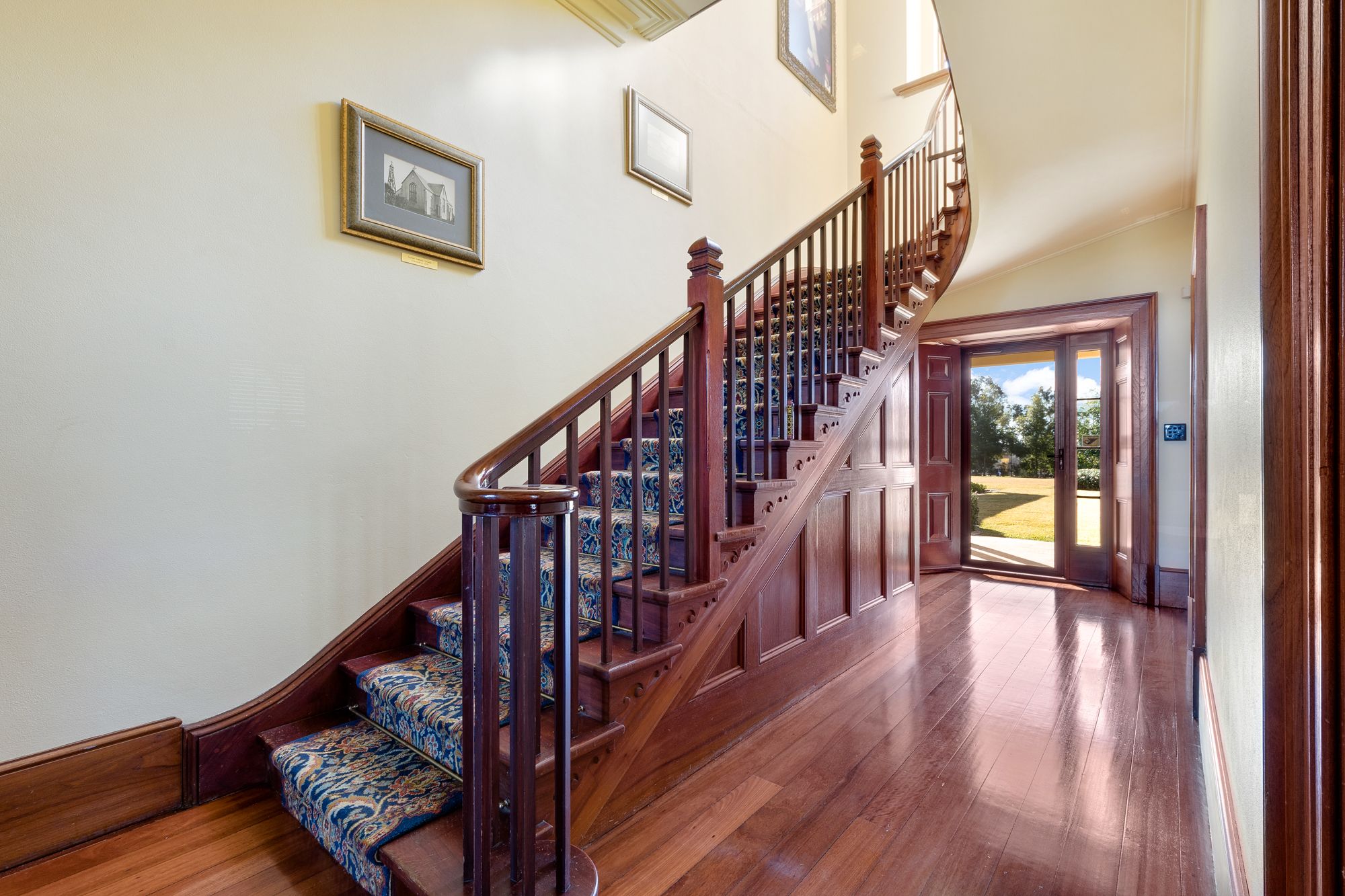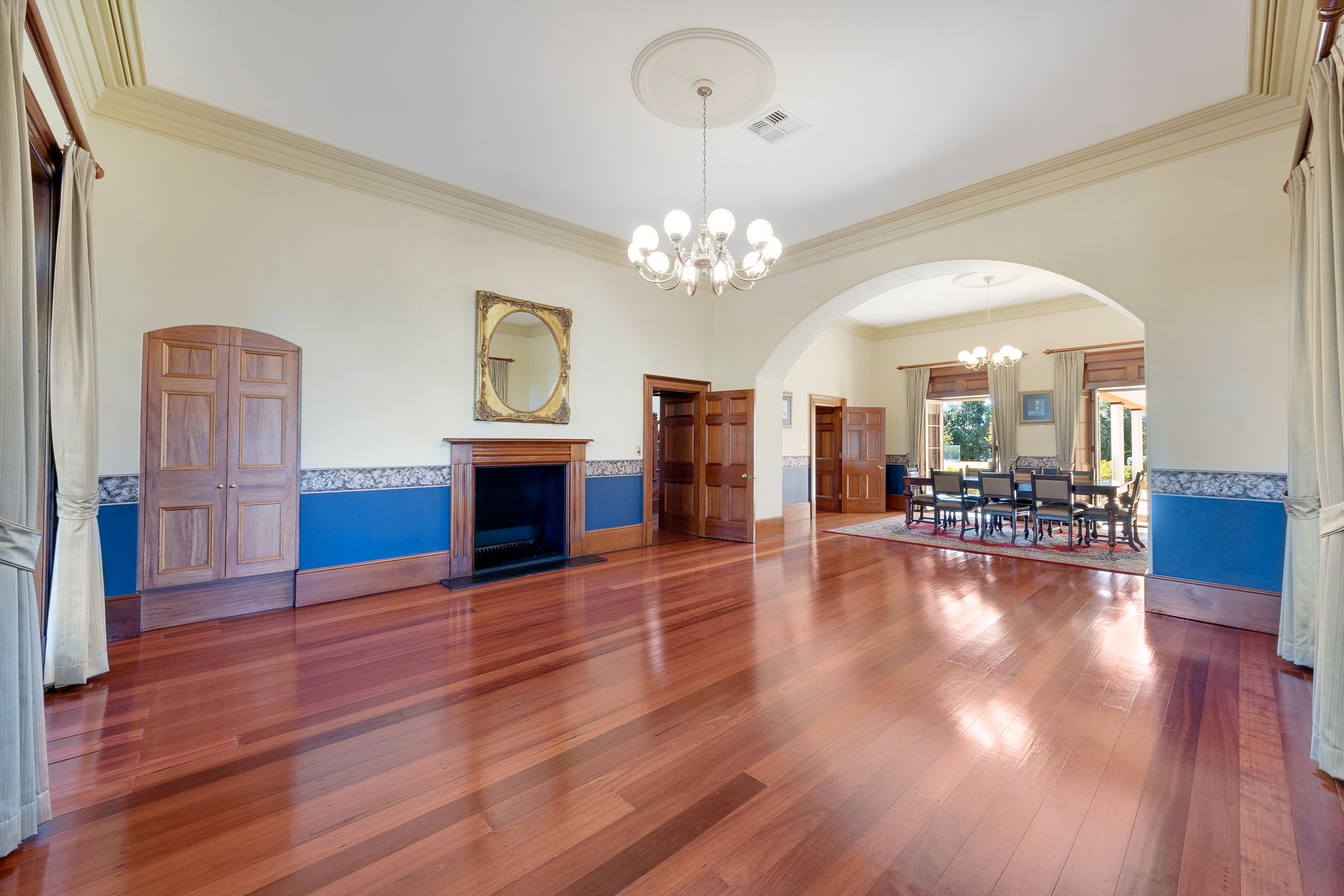 Upon entering the original homestead you are greeted by high ceilings, striking Jarrah floor boards and finely crafted Australian Cedar joinery. Natural light pours through the many beautifully dressed windows and in the grand ballroom and formal dining you can easily imagine Count Strzelecki once contemplating life in front of one of the seven open fire places. The huge rumpus room with superbly restored flooring and open fire place flows into the well appointed kitchen, with the sun drenched grand stair case accessing the upstairs living quarters. Four king sized bedrooms with open fire places and brand new Axminster commercial grade carpet exude warmth and comfort and make this a wonderfully functional family home if desired. The master bedroom is finished with a fitted walk in wardrobe and renovated en-suite, with an upstairs bathroom servicing the remaining bedrooms. French doors open from the library onto the balcony and offer amazing views over the pristine grounds and "Bunya Park" ahead.