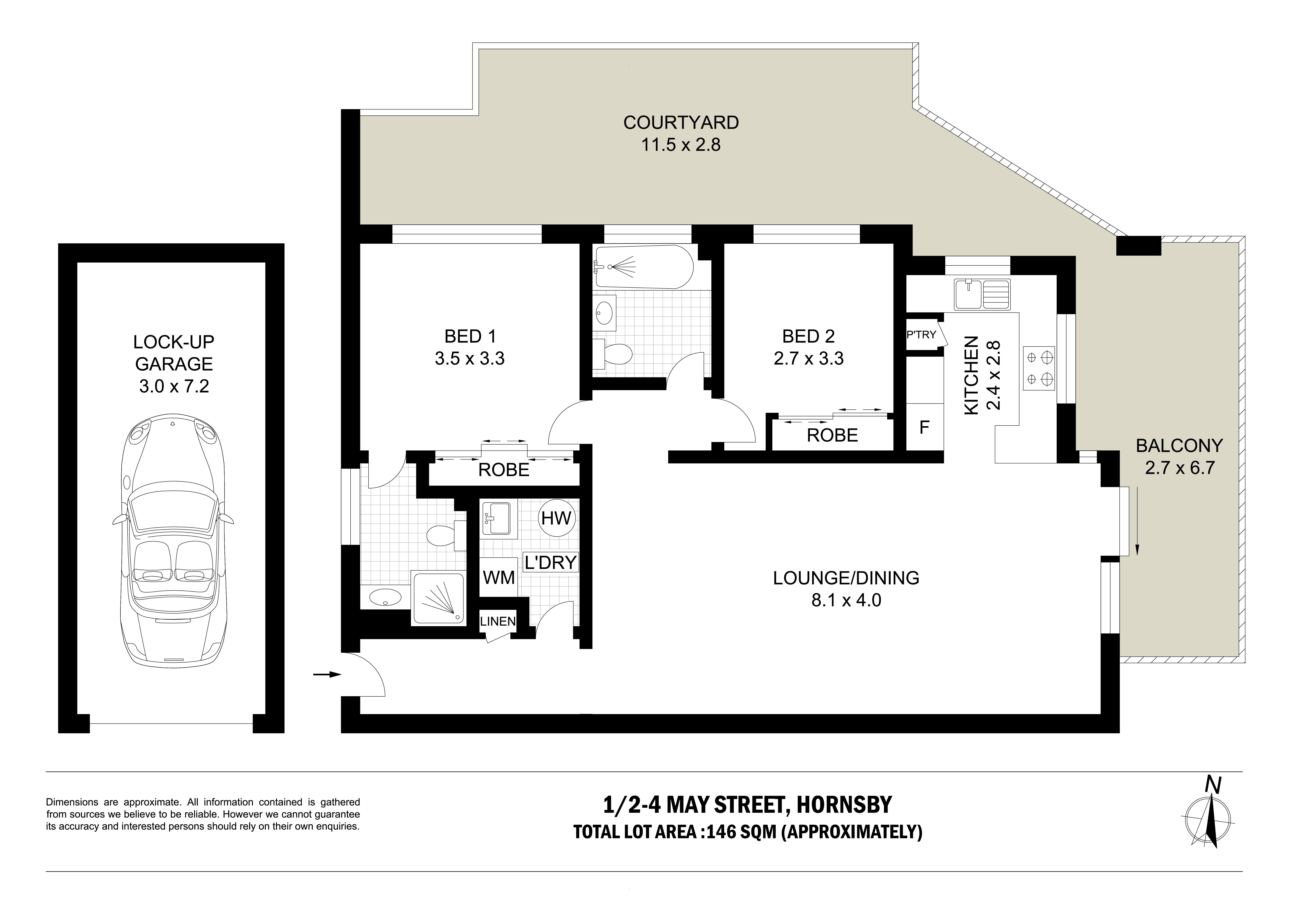 Modern, contemporary 2 bedroom GROUND floor Unit with NO Stairs from the Street to its front door, complete with an OVERSIZE North Facing Balcony/Courtyard and situated in the "Ever Popular' May Street ... The Many Outstanding Features Include; * Freshly Painted, Spacious air-conditioned living/dining area with direct access to a huge Balcony/Courtyard Area, * Well-appointed all electric Kitchen with a large pantry and bosting good N/E natural light. * New Hybrid timber flooring throughout the living/dining/kitchen areas with quality new carpet in both bedrooms. * Good fully suite master bathroom plus an en-suite bathroom servicing the main bedroom. * Mirrored built-in wardrobes in both bedroom.. * Tiled entry foyer with an adjoining separate laundry. * Secure basement single lock-up garage with easy access. * Secure intercom building with undercover visitor parking. * Total Lot Area is 148sqm approximately * Extremely convenient location, walkable to Westfield Shopping Centre, cafes, restaurants, theatres and Hornsby Station and Bus Depot and with local schools not far away.