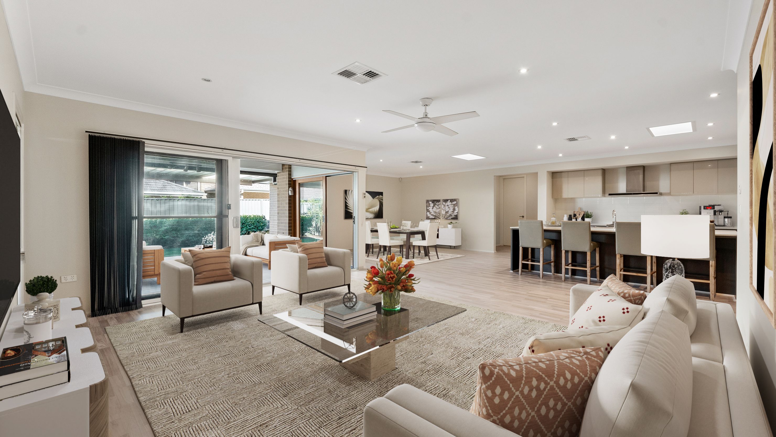 As soon as you step foot through the entrance you'll be amazed by the size of this property, boasting high ceilings throughout, premium flooring to the living areas, large open plan dining and living with sliding doors opening up to the extra large alfresco area combining indoor and outdoor areas allowing room for all your friends and family.