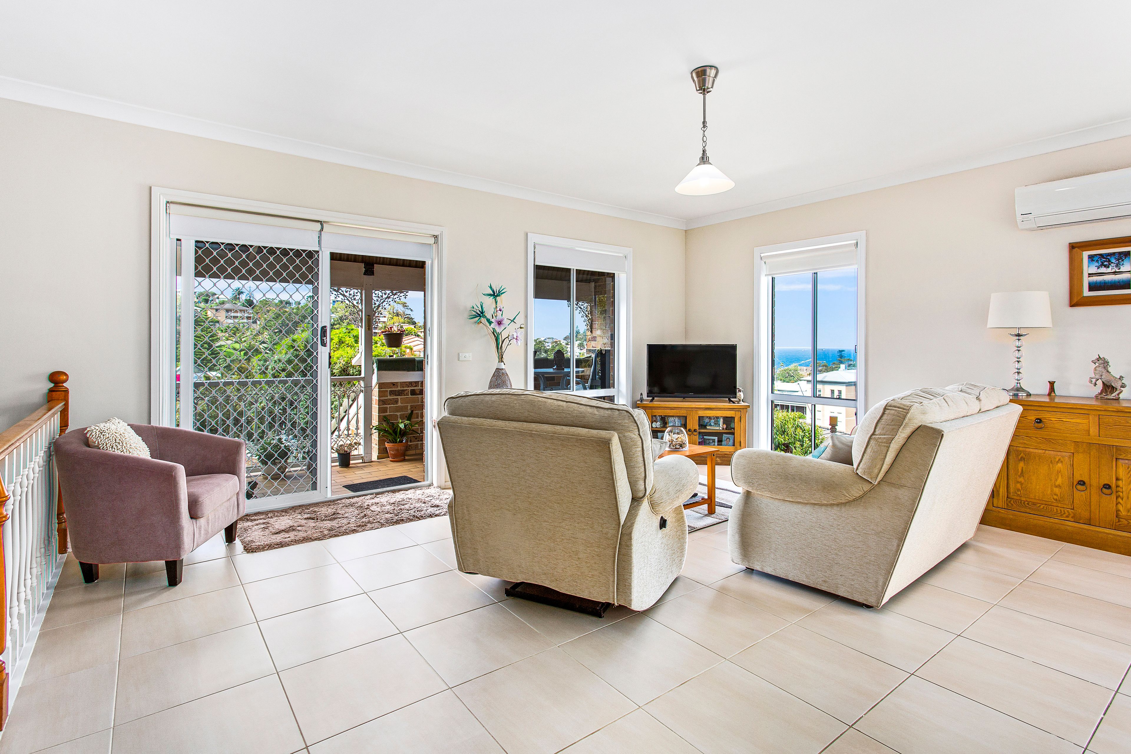 Downstairs comprises of two bedrooms with large built-in robes, three-way bathroom, separate toilet and internal laundry. Upstairs offers spacious open-plan living/dining area which flows onto a full-length covered balcony drenched in northern sunlight with picturesque township and ocean views, as well as additional powder room and air conditioning. The kitchen has been beautifully renovated and features 40mm Caesarstone bench tops, quality appliances and plenty of cupboard space.