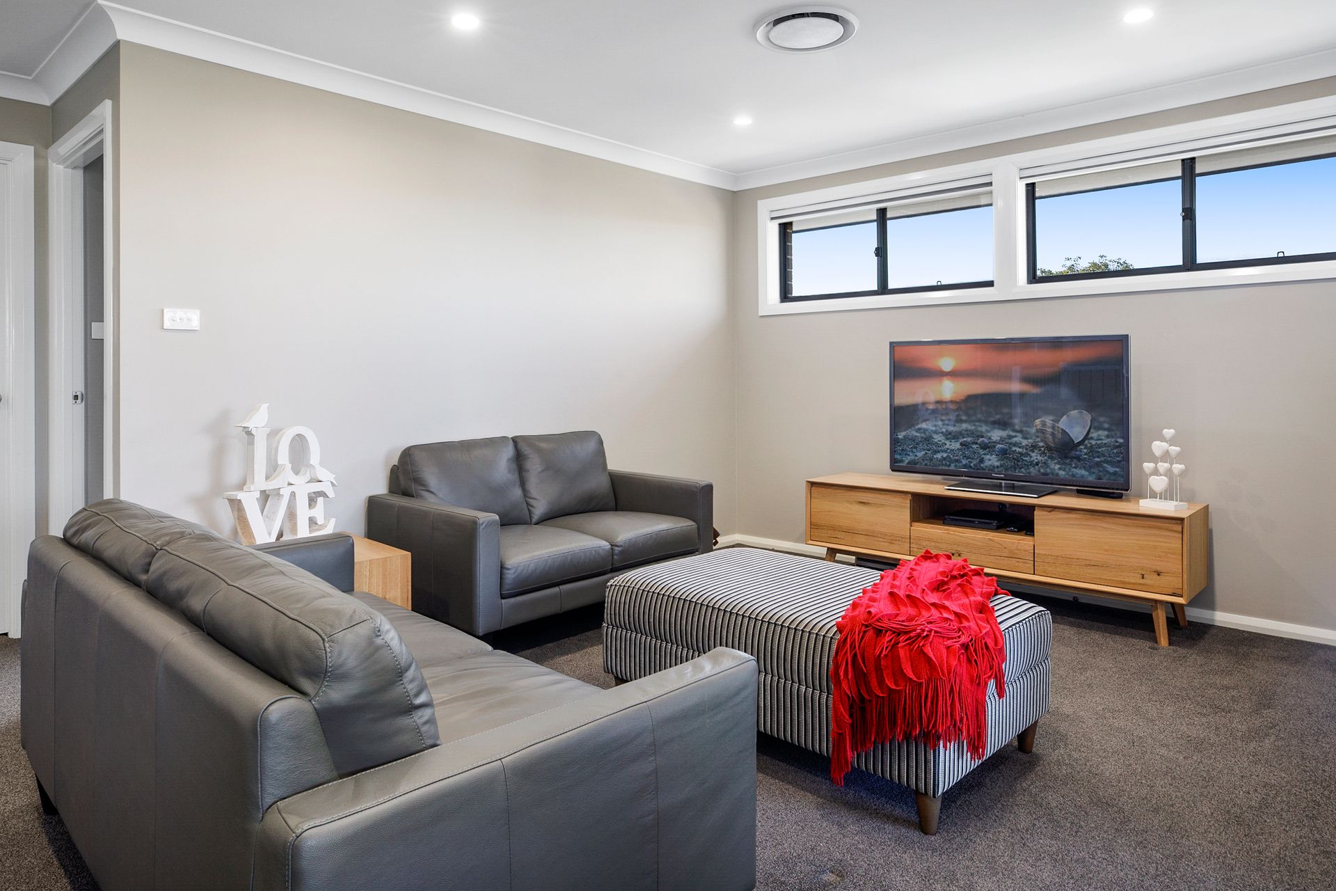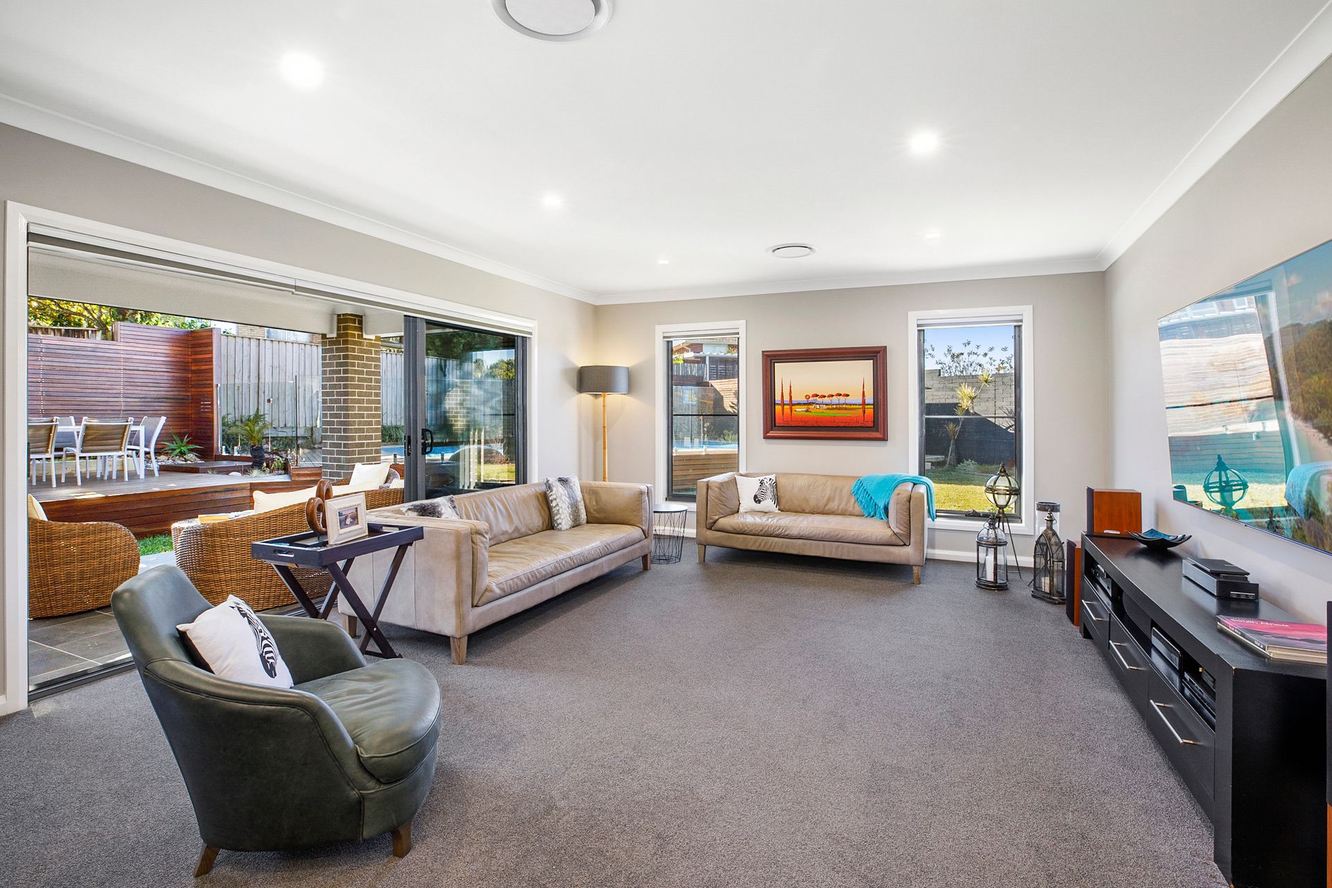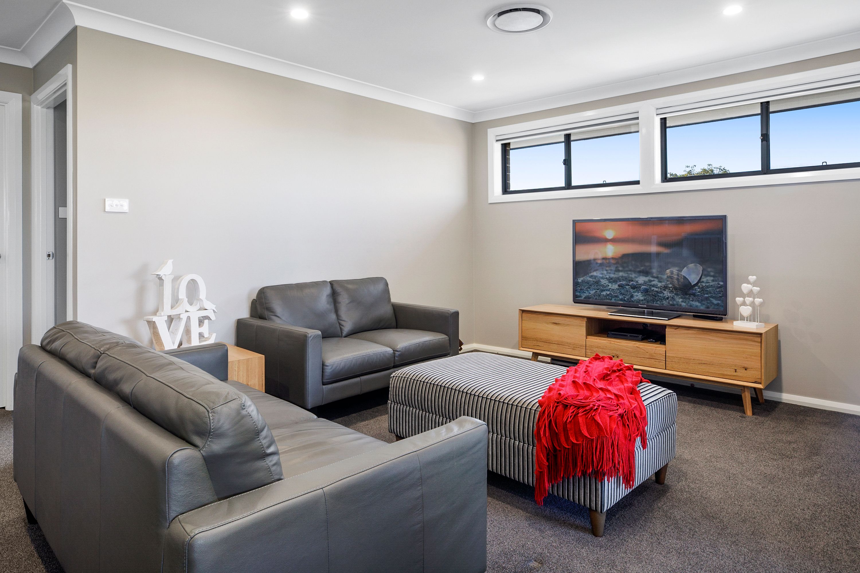 Features include: Smart Blind system throughout (Thermally insulated, full blockout) Smart Ducted Aircon system for every zone in the house Auto garage (Extra volume ceiling so even the big SUV's can fit) Garage floor is covered so it makes the Garage great for Home Gym exercise etc. LED Lighting throughout Alarm system and data cabling throughout Landscaped garden, low maintenance indigenous planting with a full automatic drip irrigation system Smart garden lighting to create that perfect atmosphere Family room wired in for rear speakers, cable routing through wall to TV Magnesium mineral pool - low maintenance and great for your skin Large custom fitted shed for workshop and storage "His & her" robes with custom fit out Parking for extra car, boat, trailer or caravan