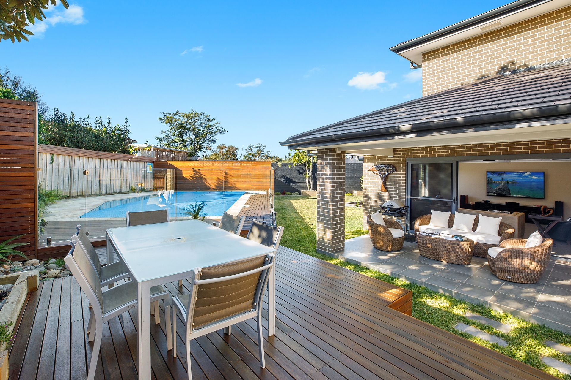 The open plan downstairs living areas flow to the spacious back garden, complete with pool, deck, covered entertaining and plenty of lawn for kids and pets to enjoy during the warmer months.