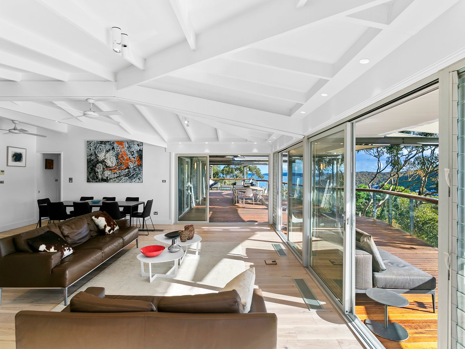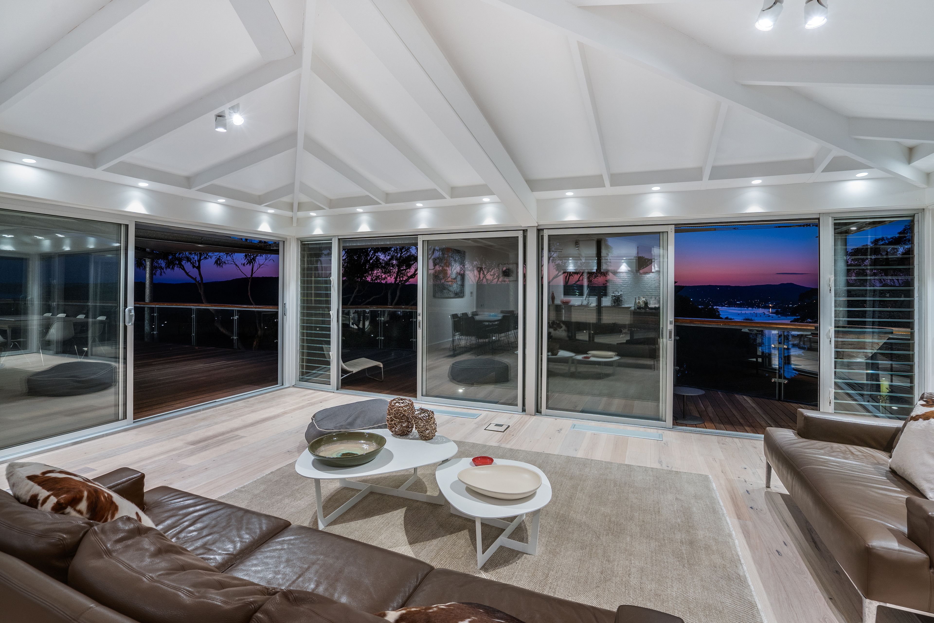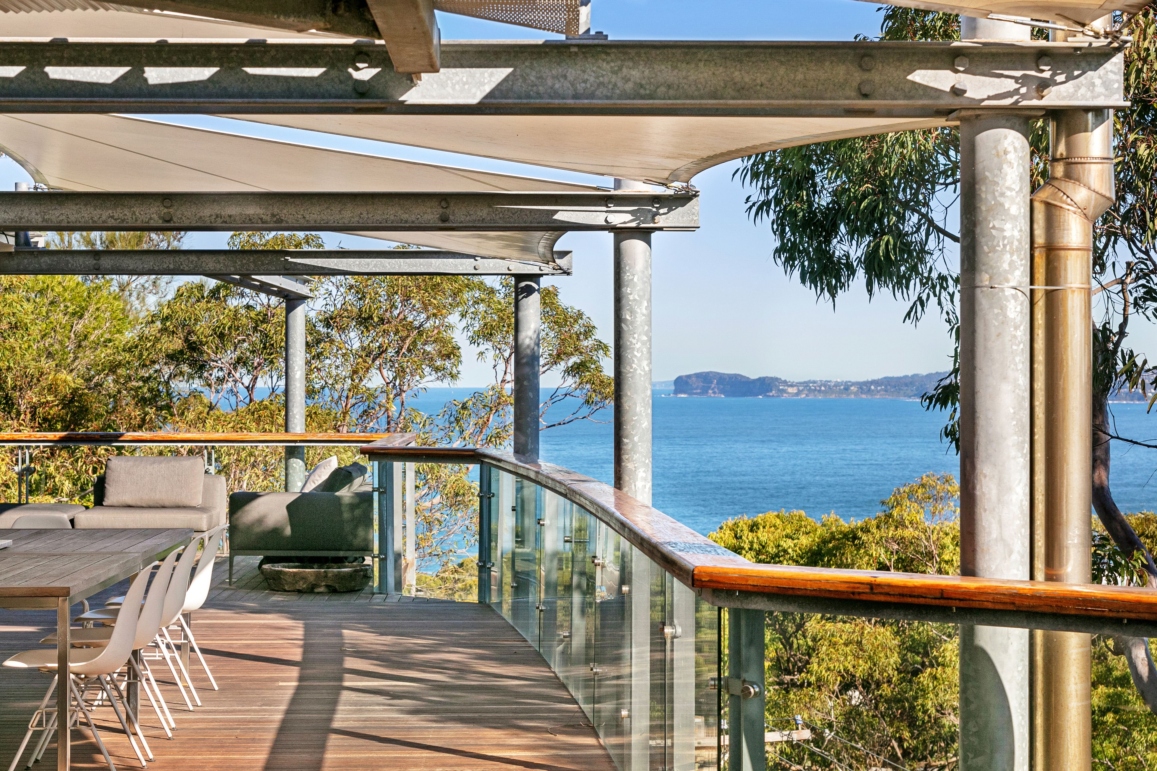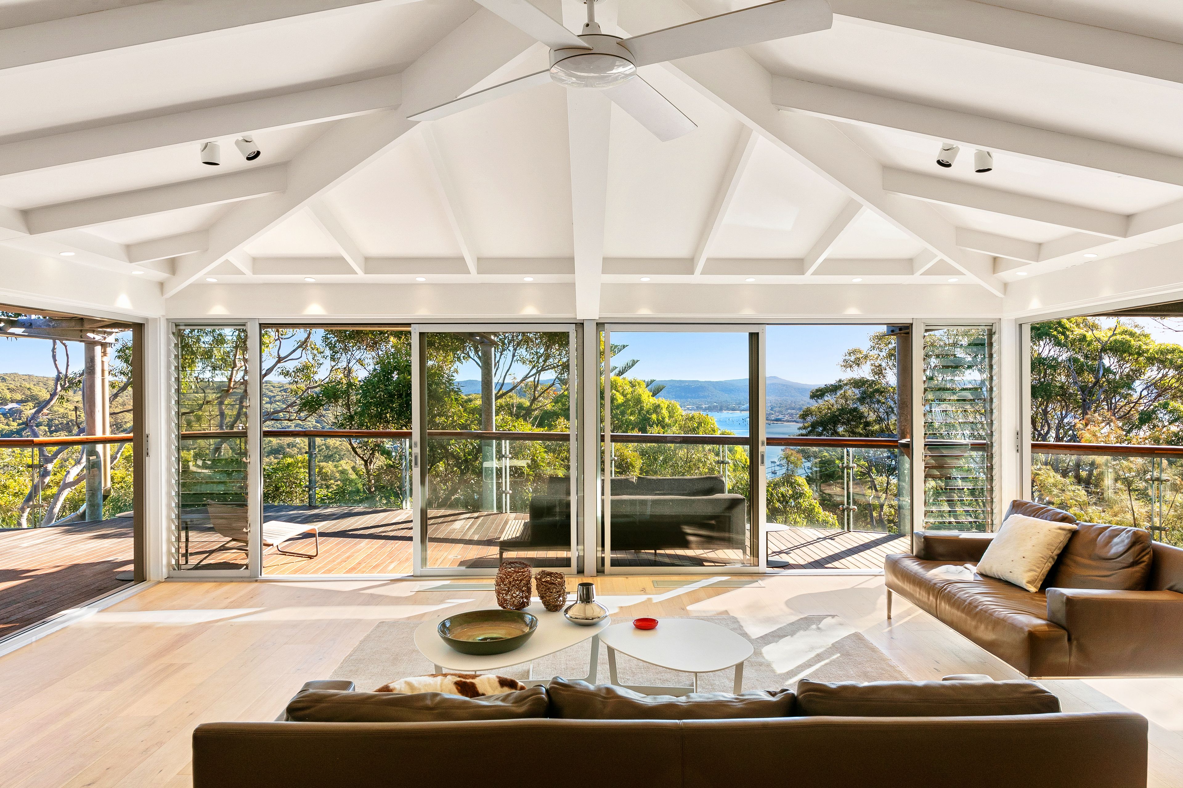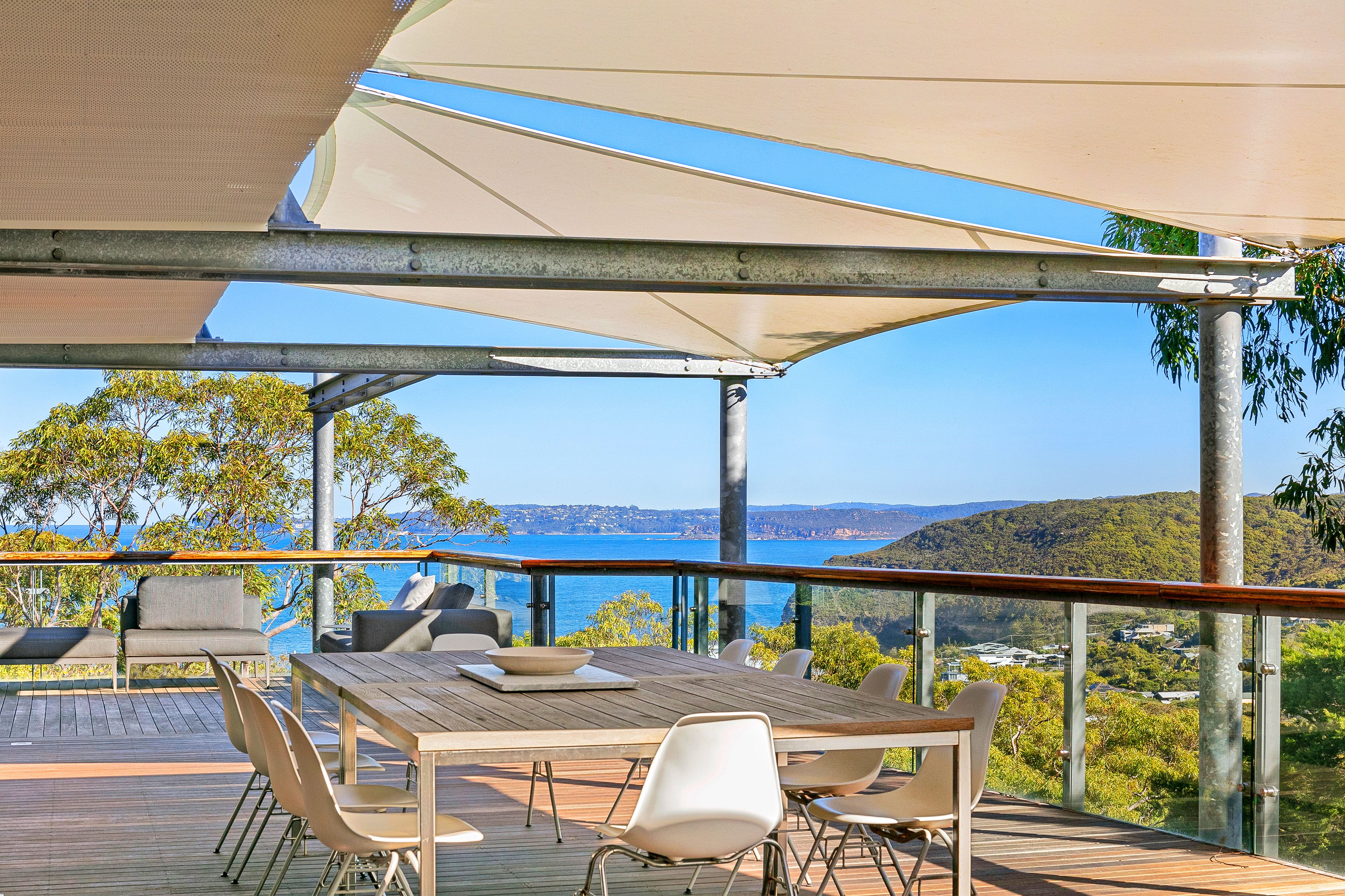 Ambiance House offers uninterrupted water views over Killcare Beach, North Head, Hardys Bay and the Brisbane Waters in a commanding position. The expansive views are enjoyed from the seamless indoor/outdoor living areas over two levels, including large private decks surrounding the house. Occupying a generous 750sqm with 4/5 bedrooms and 4 separate living areas, the house has been recently renovated to exacting standards and surrounded by beautiful landscaped gardens.