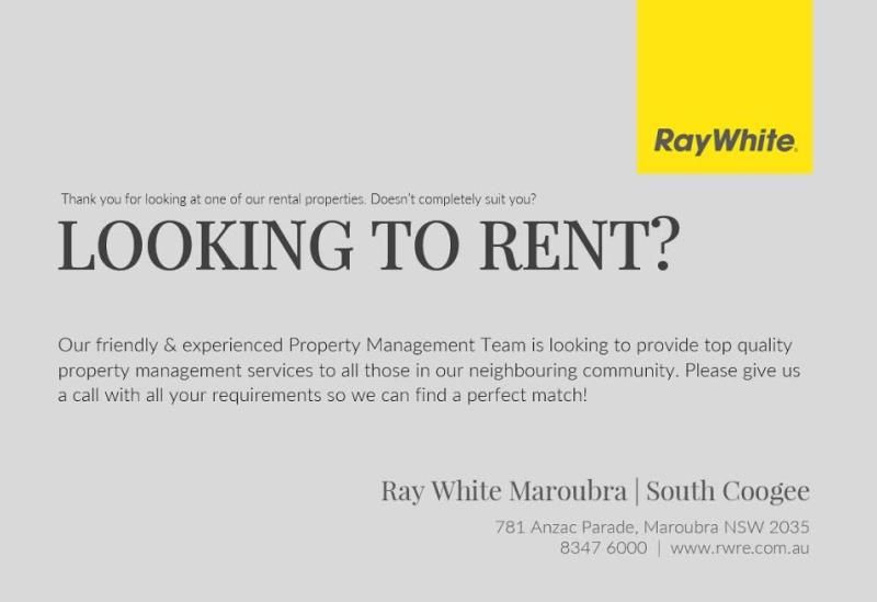 Ray White Maroubra | South Coogee 781 Anzac Parade, Maroubra NSW 2035 8347 6000 | www.rwre.com.au