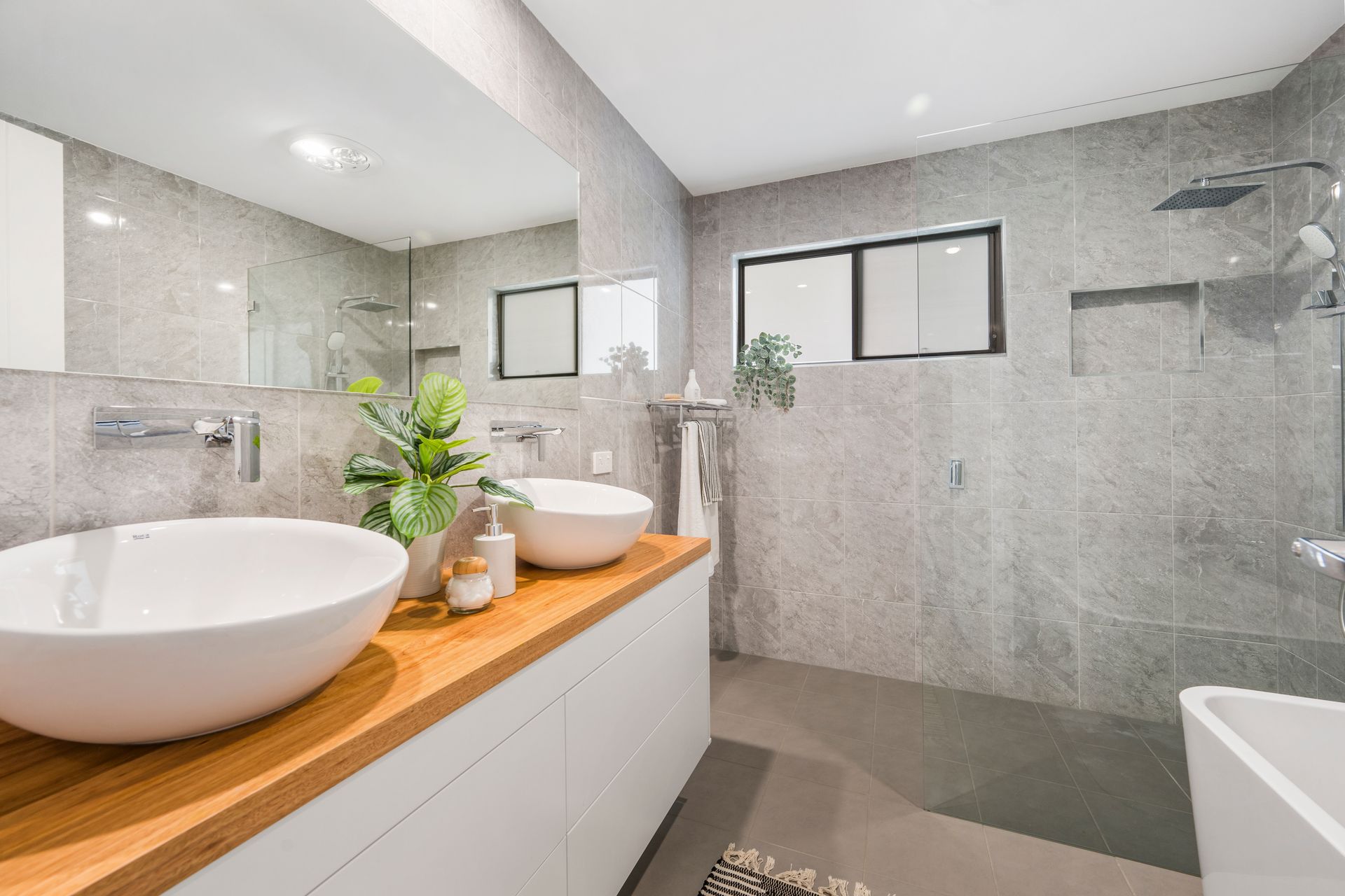 - Stone benchtops, hybrid floors, luxury bathrooms