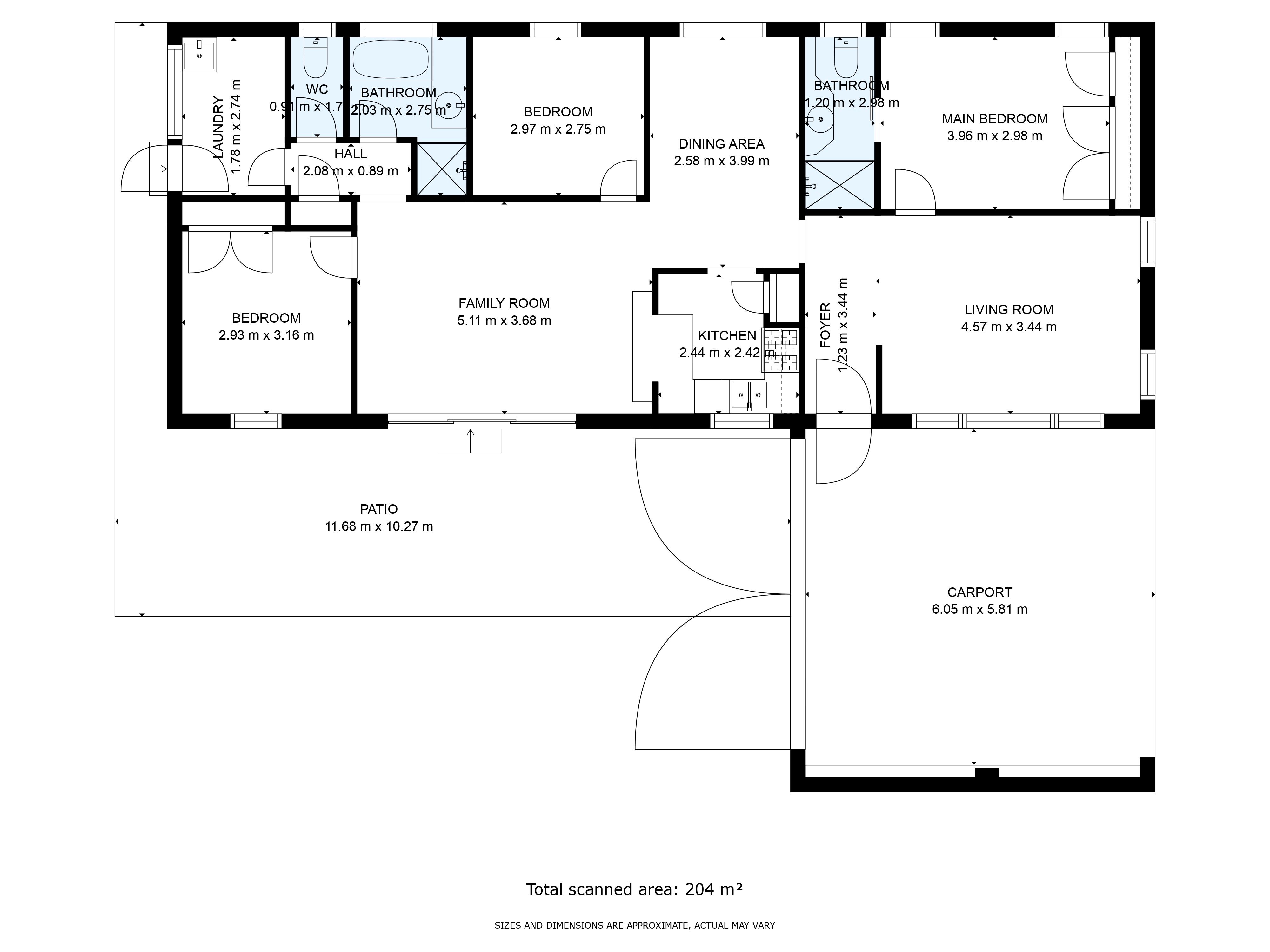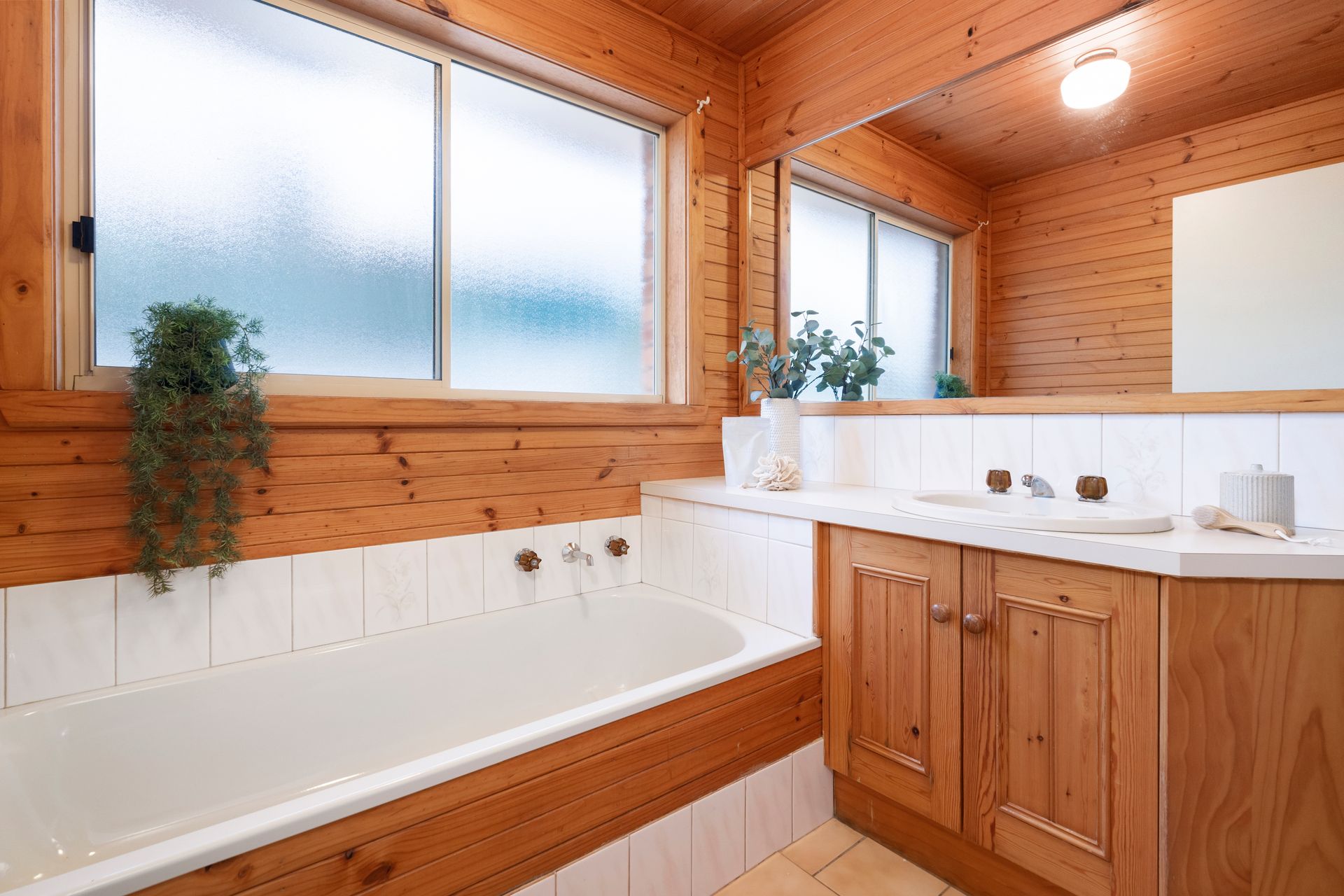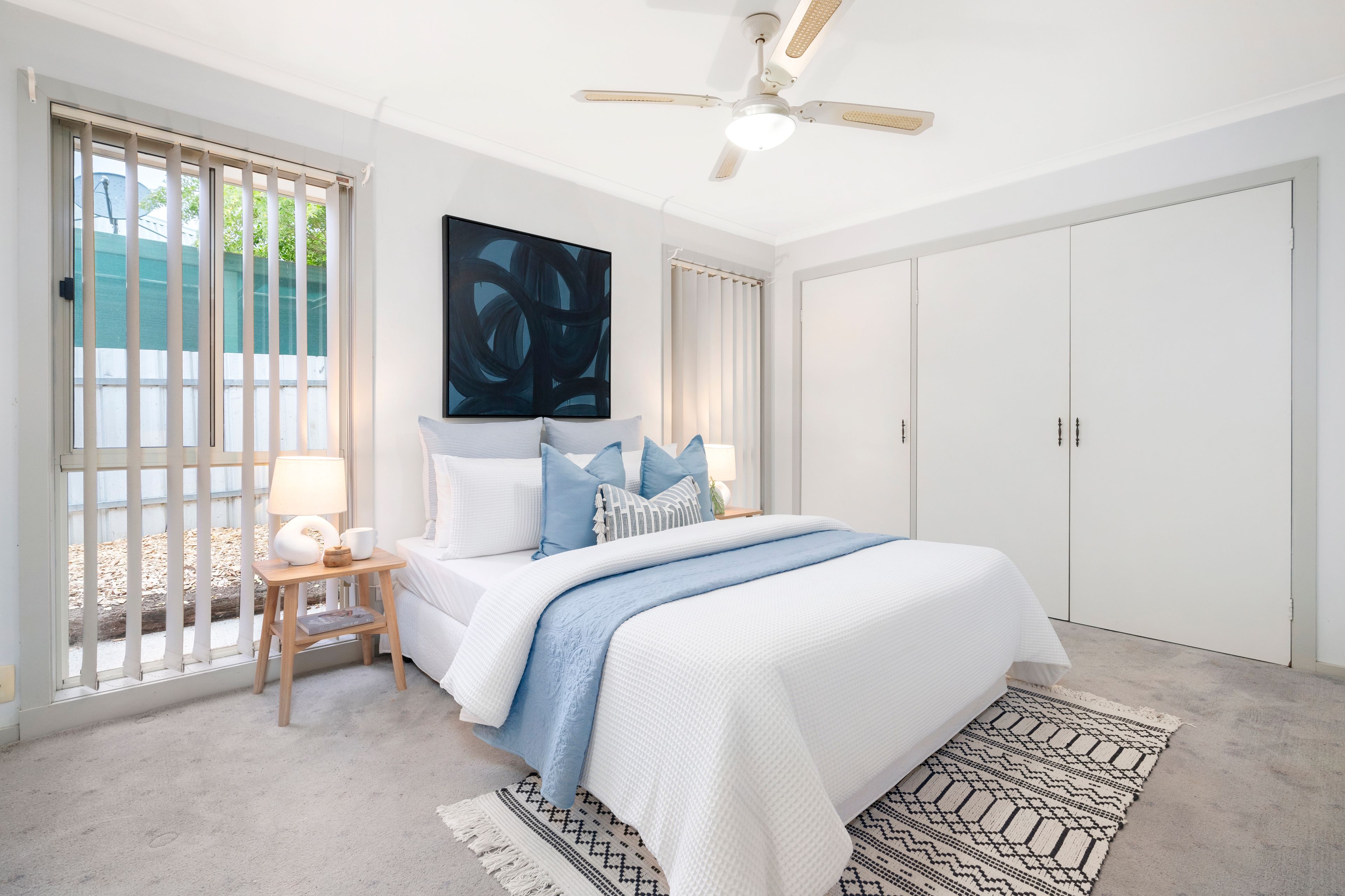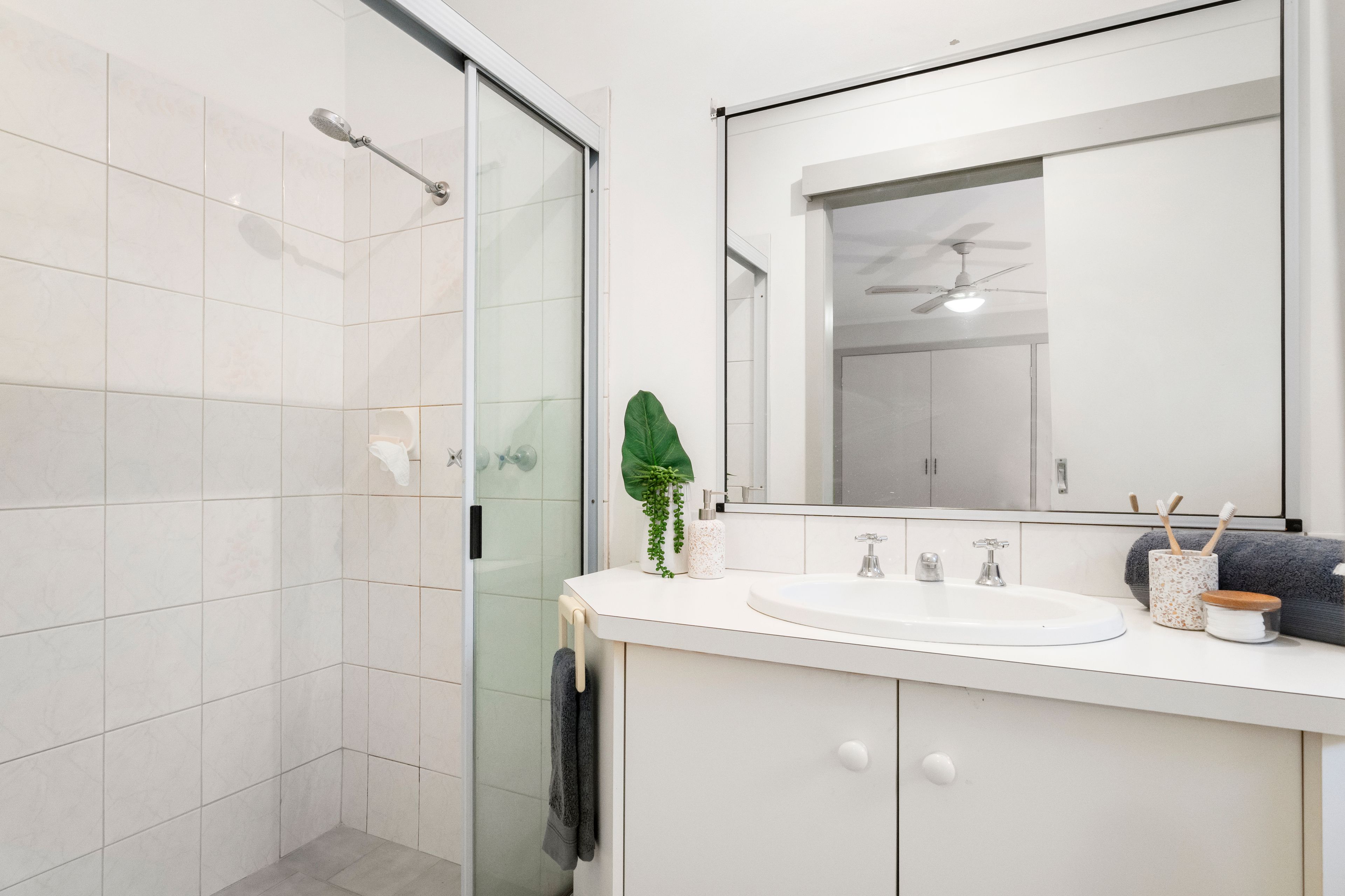 The bedrooms are spacious and comfortable. All of them feature ceiling fans for year-round comfort, and two of them feature practical built-in robes. On top of that, the main suite features an ensuite bathroom with a glamorous vanity, a sizeable shower and a toilet.