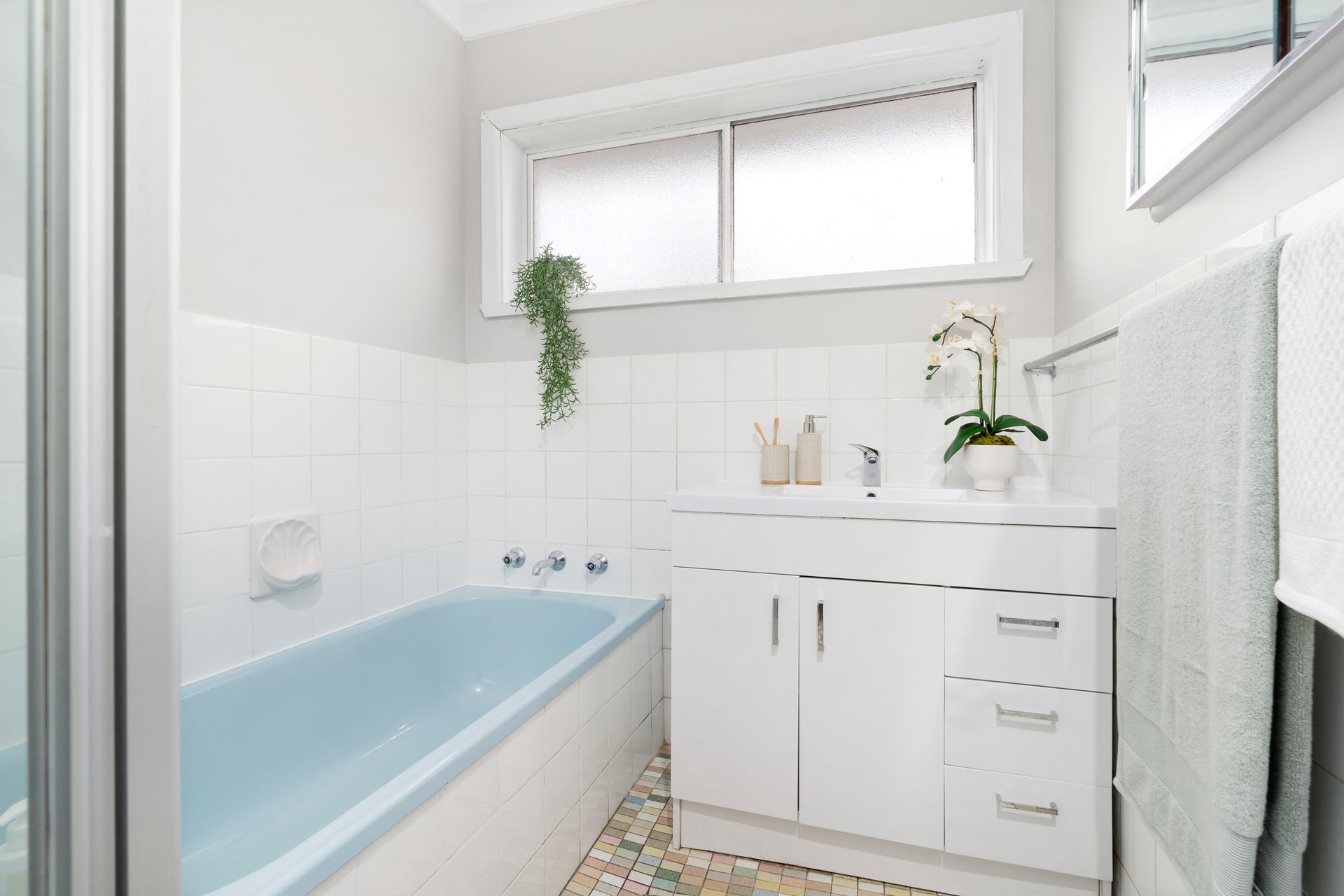 The bathroom, complete with a bath, caters to both relaxation and practicality, while a separate toilet and laundry enhance the home's functionality.