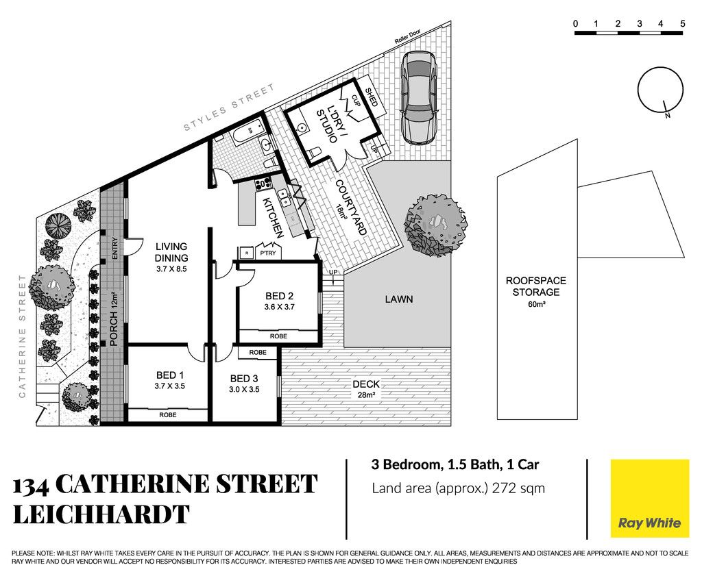 - Set behind a landscaped front garden, 9.5m street frontage - 3 double bedrooms with built-ins, fresh family bathroom - Freestanding garden studio ideal home office or playroom - Private master bedroom featuring pressed metal ceilings - Double-sized living space, high ceilings and a gas fireplace - Sun-drenched Caesarstone gas kitchen with a breakfast bar - Bi-fold windows to an outdoor bar/servery and dining terrace - Sunny child-friendly garden and a large entertainer's deck - Versatile studio with integrated laundry, W.C. and storage - Dual access 272sqm block, secure parking via Styles Street - 60sqm approx roof space, concept plans to add a 2nd level - Plans to extend living and add a parent's retreat with office - 150m to Evans Jones Playground, 400m to Leichhardt Public - Rates: Water $199pq, Council $484pq (Both approx.)