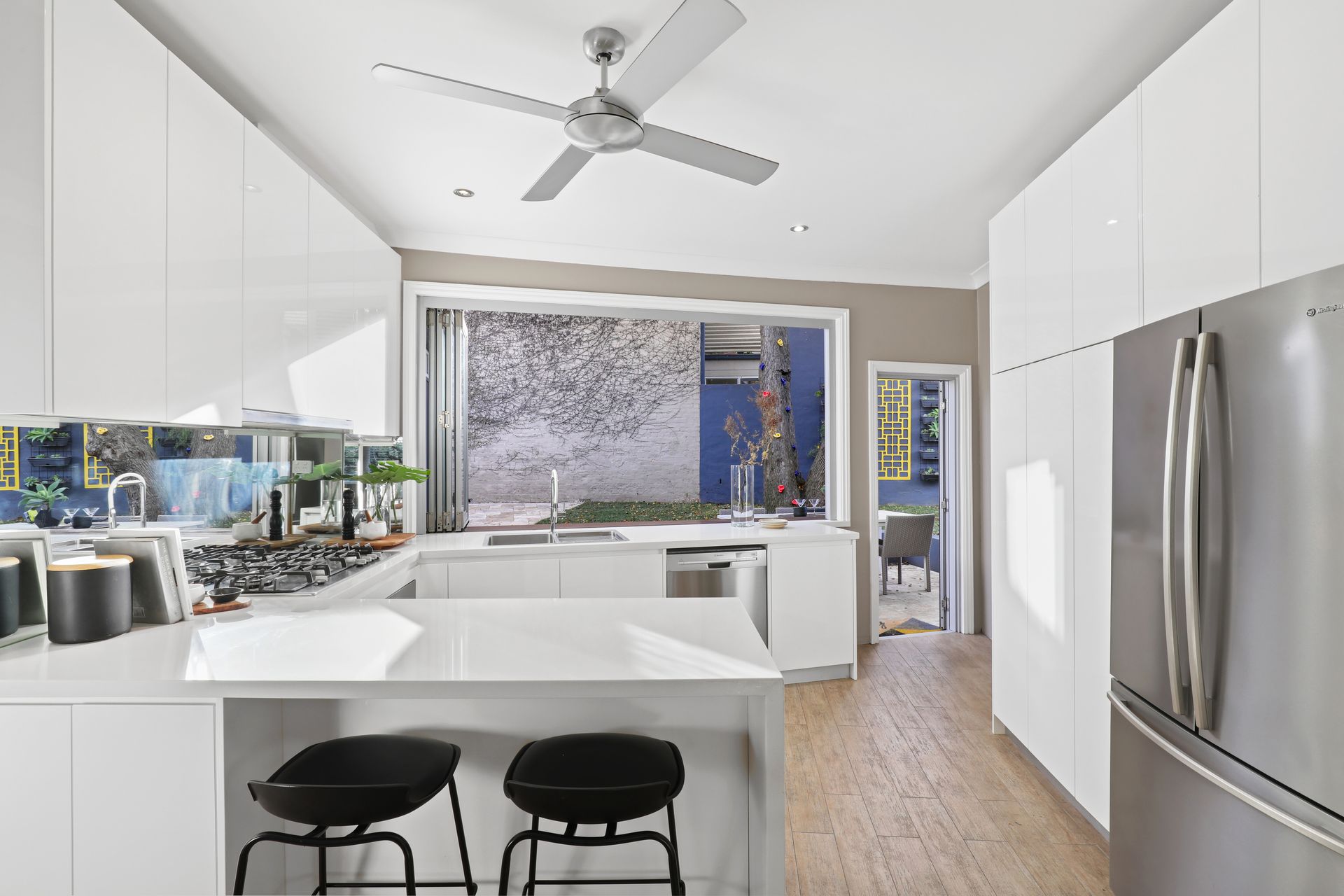 Designed with family fun and entertaining in mind, this double-fronted home's playful spirit, fantastic layout and landscaped north facing gardens deliver a home of light, life and vitality. Spread over one level with a private master bedroom and separate children's wing, there's plentiful living space and a designer kitchen as the social heart. An outdoor bar area, travertine dining terrace, child-friendly play areas and an office studio make the garden a great space for everything from relaxed family living to entertaining on a grand scale. Positioned between cosmopolitan Norton Street and Annandale village, the property features dual street frontage with secure parking via Styles Street and comes with concept plans to develop the huge roof space and add a second level as well as extend the living space (STCA).