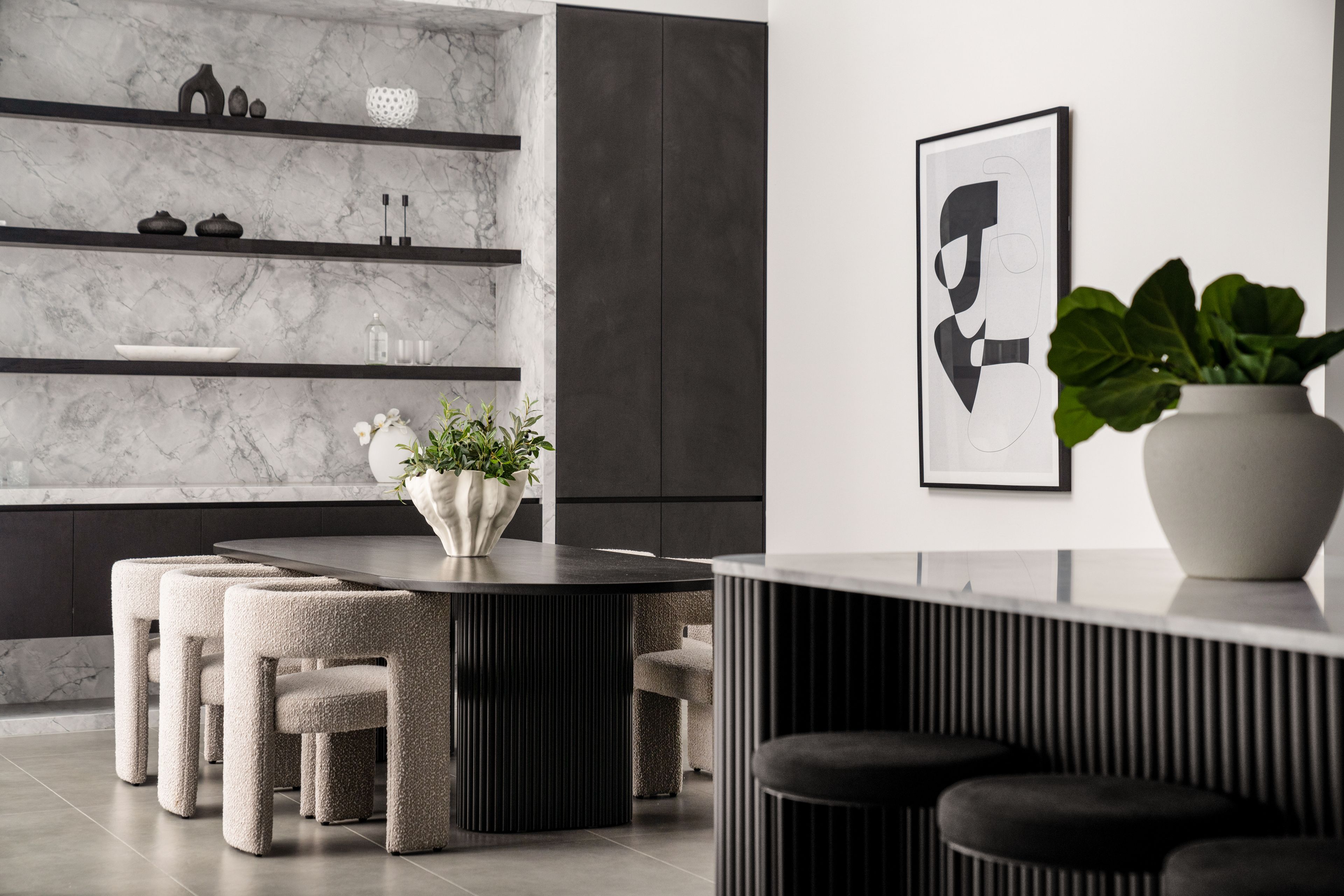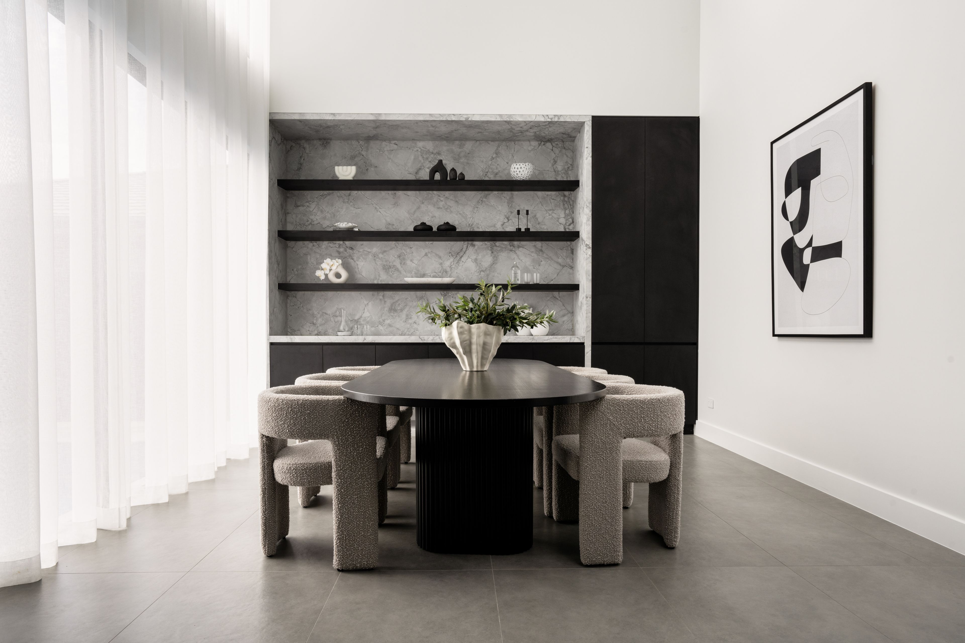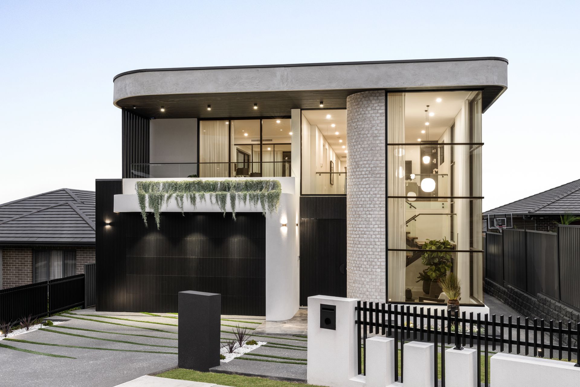 The finest brand-new estate to accompany the market in Leppington, this landmark residence fuses flawless architecture, tropical landscaping, and refined interior design. Its sheer-scale interiors reveal purified luxury, state-of-the-art innovation and meticulous attention to detail whilst seamlessly integrating in/outdoor space. Set to impress the most disconcerting of buyers, this exclusive home has been built to prioritise optimal liveability with a bright north-to-rear aspect and finishes in Brazilian superwhite dolomite marble detail, off-form concrete textured finish render, luxury Joinery throughout, Turkish travertine & Natural Cedar from Queensland .