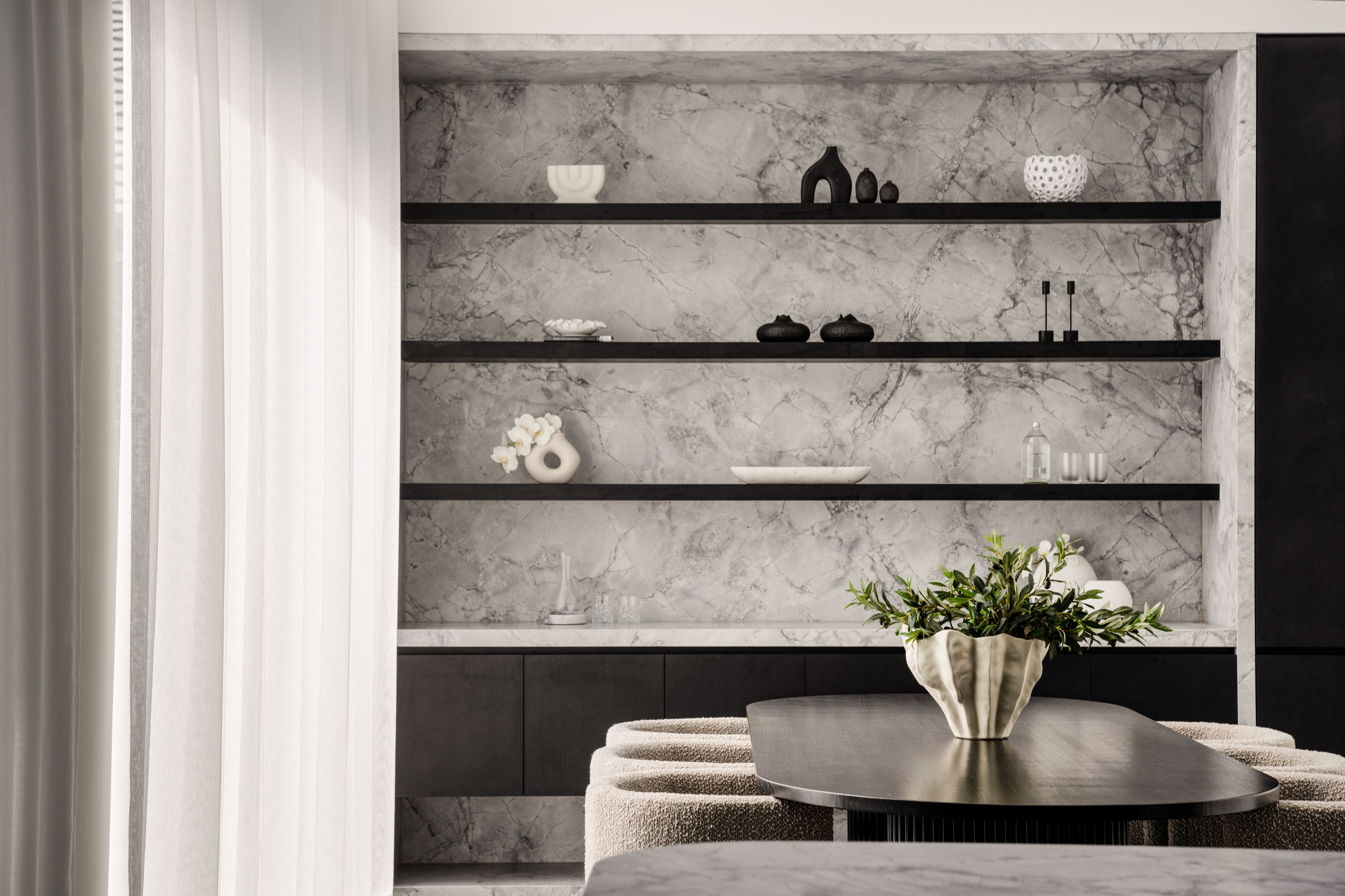 - Brick construction, every square inch is pure new-age luxury - Striking interiors excuse an immediate sense of brilliance with grand living/dining zones - Gorgeous Curved Italian San selmo brick - Commercial Glazed windows - Luxurious Joinery with curved polyutharane slats - Commercial grade Gas fireplace - 4 Plush bathrooms with PARISI tapware throughout , mosaic Kit Kat feature walls and showers in every bathroom - Approx. 3m ceiling height to the main living areas, 2.7 upstairs - Balcony featuring view with natural cedar from Queensland and Turkish Travertine - Tropical desert style garden and oversized pool with a spa , Gas heated . Can reach 40 degrees within a couple hours - Marble kitchen with fisher Paykel appliances, and butlers kitchen - 20mm Curved Marble stone benches with black polyutherane slats - Premium custom ordered Polytec cabinetry throughout with Blum hardware - Featured bar with custom book match marble backs sides ceiling and floors and polytec shelves - Inspired bathrooms finished in marble and stone, freestanding bath - Leather recliners, a starry night sky ceiling and surround sound adorn the theatre room - Smart air-conditioning and lighting control, blind/curtains, secure access, intercom - Deluxe master robe with marble island, polytec fluted glass and featured lights - Deluxe master room with the areas most luxurious bathroom including Brazilian super white dolomite - Blue Mountain views - Premium location, walk to Golf Course