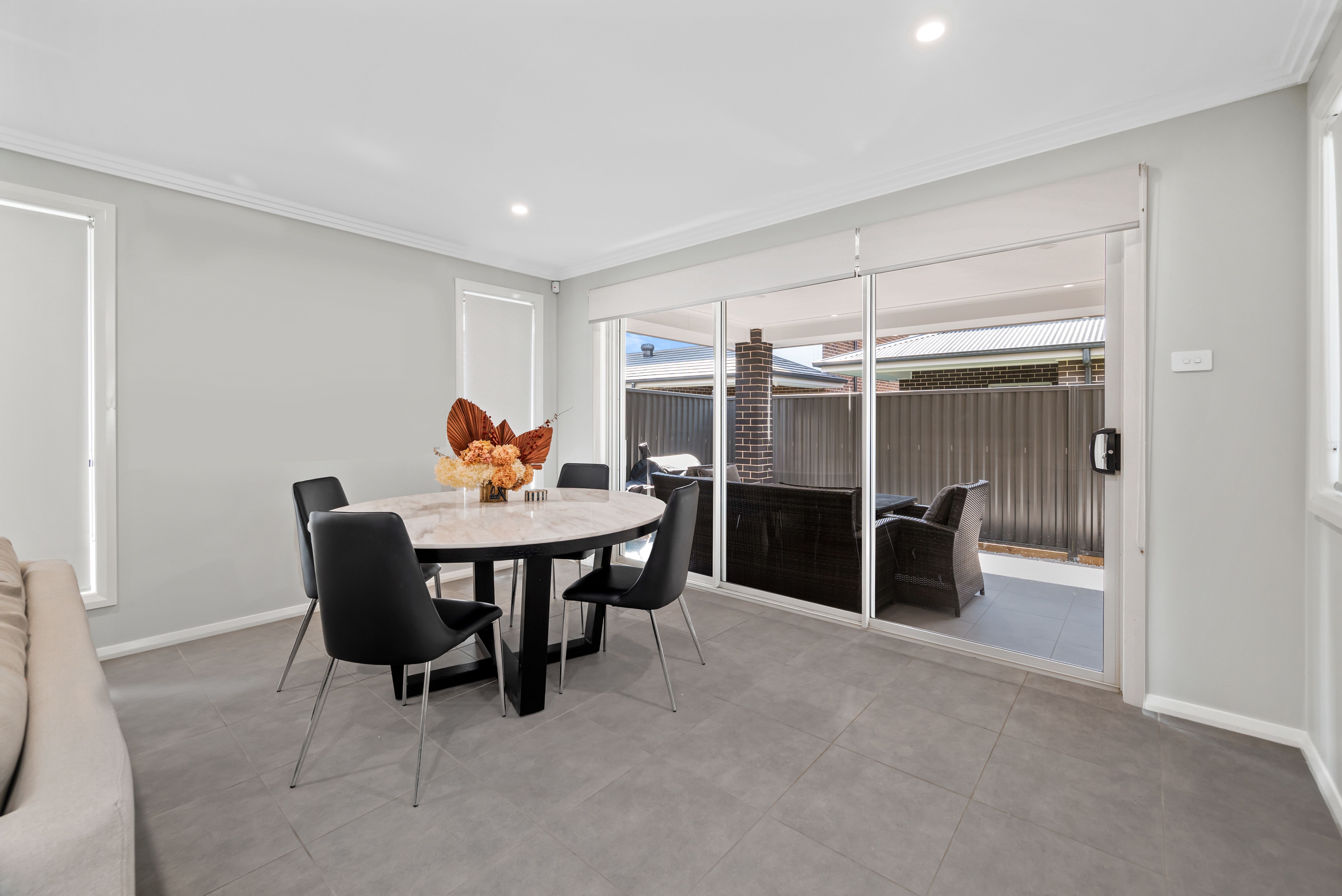 Stepping outside, the property features an inviting alfresco area, perfect for outdoor entertaining or simply enjoying a morning coffee in the fresh air. Additionally, a double garage accessible via the rear private service way provides secure parking and added convenience.