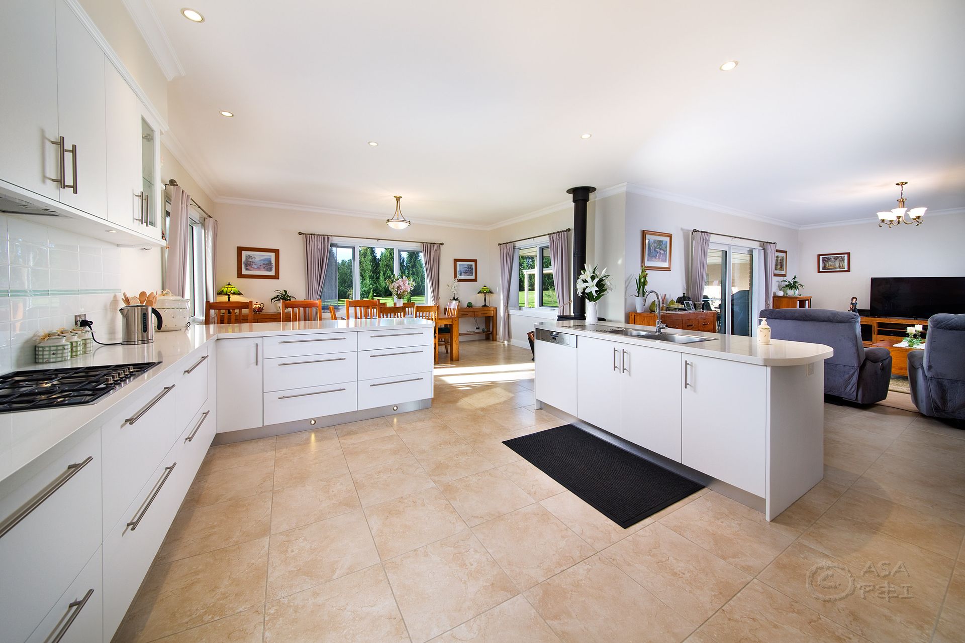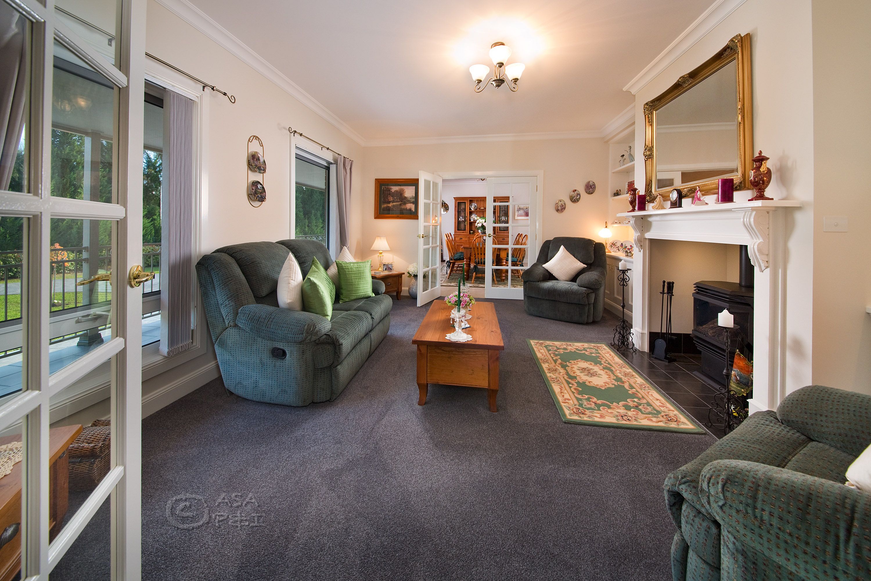 - Grand electric gates opening to a private landscaped acreage - Double glazed windows and doors throughout including garage - Designer kitchen with underfloor heating and Smeg appliances - Large American Lopi Liberty combustion fire in kitchen/dining area - Formal lounge room and dining with custom made fire nook - Large family room leading out to covered entertaining verandah - Principal bedroom with large fully fitted walk-in robe and ensuite - Sumptuous bathrooms with extravagant underfloor heating - Separate self-contained guest retreat with ambient interiors - Triple garage with games room and expansive underhouse storage