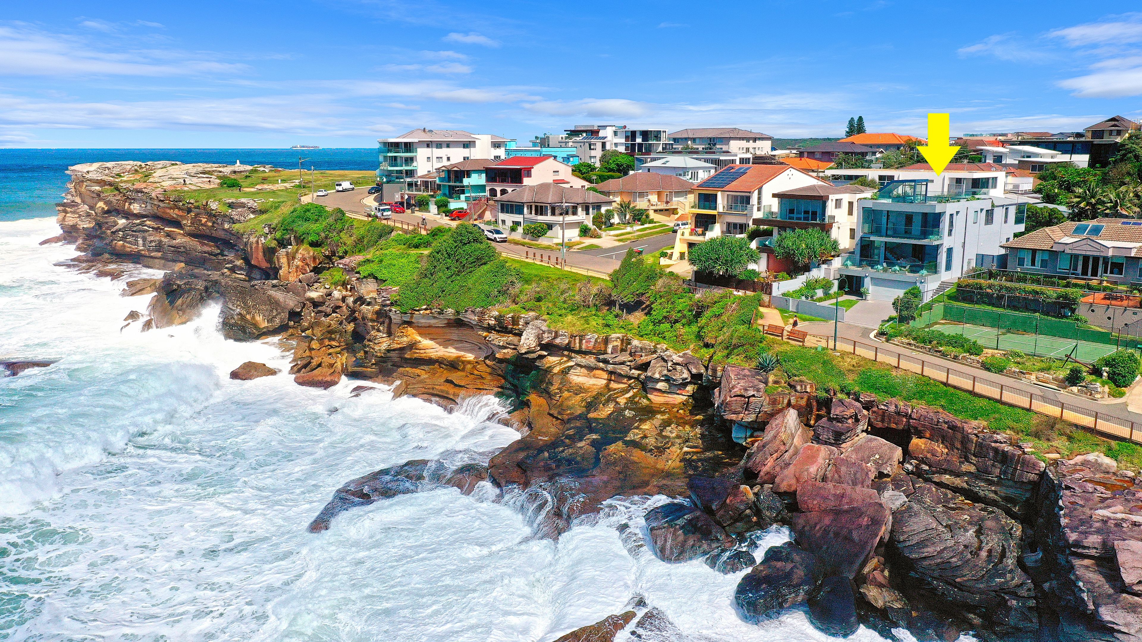 In a prestige oceanfront position with one of the best vantages on the eastern coastline, this luxury multi-level home offers magical views that sweep from the cliffs of North Maroubra to the distant sands of Bondi Beach and the Ben Buckler peninsula. Accessed via a private no-through road, this striking double brick creation is composed over an impressive 537sqm (approx). Designed for seamless connection to nature and effortless entertaining, the home is crowned by a 360-degree sky terrace with spectacular views of Wedding Cake Island. Featuring rare direct access to the coastal walk, this exclusive enclave is perched just moments from the idyllic Mahon rock pool, cafes and the surf at Maroubra Beach.