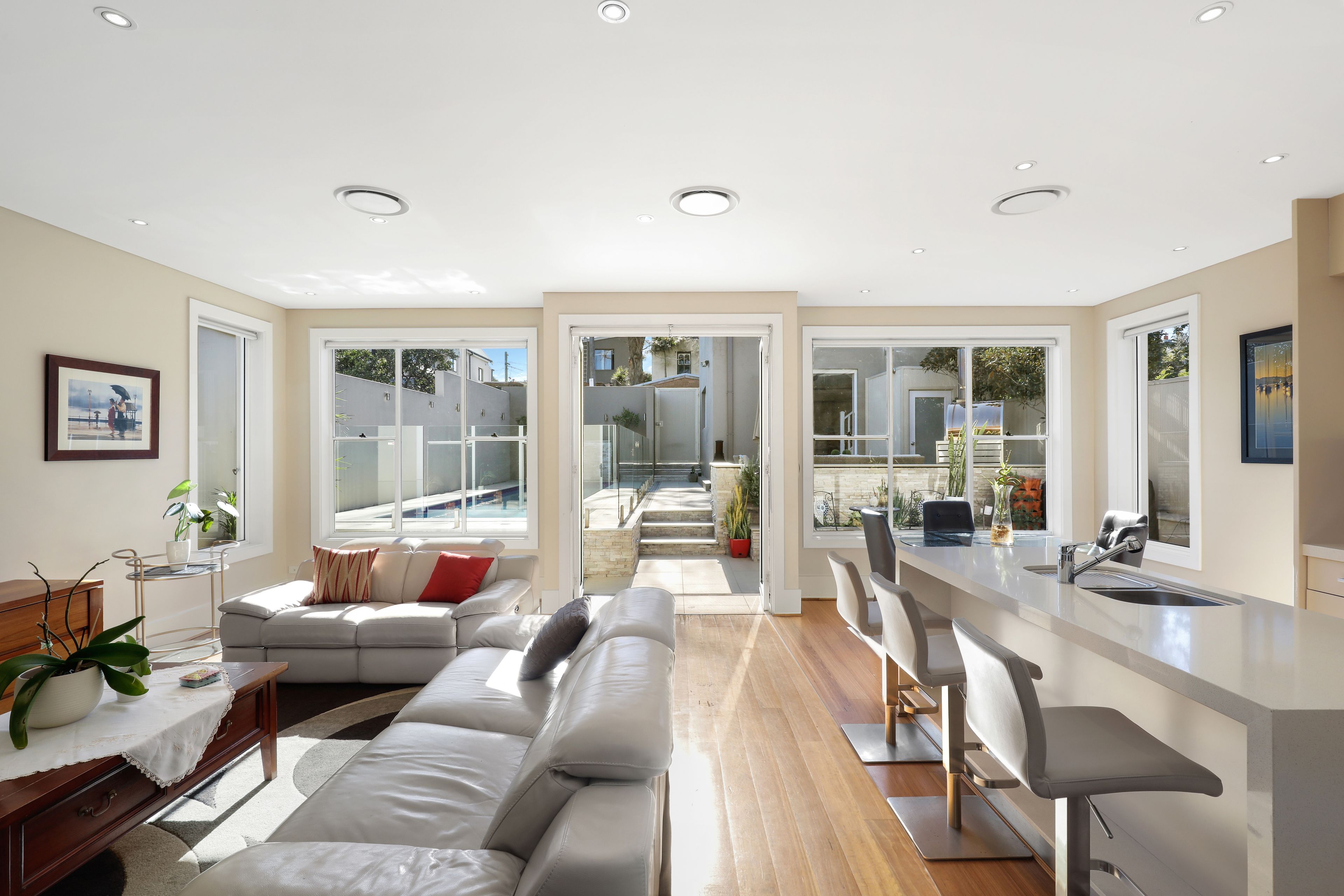 One of the finest residences overlooking Enmore Park, no expense has been spared on the craftsmanship behind its prestigious facade. Completely freestanding, expect instant wow factor with interiors of palatial proportions fusing Federation splendour with contemporary sophistication. Soaring decorative ceilings, ornate fireplaces and bay windows reveal the opulence of its heritage before evolving to in/outdoor architecture. Designed to optimise a prime North aspect, extensive open-plan family areas connect seamlessly to an entertainer's paradise, an extravagant alfresco terrace overlooking the heated lap pool. In addition, an optional guest suite or home office resides above the extra-large garage, and there is a 100sqm attic storage providing scope for an even larger dual-level home (STCA). This tightly held dress-circle address offers an extraordinary lifestyle opposite leafy Enmore Park and Annette Kellerman Aquatic Centre, just footsteps to popular cafes, and a short stroll to a cultural smorgasbord of dining, shopping, and entertainment.