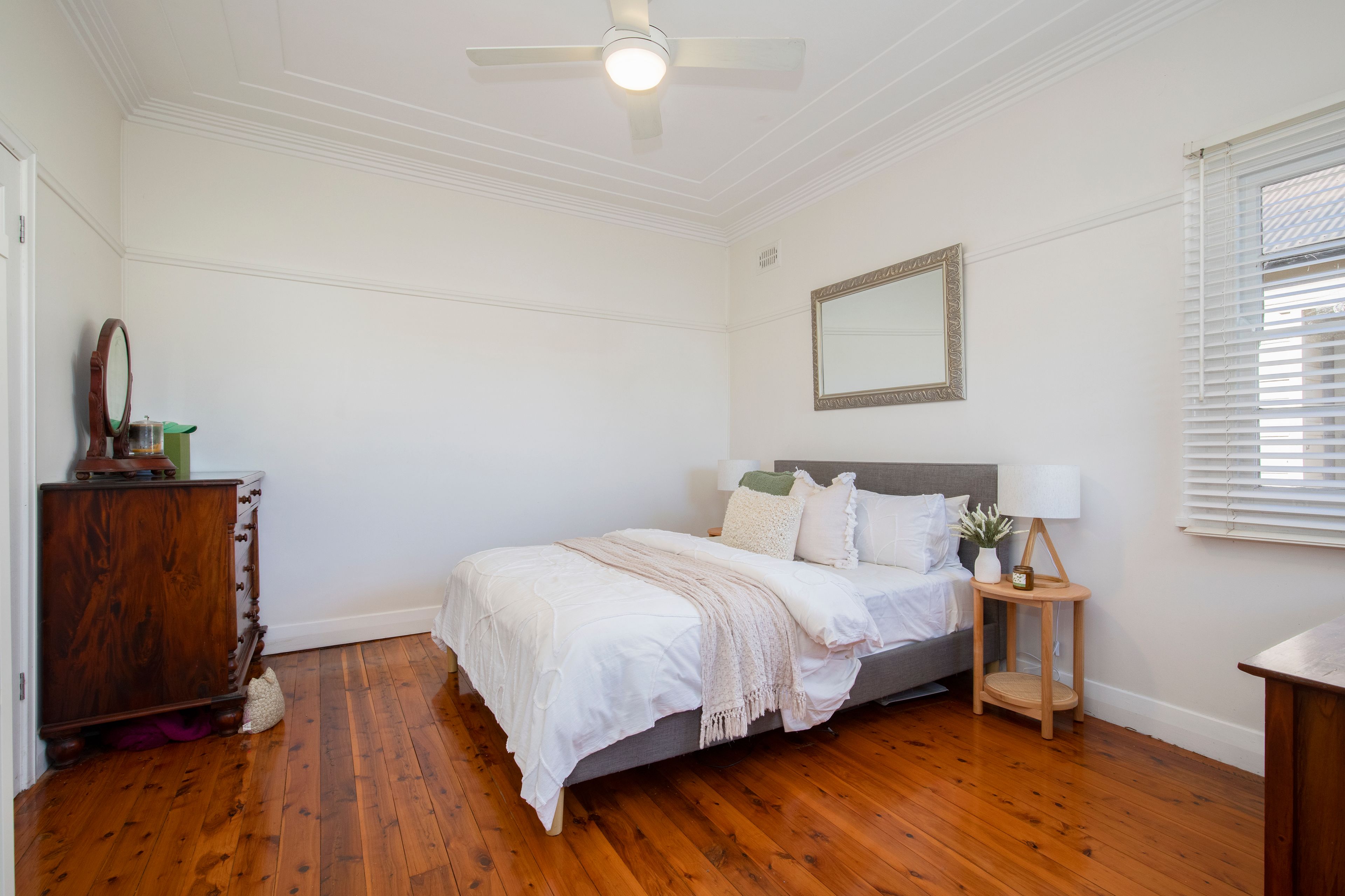 The master bedroom offers a serene escape with access to the undercover front porch, presenting the opportunity for a future ensuite/walk-in robe addition (subject to council approval) enhancing both comfort and convenience.