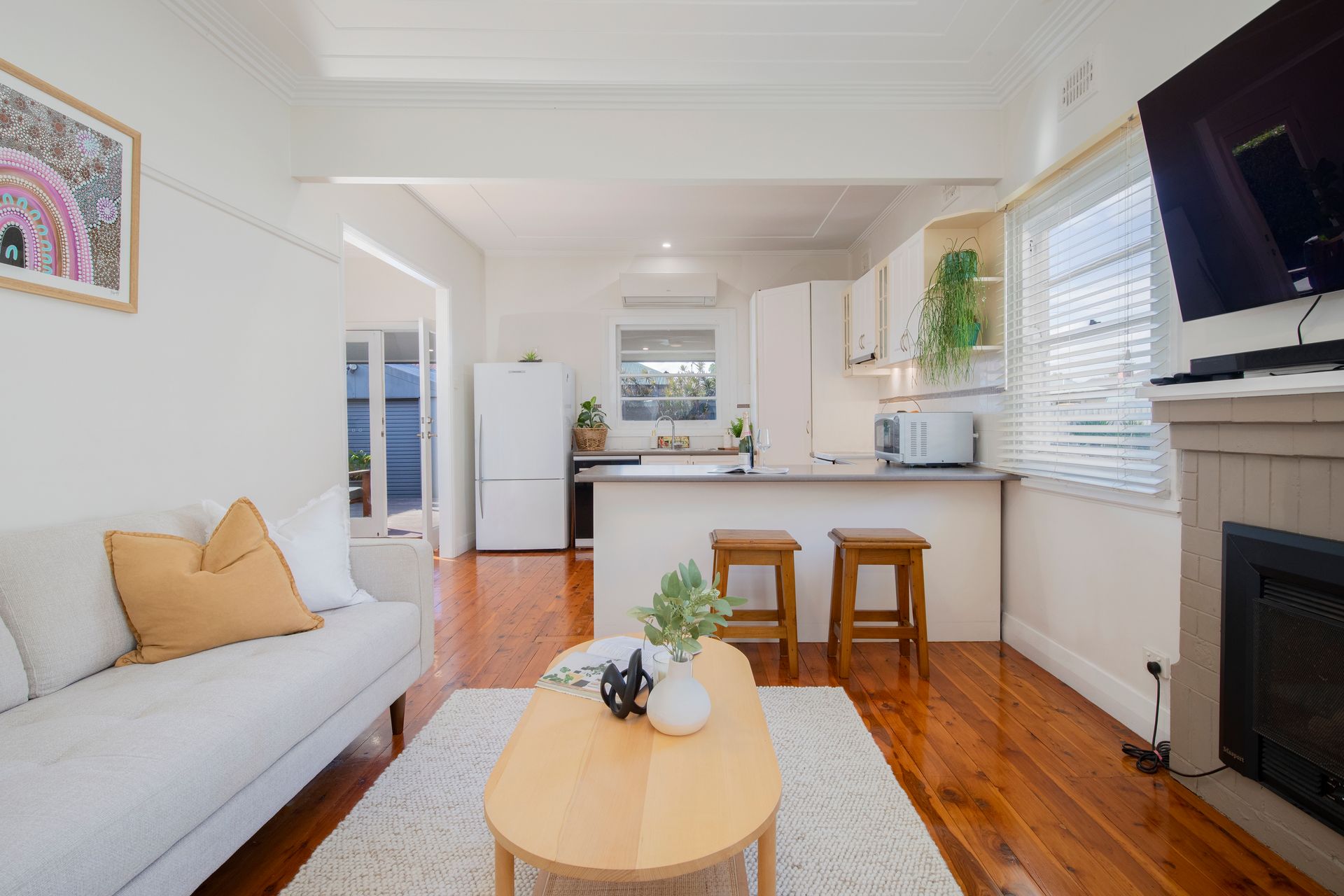 As you step inside, be greeted by the warmth of polished floorboards throughout, complemented by the elegance of original step cornices. The home boasts three cozy bedrooms, all conveniently positioned around the main bathroom featuring a luxurious corner bath, ideal for unwinding after a long day.