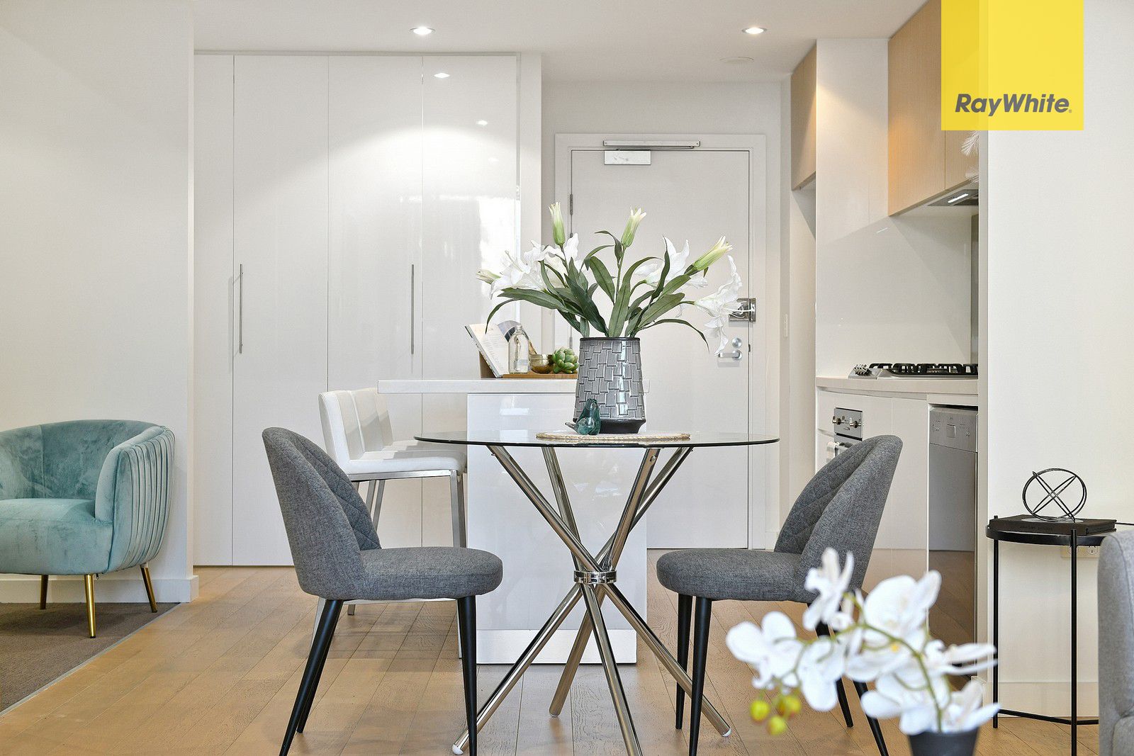 - Keyless entry pad on the front door. - Hybrid timber floor in the living and kitchen area. - Additional tailored breakfast bar with the same granite top and drawers as kitchen, on concealed wheels with 3 white stools for breakfast bar. - Ceiling fans in the lounge and bedroom. - TV bracket on the wall with all wiring to hang a TV. - Additional shelving in kitchen cupboards, laundry cupboards and study cupboards. - Additional built-in cupboards and wardrobe installed in the bedroom. - Heated towel rail in the bathroom. - Personal safe in the study cupboard with an electronic keyboard. - Water tap and gas BBQ tap on the balcony. - Shelving racks in a storage cage and a door that opens out for greater capacity. - Secure basement parking, close to the lift - North aspect of the private garden view is a big bonus.