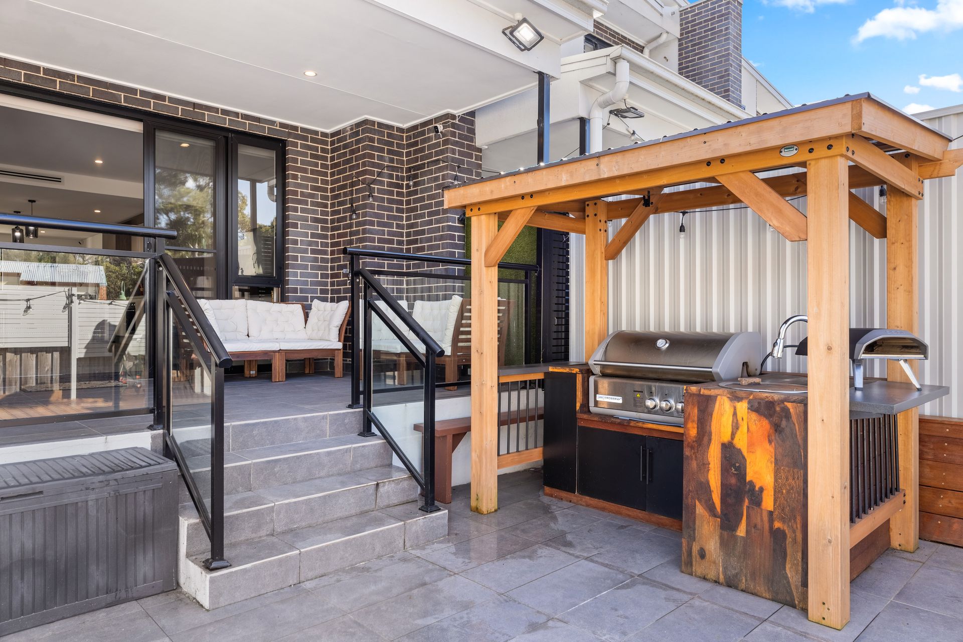 - Superior level of workmanship throughout - Impressive sized living and dining areas separated by the entertainer's kitchen with quality SMEG appliances - Three over-sized bedrooms, all with fitted out built-in robes, Master bedroom includes an ensuite and a private balcony - Upstairs tv retreat / study area - Ultra modern main bathroom, plus powder room downstairs with sleek finishes - Internal access to secure underground garaging for two cars and an added bonus of a huge storage area - Alfresco and tiled/decking area to accommodate all of your outdoor entertaining needs - Full brick construction on the lower levels - concrete floor to all levels - Ducted air conditioning throughout for year round comfort