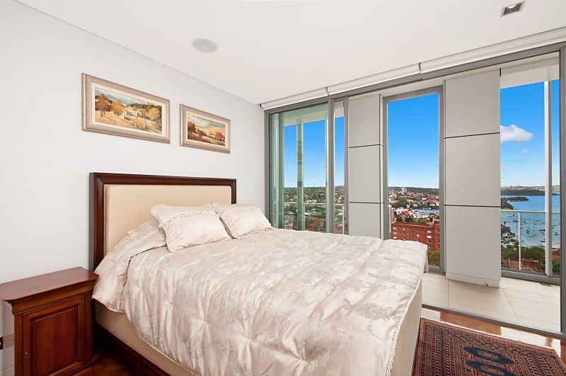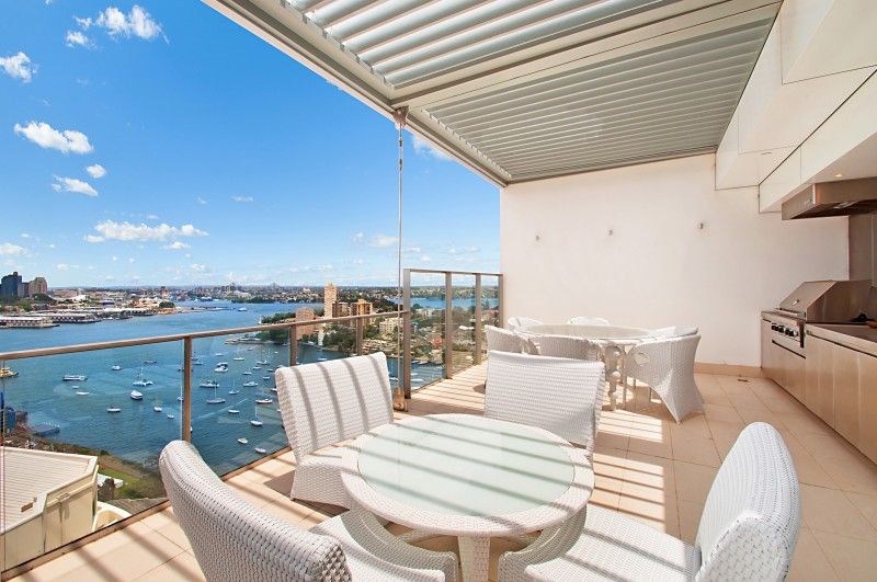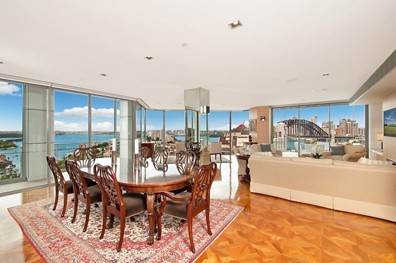This penthouse benefits from spectacular world class views including gun barrel views of the Sydney Harbour Bridge and Sydney Opera House. The panoramic vista stretches west over Lavender Bay, across to Balmain, south to the city and east towards the shoreline of Neutral Bay, Mosman and Cremorne.