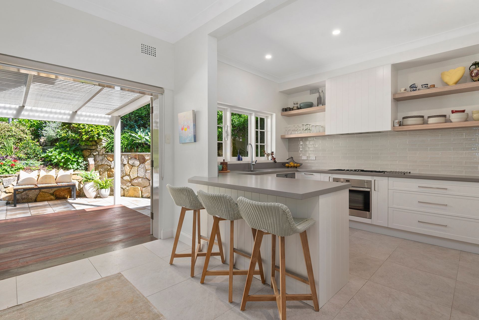 Accommodation - Lounge and dining encased in large windows dressed in plantation shutters - Renovated stone kitchen with modern shaker-style cabinetry and pantry - Kitchen featuring Miele appliances, undermount sink and pull-out mixer tap - Versatile upper-level TV room or family room opening to an idyllic balcony - King-sized master bedroom with built-ins, walk-in robe and modern ensuite - Storage in all bedrooms, open-plan study with a picturesque northerly outlook - Contemporary grey and white family bathroom with frameless glass shower