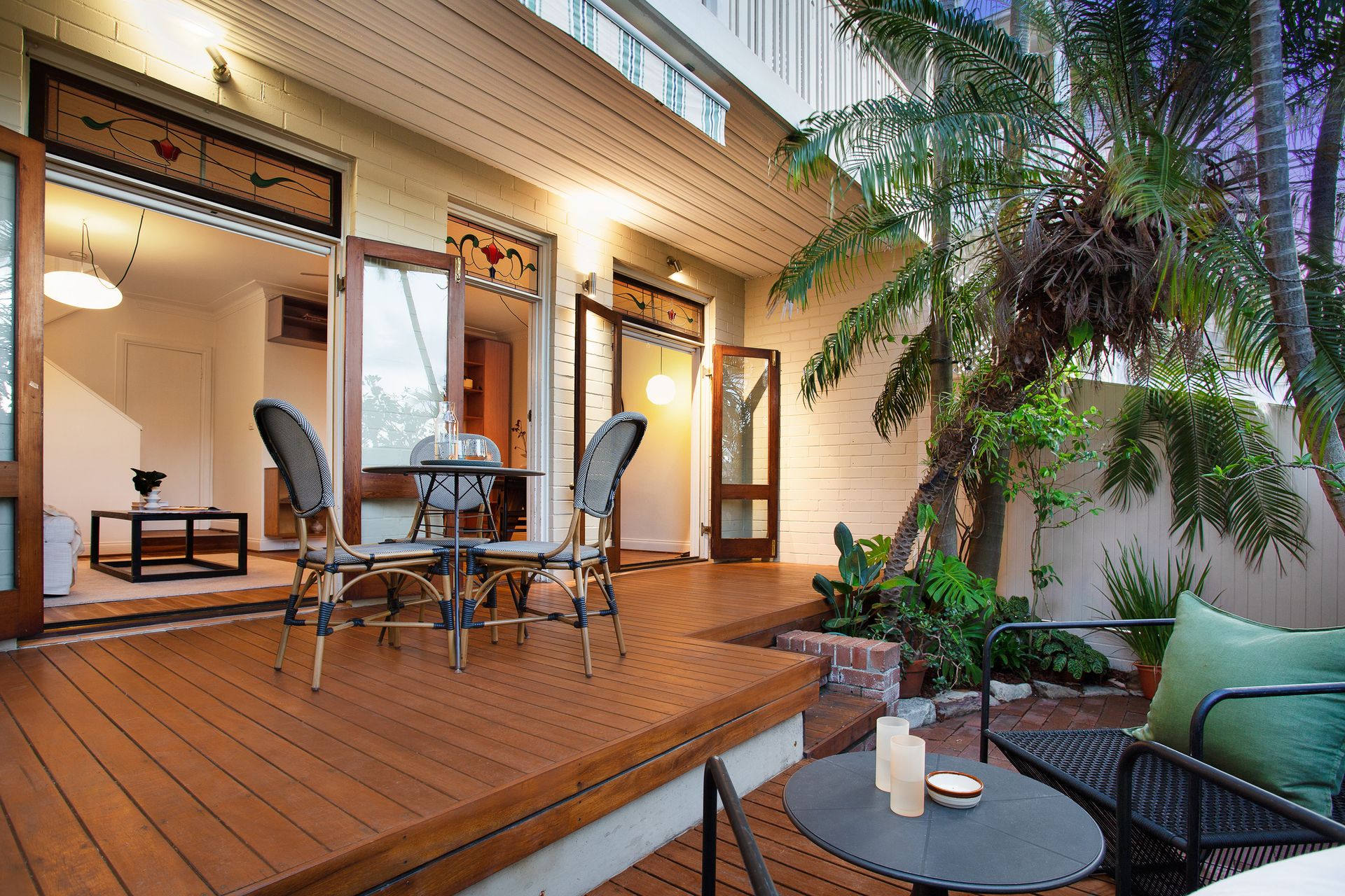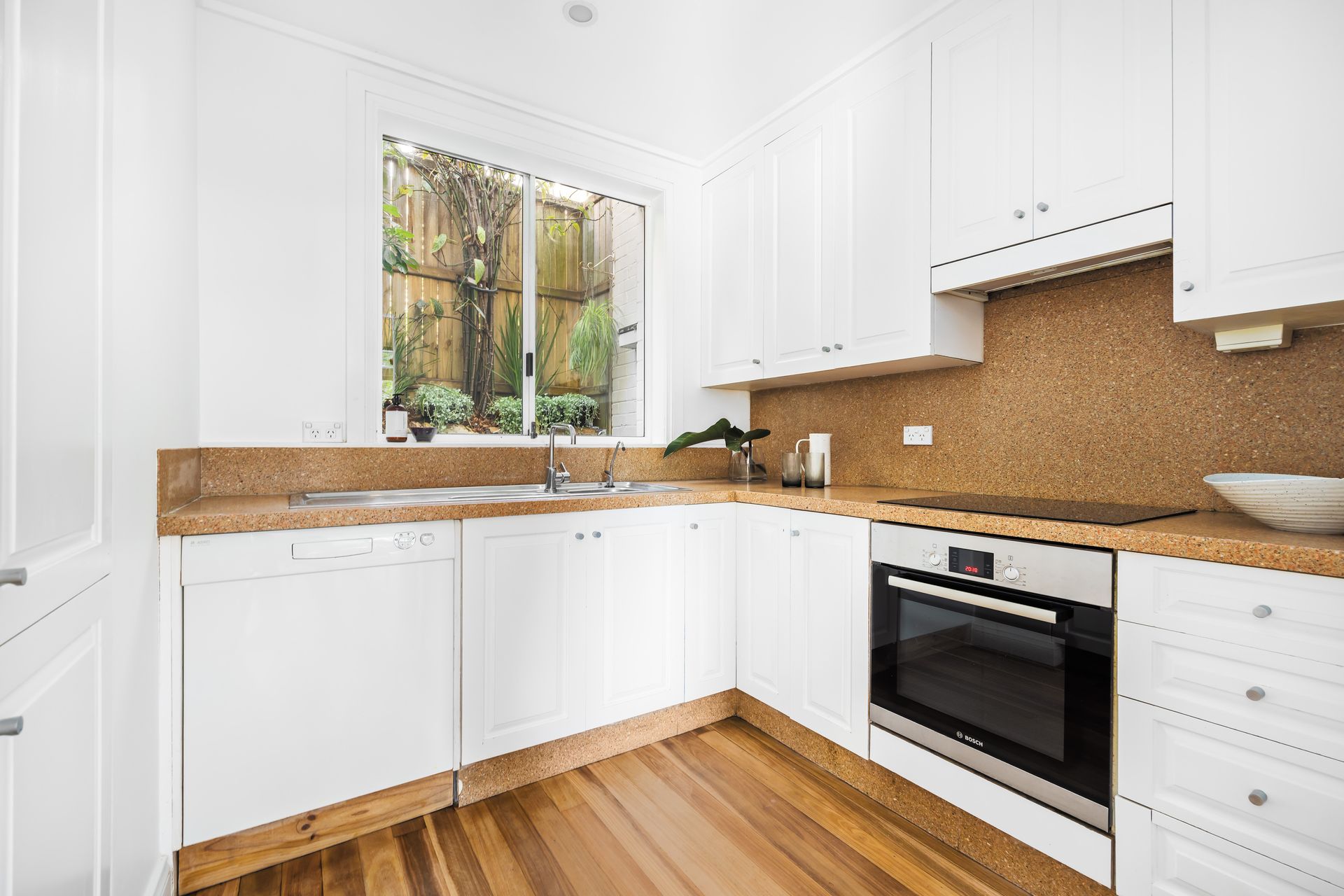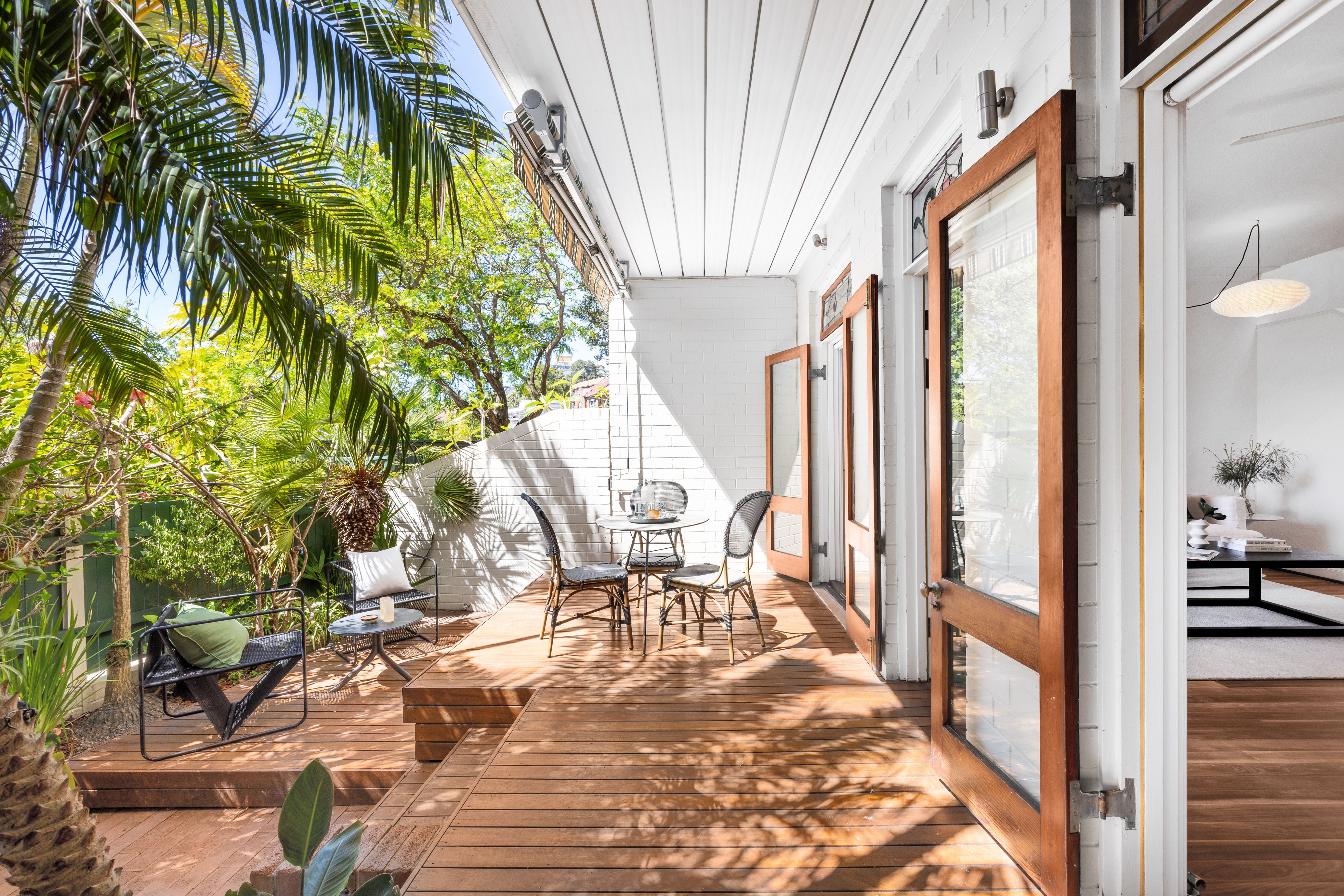 A boutique offering infused with classic elegance, the property features private garden courtyards at the front and rear. With double doors opening onto a wide timber entertaining deck, the lower level encompasses a sun-soaked living/dining area and a well-designed kitchen complete with stylish stone benchtops. Upstairs, two bedrooms lead onto a full-width balcony with views to the North Sydney skyline as well as a family bathroom featuring plenty of natural light.