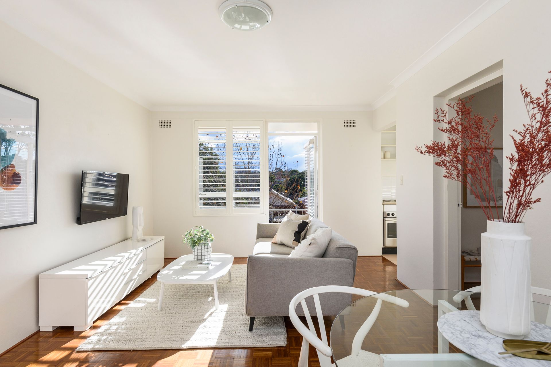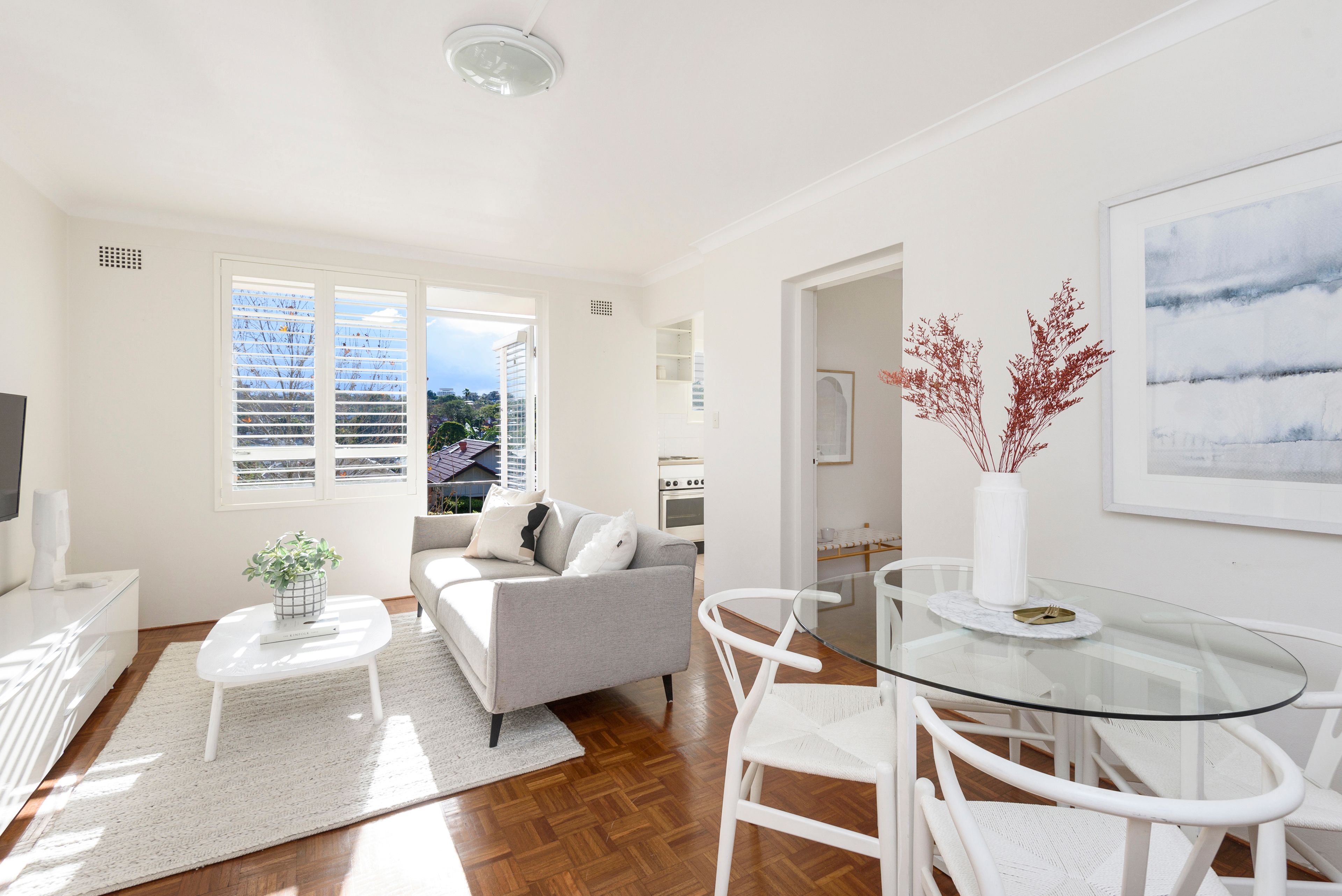 This bright and sunny apartment is mere footsteps to Mosman village's buzzing cafes, shops and cafes. Positioned on the first floor of a recently refurbished security building that is set back from the street offering a peaceful, quiet and convenient location. Polished floorboards throughout the property and a large living area flow smoothly onto a north facing balcony, creating the perfect place to relax.