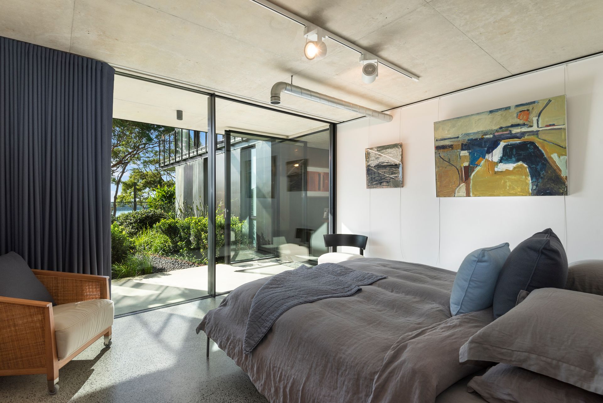 Completed in 2019, the eco-friendly build adheres to European standards and creates its own microclimate through double glazing, temperature controlled concrete flooring, air-circulation system and ducted air-conditioning. In addition to the focus on comfort, natural light has been skilfully harnessed in the design process with the living areas all orientated to the north-east. Encased by walls of Vitrosca floor-to-ceiling stacker windows, showstopping views along with the idyllic landscaped gardens are welcomed at every opportunity.