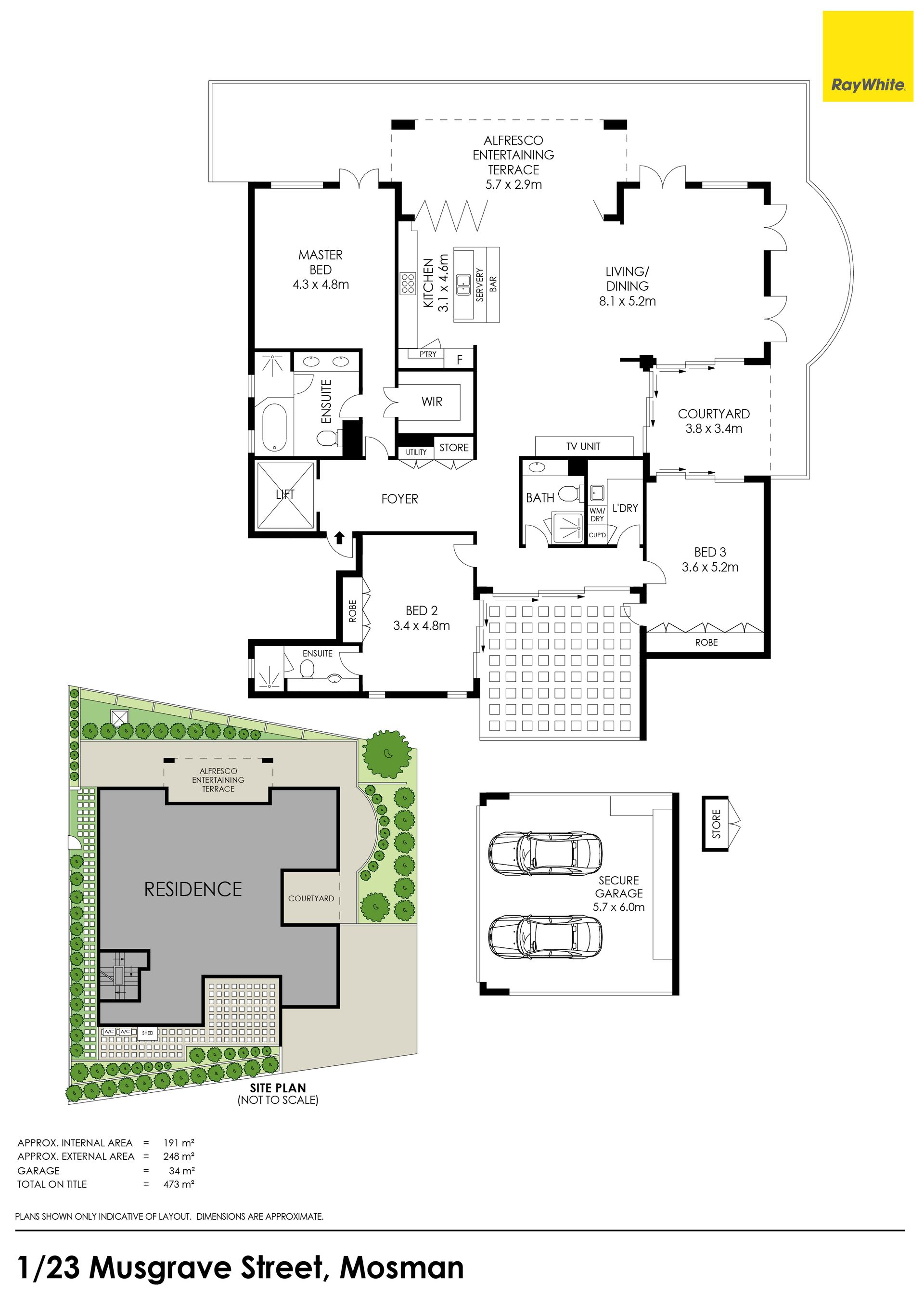 • Lift opening directly into the apartment's foyer • Luxury floor finishes and exquisite custom detailing • Two sliding walls of glass open to internal courtyard • Elegant joinery anchors the relaxed family room • Light streams into living room from three aspects • Bi-fold doors to terrace off the dining and kitchen • Breakfast bar seating in the semi open plan kitchen • Stone encased kitchen island, filtered water system • Smeg exhaust above the 900mm Smeg gas cooker • Integrated Miele dishwasher, built-in convection oven • French doors in the master opening to main terrace • Dual aspect second bedroom with marble ensuite • Versatile third bed, currently configured as a TV room • Built-in robes and endless custom storage throughout • Huge primary ensuite featuring a luxe spa bath • All three bathrooms warmed by underfloor heating • Striking marble vanities and inset mirrored storage • Laundry room featuring a pull out ironing board • Heat strip warming the protected alfresco dining • Manicured hedging borders the landscaped terraces • Tri-zone ducted reverse-cycle air-con and ceiling fans • Clipsal smart home system, video intercom, alarm • Motorised blinds and awnings, automated lighting • Watering system, Roman blinds and luxe curtains • Secure visitor parking, double side by side garaging • Dual access by locked internal lift and secure stairs • 150m to ferry wharf for a 15-minute city commute • 150m to Curraghbeen Park via Charles Dansie Walk • Footsteps to bus stops servicing Mosman Junction • Close to leading schools and local sailing clubs • 600m to Sirius Cove Reserve and dog friendly beach