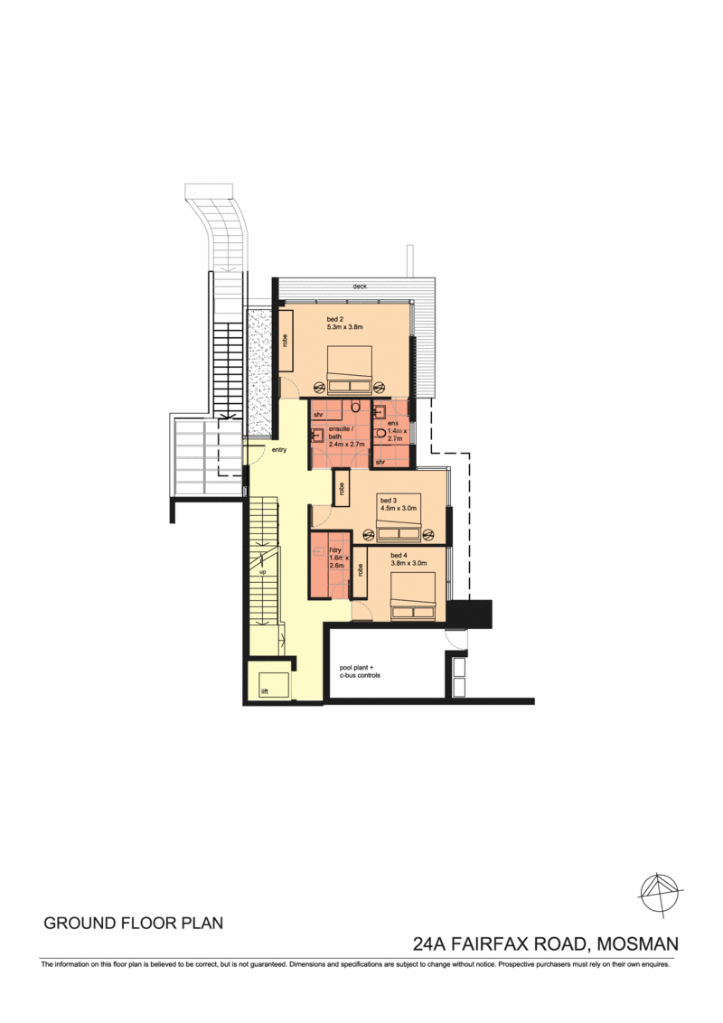 - An innovative series of overhanging pod-style pavilions - Level lift access to 3 glass-embraced levels from a DLUG - 4 beds with custom robes and decks or terraces, 2 ensuite - Whole-floor master retreat with fitted study and dressing room - Sun drenched living and dining zones, views to Clontarf Beach - Entertainer's dream kitchen, private eco-friendly gardens - Suntrap courtyard and heated pool, stone-flagged terraces - Travertine baths, powder room, C Bus, ducted air, storage - Stroll to idyllic harbour beaches, parkland and scenic walks