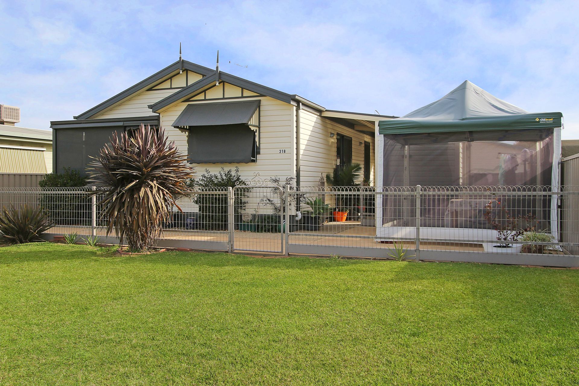 Delightful 2 bedroom heritage style home in the Sun Country Village. This home presents like new. Beautifully located with views across open land towards Lake Mulwala. Neutral colours flow throughout the home, well appointed kitchen with dishwasher, gas cooktop and electric wall oven, plenty of bench space and storage. Casual dining area opens to large lounge area. Split system reverse cycle air conditioner. Two big bedrooms with BIR's. Master bedroom has its own split system for year round comfort. Outside there is a carport with remote access & garden shed. Boundary fencing to all sides ensures security & privacy. With low maintenance surrounds this is a great home for today and tomorrow while living the dream.