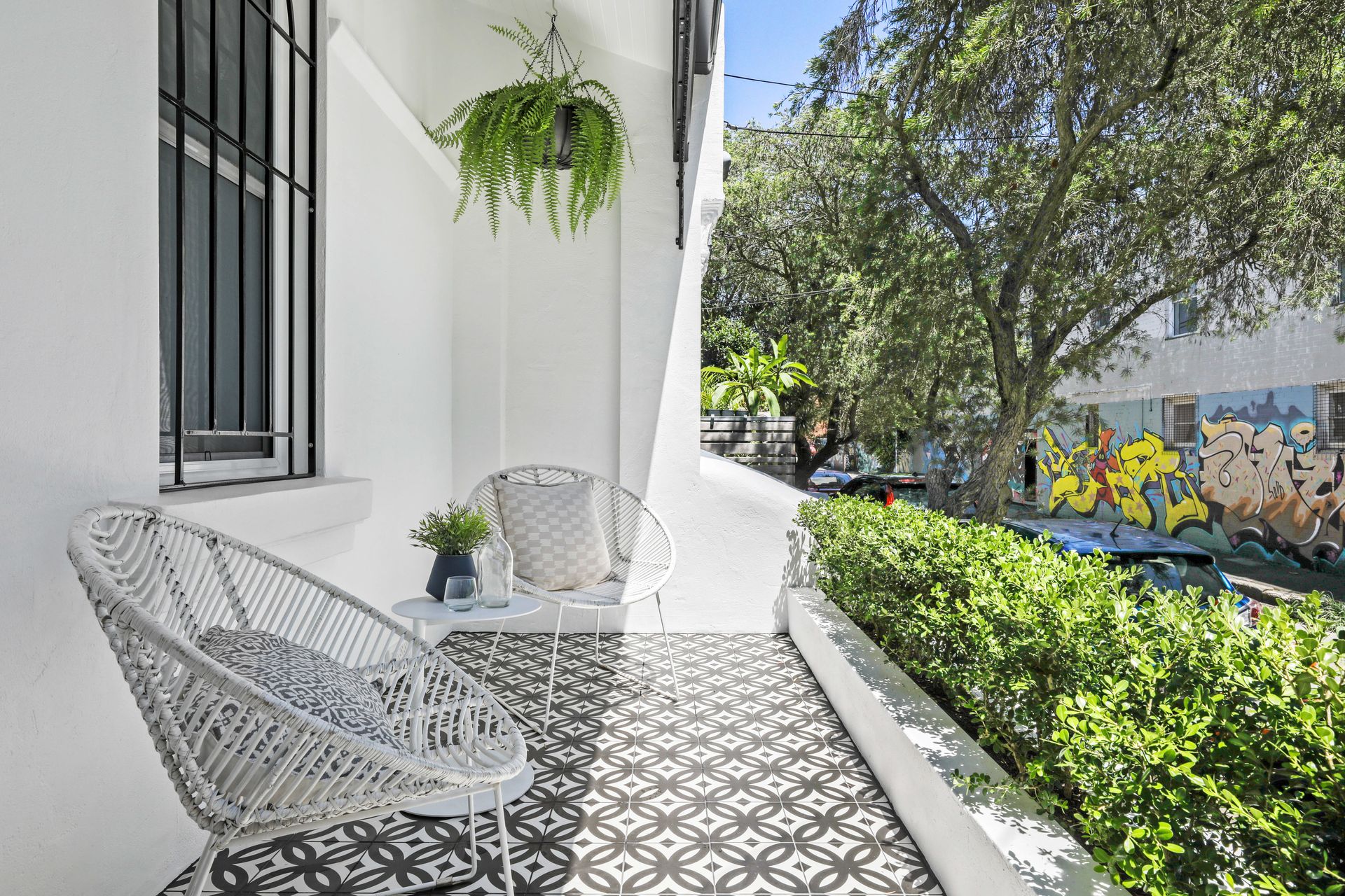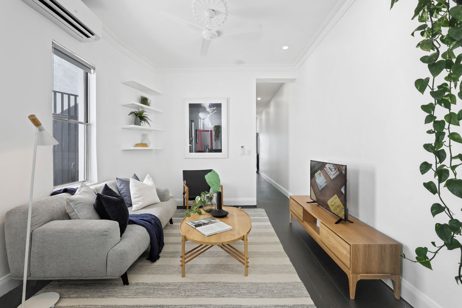 - 2 spacious bedrooms, both feature built-in robes - Bright gourmet kitchen with Gaggenau induction oven - Secluded and peaceful entertainer's retreat, fully paved - Residential rear lane with large communal garden - 120sqm block with side & rear lane access - Picture-perfect facade, 5.36m wide frontage - Elevated front verandah, perfect for people watching - Updated classic bathroom with tub & internal laundry - High ornate ceilings and black painted floorboards - Air conditioning & LED dimmable downlights throughout - Internal storeroom, quality security door & grills - Footsteps to a cultural hub of dining, entertainment & shopping - Short stroll to Newtown train station and superior bus services - In catchment for Newtown High School of the Performing Arts