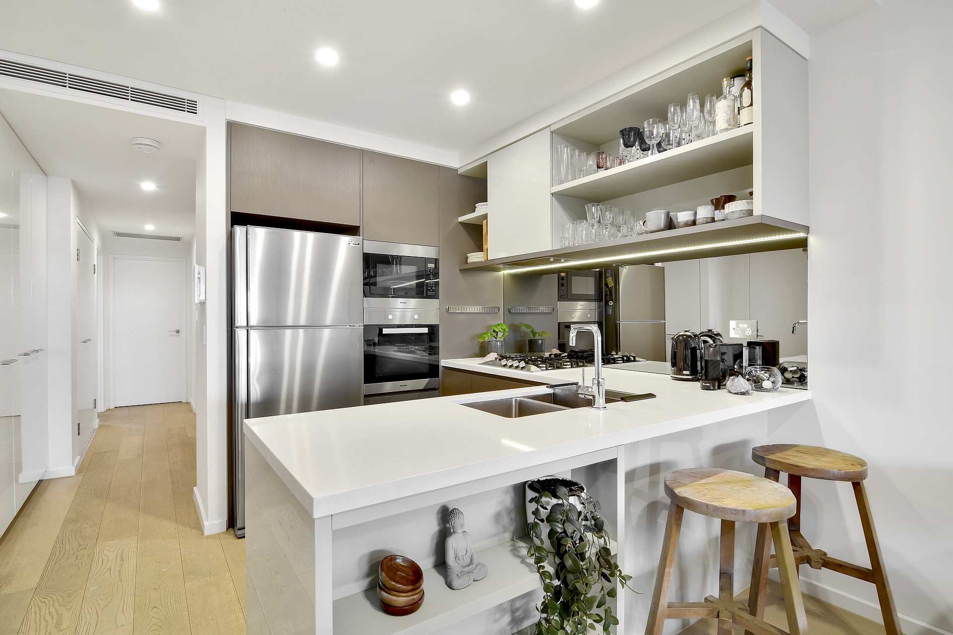 - Two oversized bedrooms with built in wardrobes, main with ensuite - Separate study perfect for the home office - Large open plan living area, flowing onto a private covered balcony - timber flooring throughout combined living and dining area - Ultra-modern kitchen with Miele Appliances including dishwasher and gas cooking - Both bathrooms with marble features - Ducted air-con throughout - Secure parking - Security building with video intercom and lift access - In the catchment for a number of quality schools - Only moments to trendy Newtown restaurants, bars & cafes - Pets on application