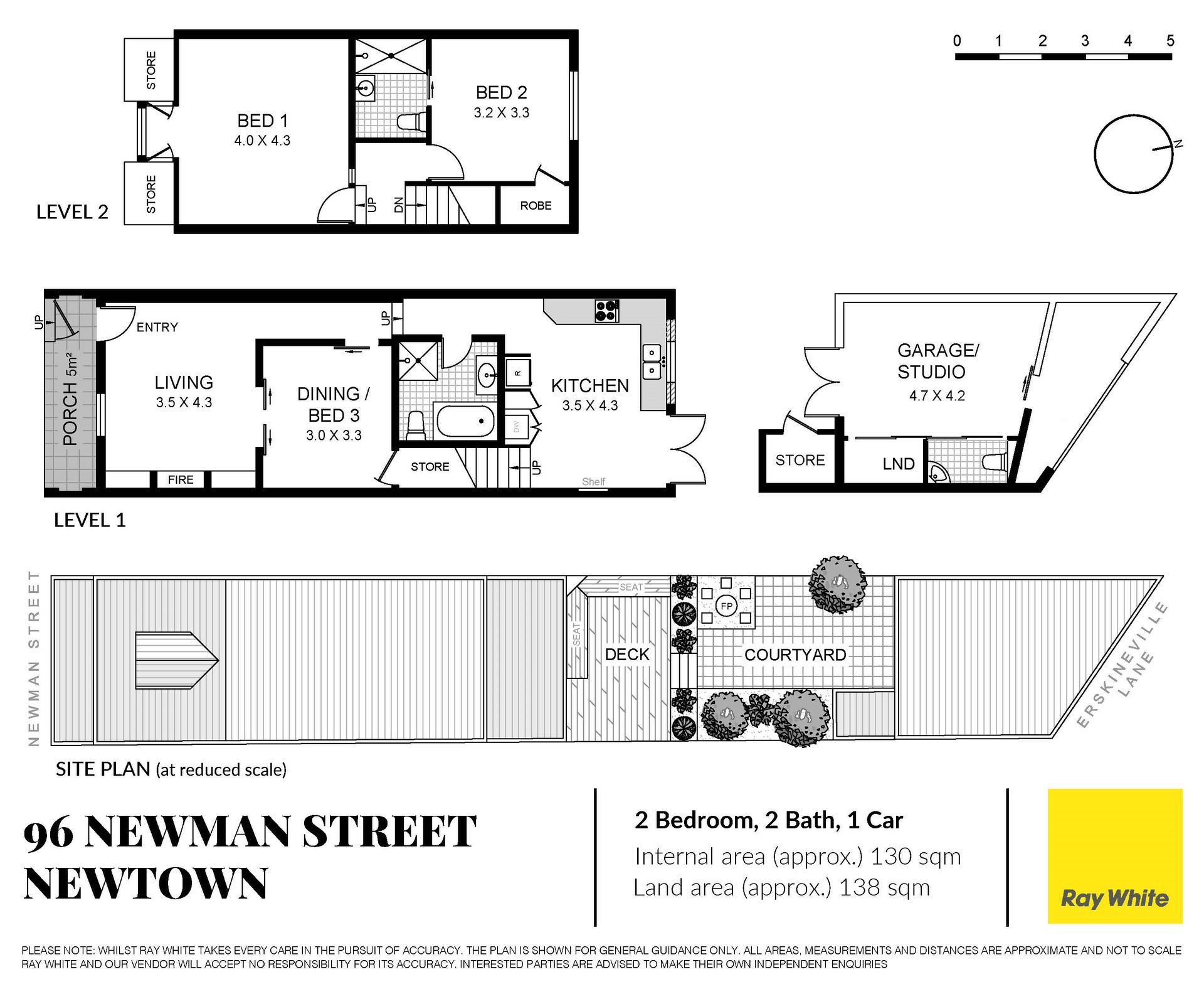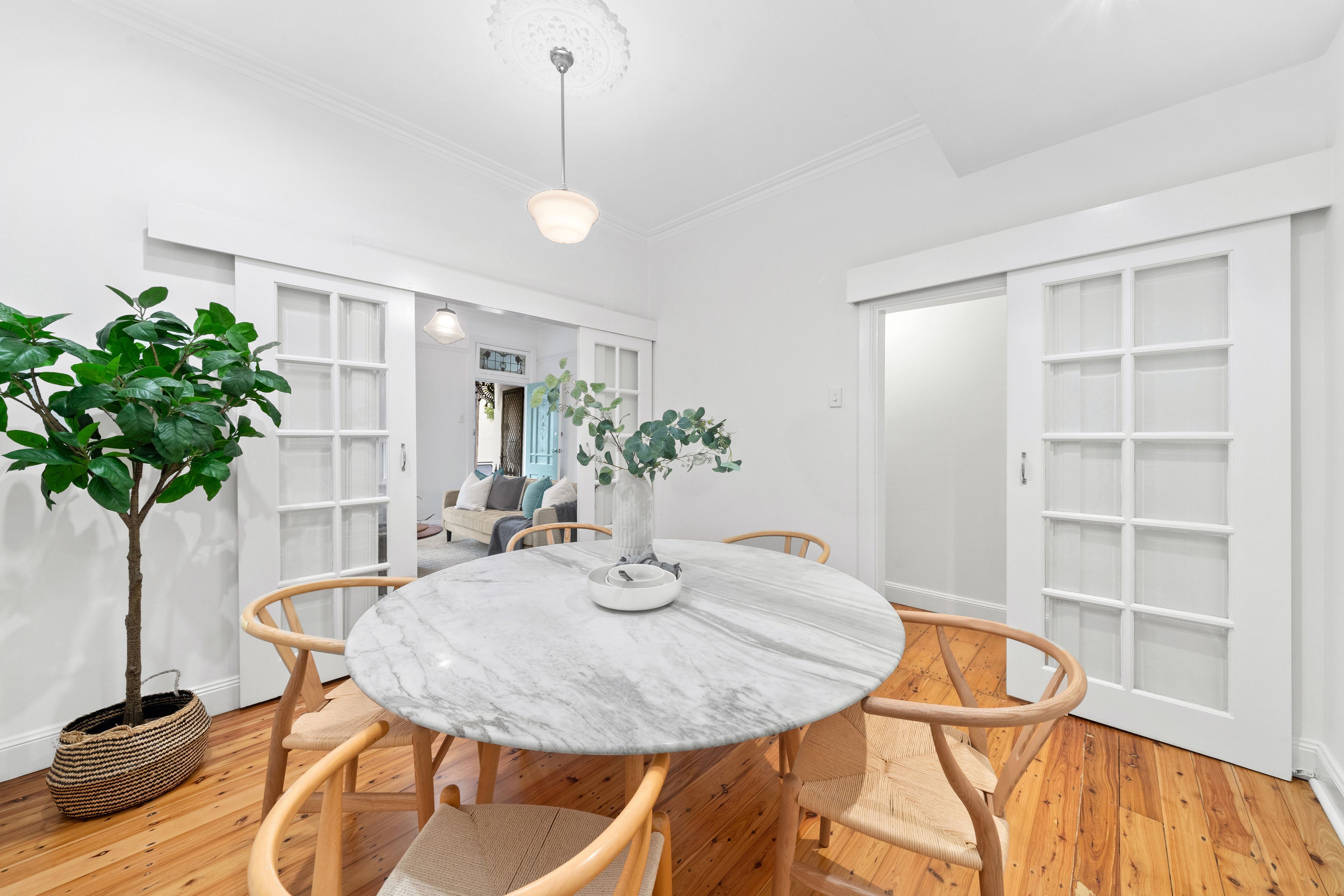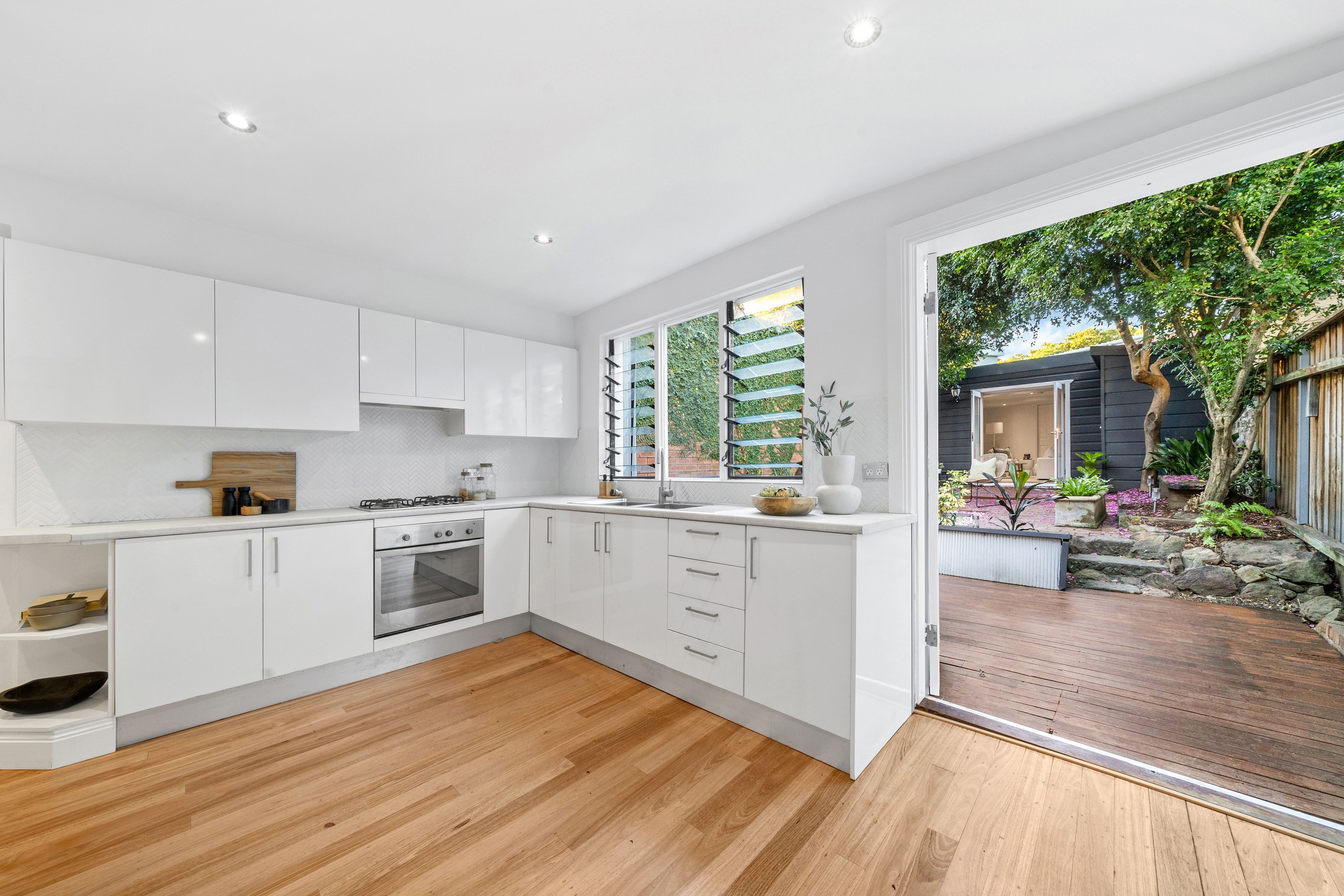- One-way street between Newtown and Erskineville village - Polished timber floors, freshly painted interiors, high ceilings - Flexible two-storey layout, studio/4th bed or lock-up garage - 2 upstairs bedrooms, the main with built-ins and an ensuite - Dining room or 3rd bedroom with recessed pocket doors - Stylish living room anchored by a fireplace, reverse cycle air - Sunny contemporary gas kitchen overlooking the garden - North facing entertainer's deck with integrated bench seating - Private established garden bathed in all day northerly sun - 2 bathrooms, studio with built-in robes and a powder room - Secure storage, 138sqm with rear access via Erskineville Lane - 400m to Erskineville station, 300m to Newtown Public School - Friendly village community, an easy commute to the city - Rates: Water $180pq, Council $355pq (Both approx.)