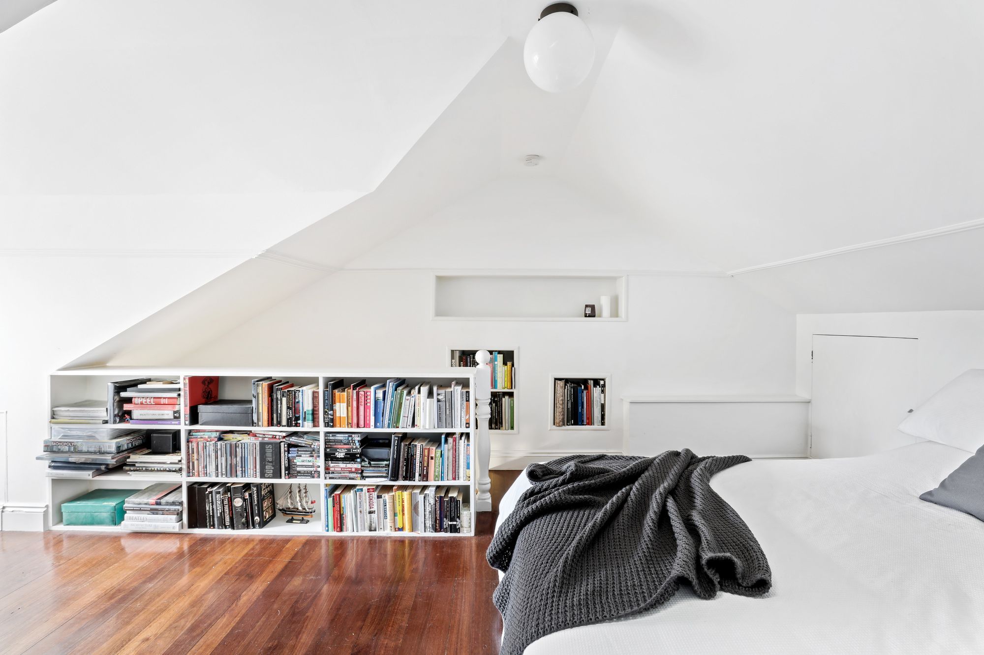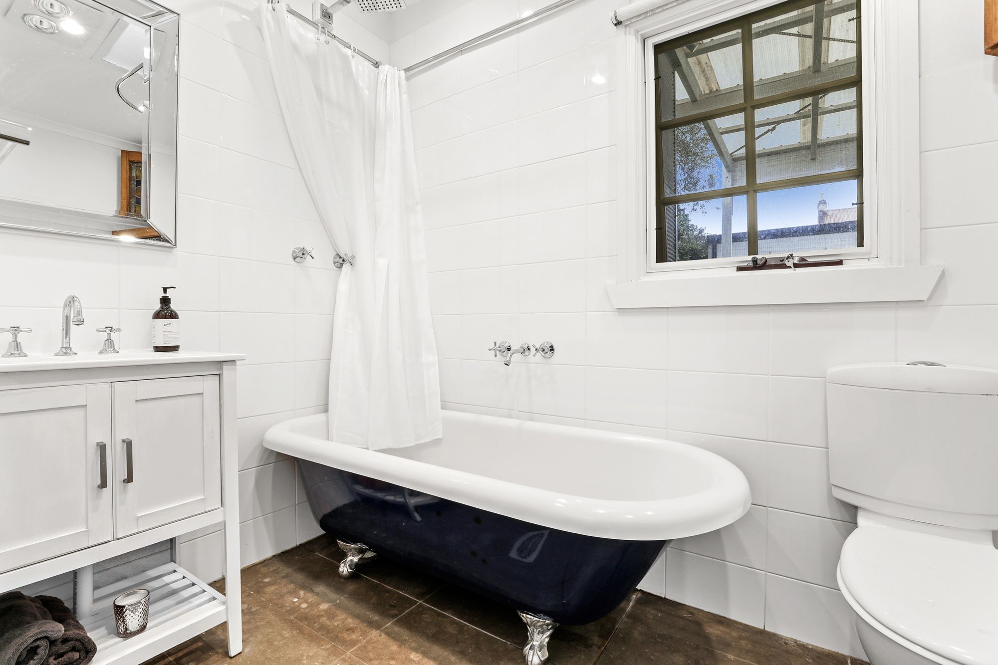 - Leafy neighbourhood setting, north facing 158sqm approx - Three double bedrooms plus a study with built-in cabinetry - Upper level retreat with a dormer window and storage - Reverse cycle air, Velux skylight with automated blind - Fluid living, new timber flooring and Italian limestone floors - Streamlined Italian appointed kitchen with a breakfast bar - Bi-folds to a wraparound deck and covered dining pergola - North facing garden, studio with penny mosaic tiled ensuite - Main bathroom with a clawfoot bath, separate laundry room - Walk to weekend markets, 600m to Camdenville Public School