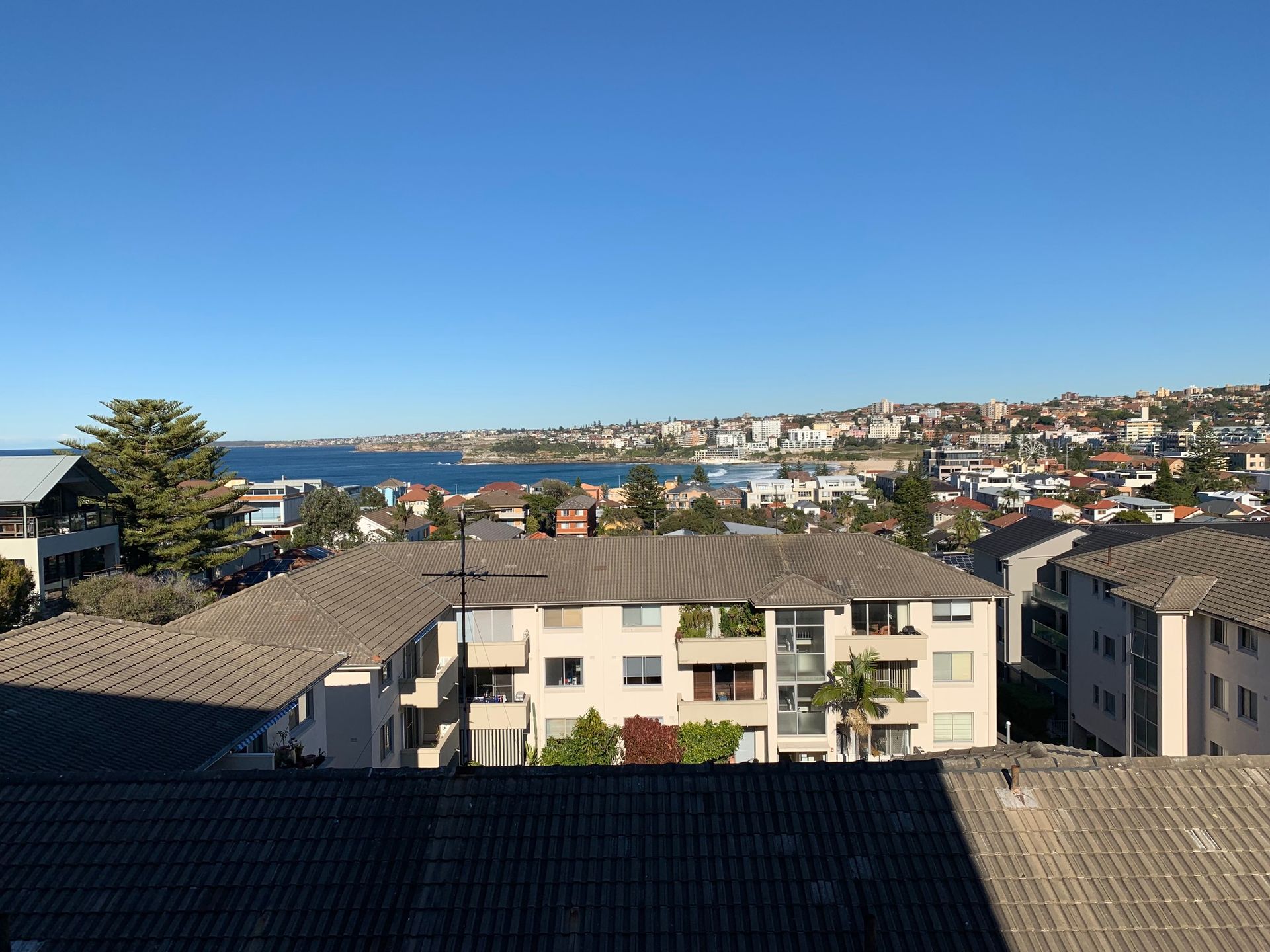 Set back with an elevated aspect on the fourth floor, this modern two bedroom apartment captures both Bondi beach views and city skyline including Sydney Harbour Bridge.