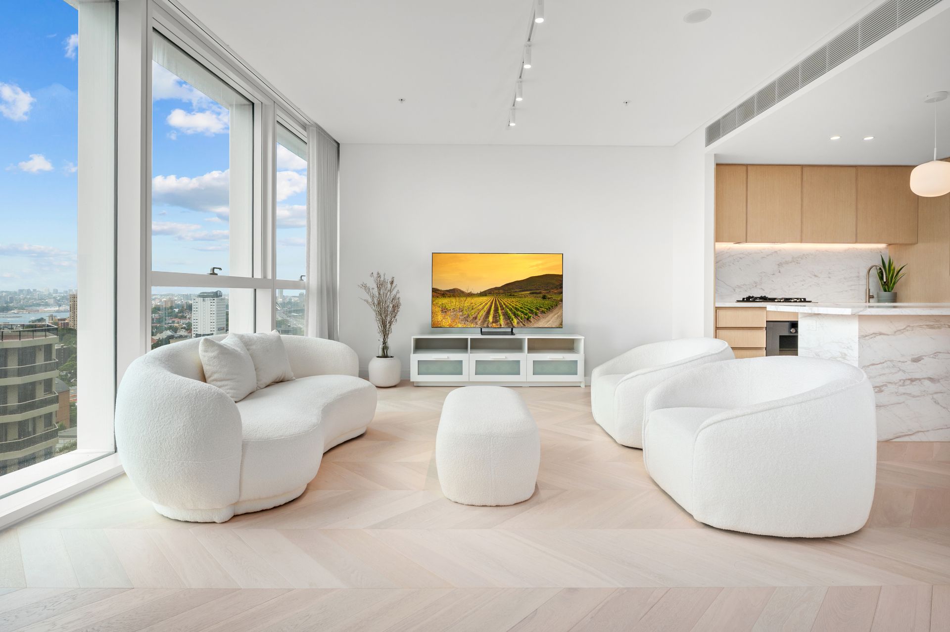 This exceptional, high-end apartment in Aura by Aqualand captures breathtaking cinematic views across Sydney Harbour, with the iconic Opera House forming a spectacular daily backdrop. Showcasing bold contemporary design, the residence features light-filled open-plan interiors, sleek architectural lines, and a refined neutral palette complemented by premium finishes throughout.