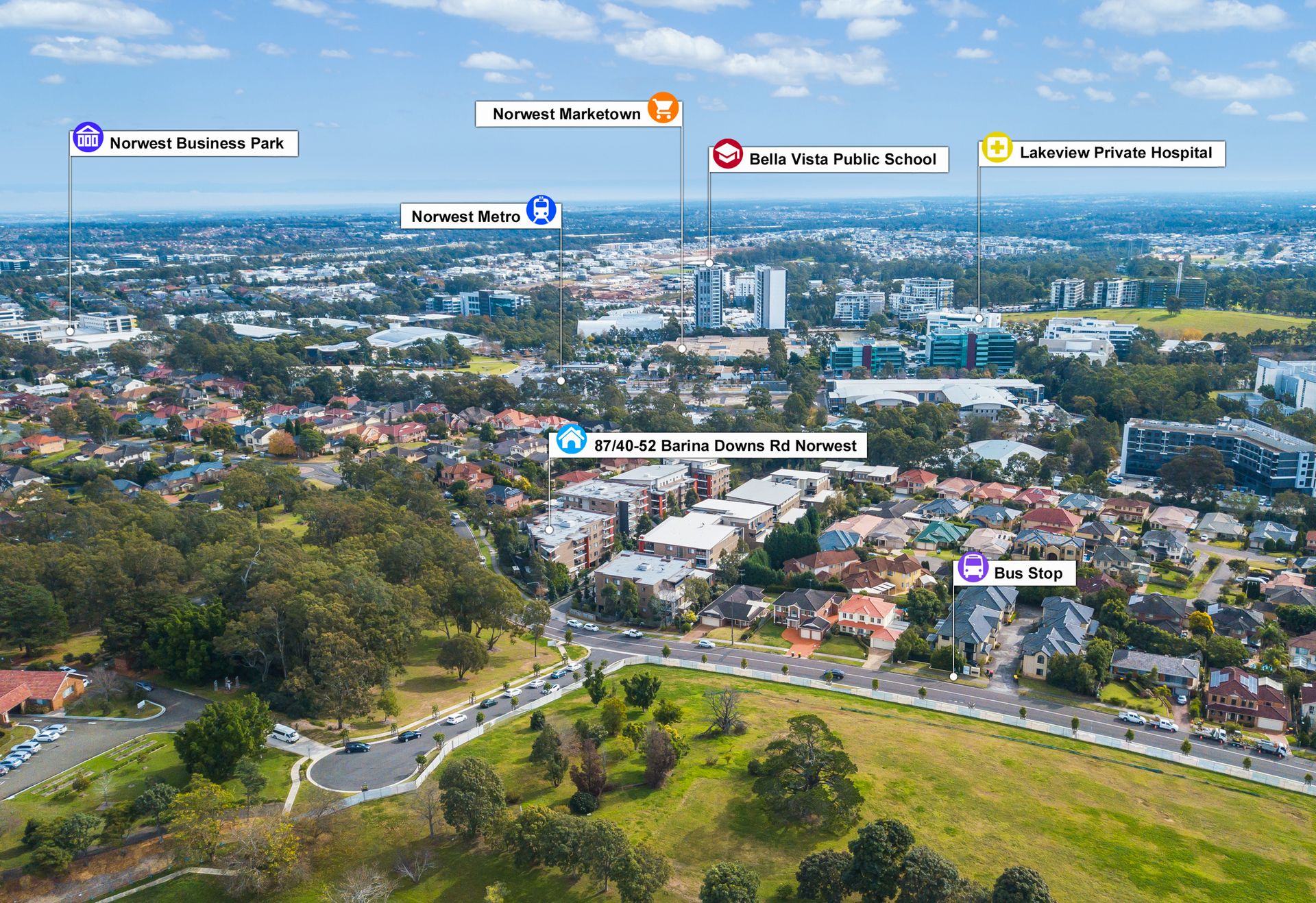 This coveted contemporary complex is popular with both tenants and home owners alike who appreciate the vast green areas and convenient position. The unit is within a 5-minute walk to Norwest Station and is accessible to the M7 and Windsor Road providing future residents with endless transport options. The complex is a casual stroll or quick drive to Norwest Marketown, home to a variety of stores including coffee shops, restaurants and Coles supermarket along with health and beauty services.