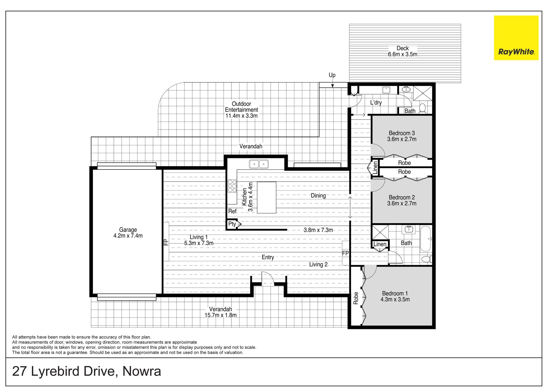 • Three generously sized bedrooms with built-in robes. • Family sized bathroom with bath, multifunction shower heads and heated towel rails. • Additional guest bathroom.