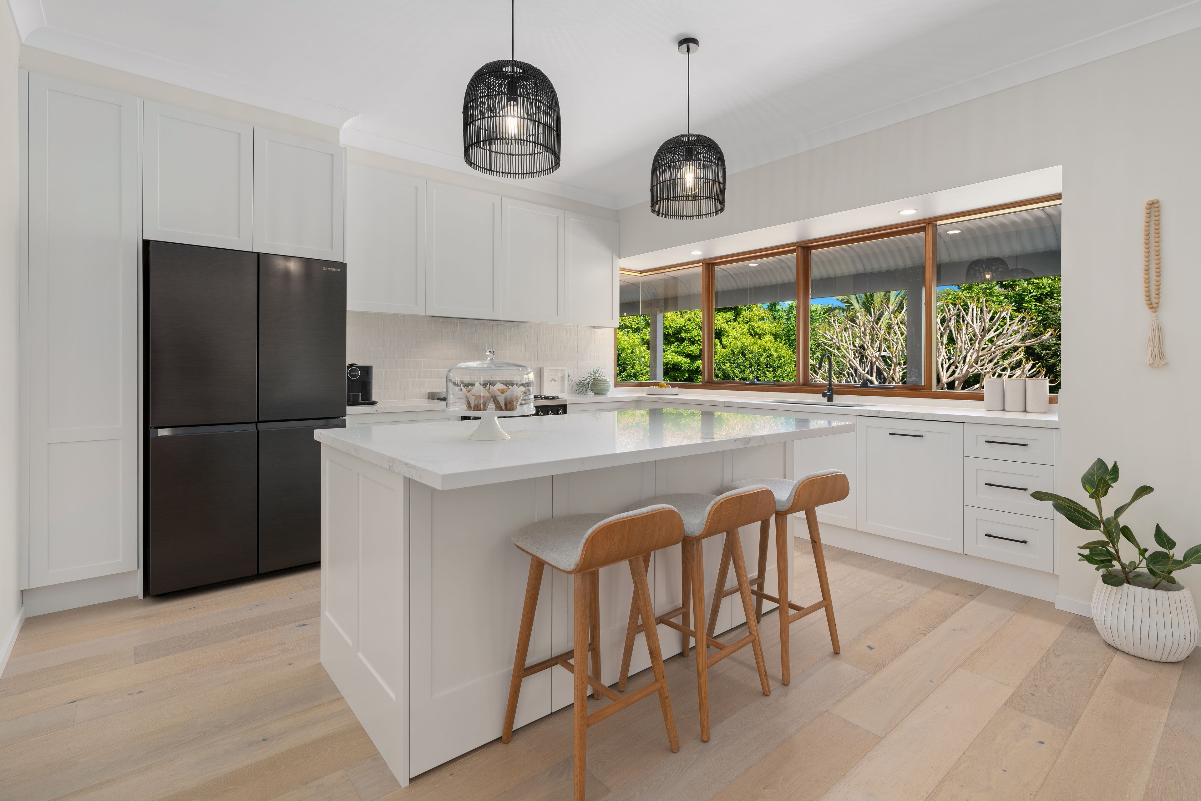 • An outdoor dining area adjoins the open plan kitchen, dining and informal living area through sliding glass doors. • A separate elevated sun deck is situated to the rear of the home.