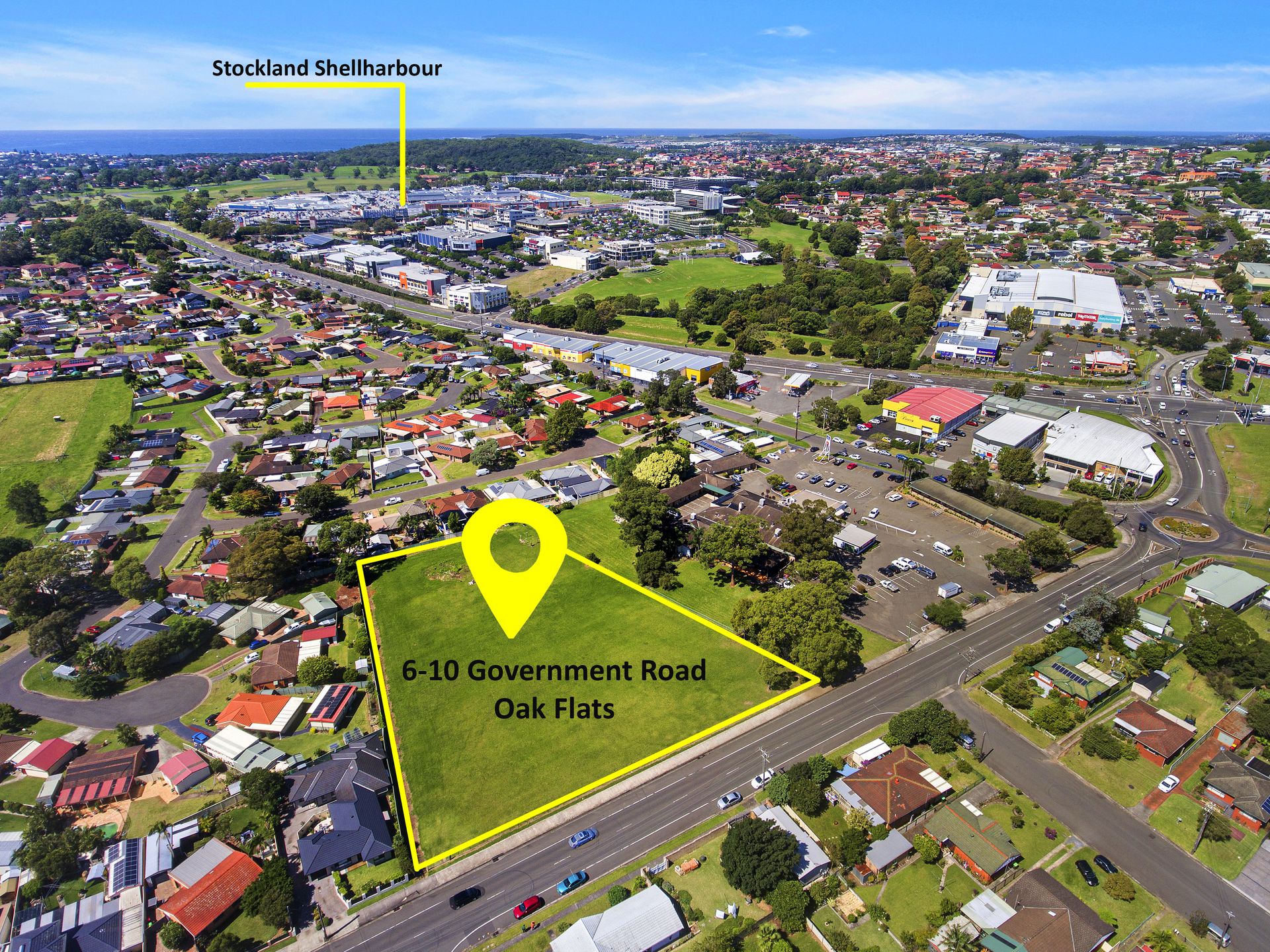 - Large almost level residentially zoned parcel in prime location. - Northerly aspect to Lake Illawarra. - 1.4km to Shellharbour Square Regional Shopping Centre. - Zoned R2 residential. - Site area 7341sqm. - FSR .5:1 - 20km by freeway south of Wollongong CBD. - 1.8km to Oak Flats Village. - Long frontage to Government Road.