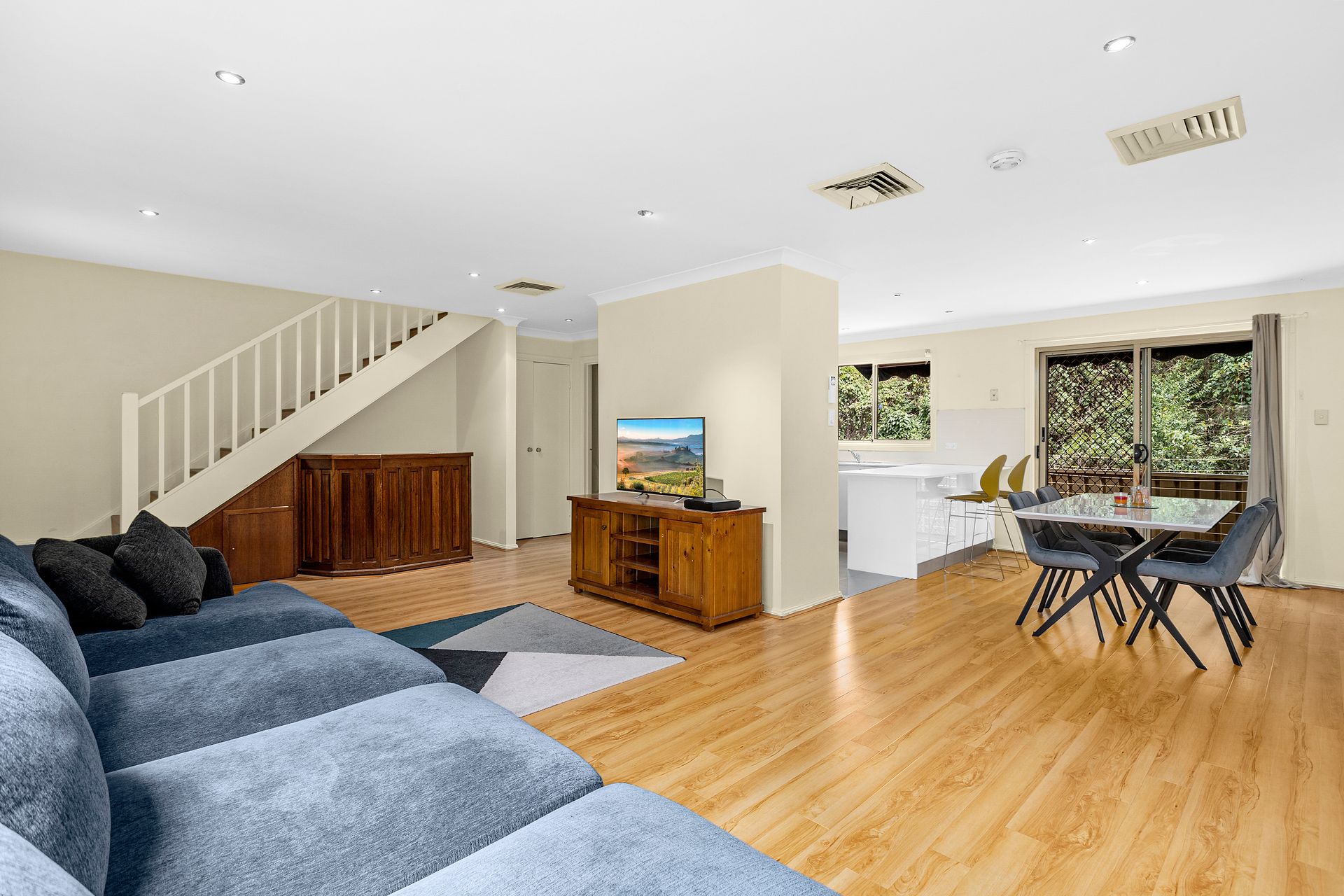 The combined lounge/dining room is bright and airy, enjoying all day sun and flowing directly out to the rear deck. Large and open plan, this central hub of the property allows for a clearly defined lounge and separate dining.