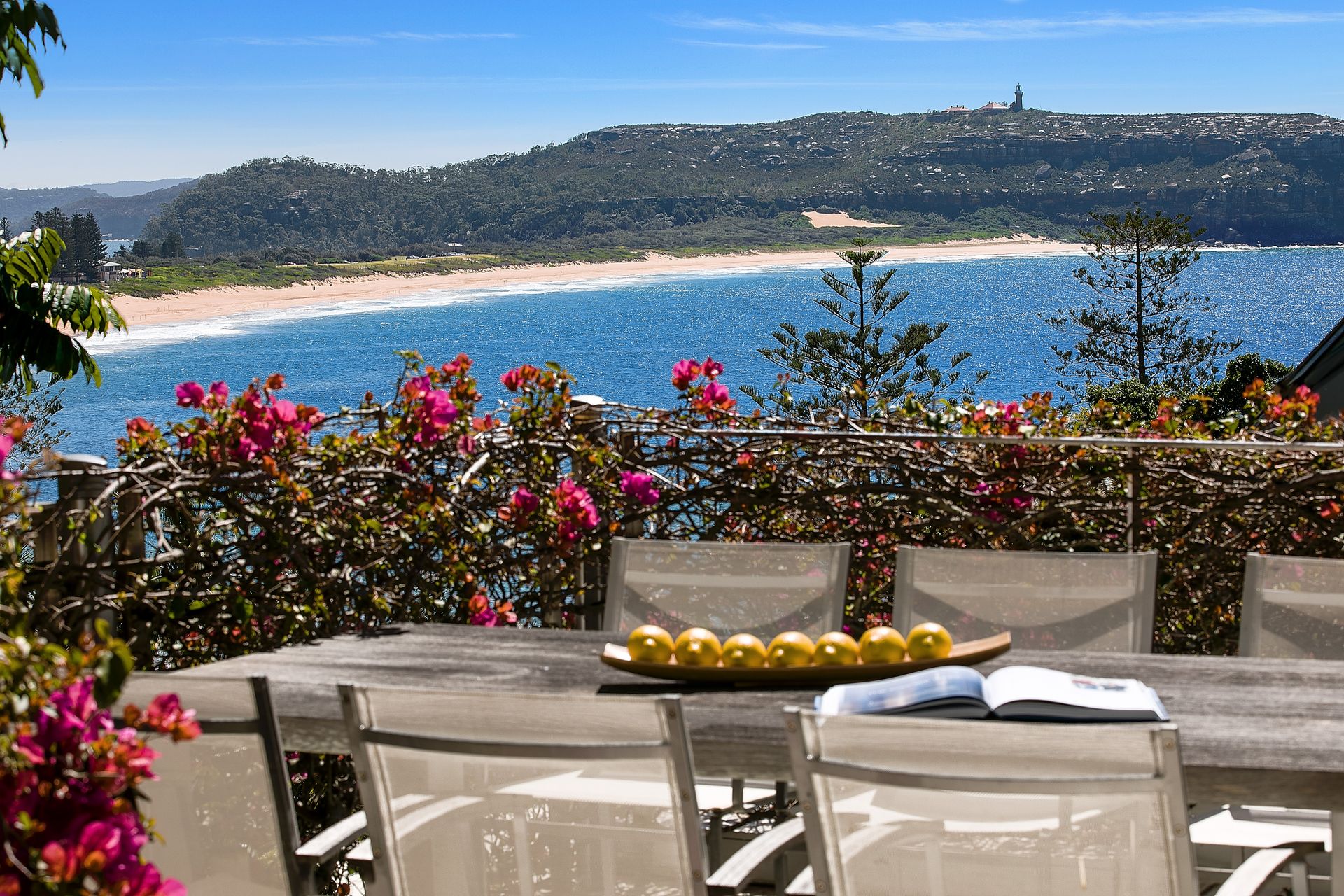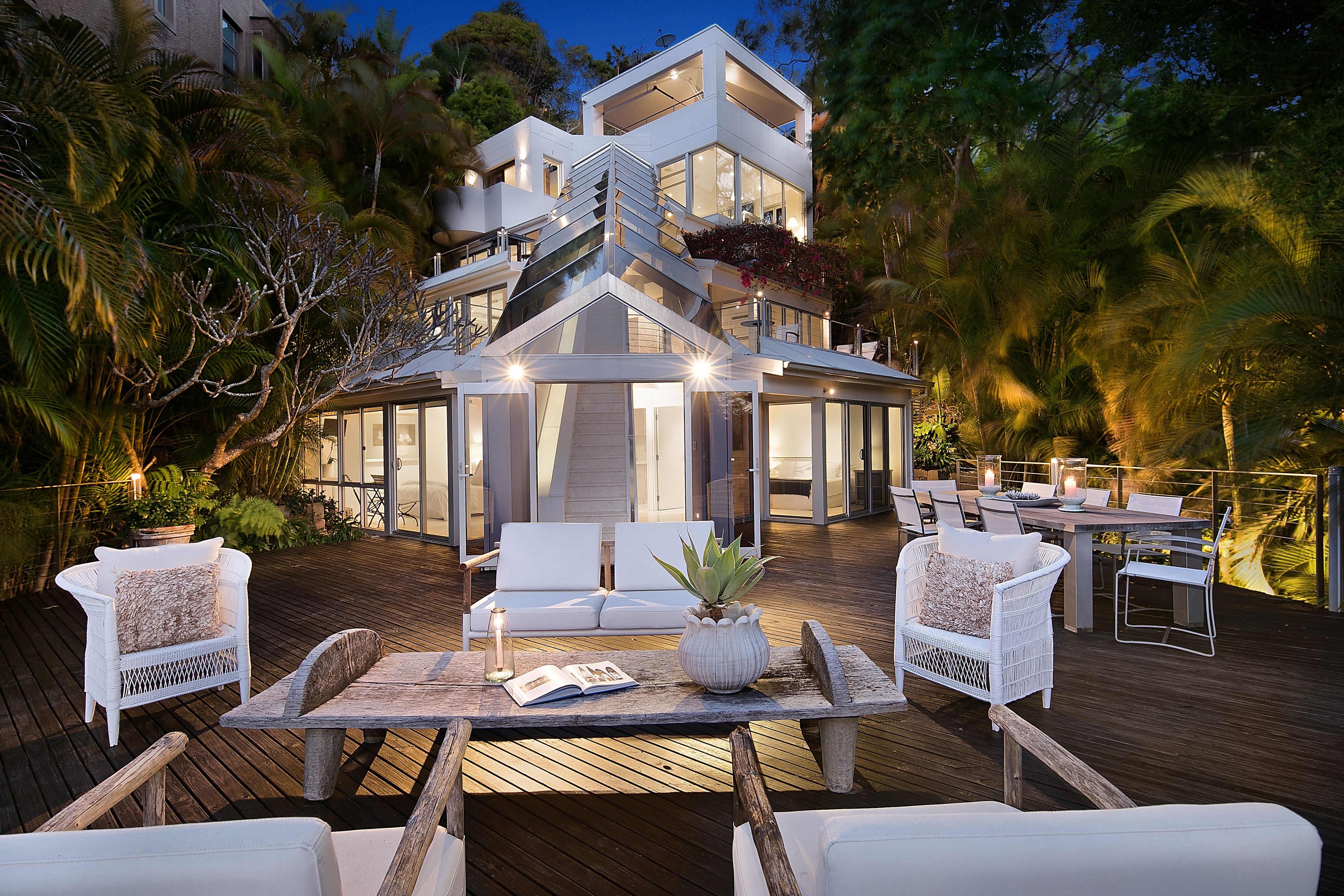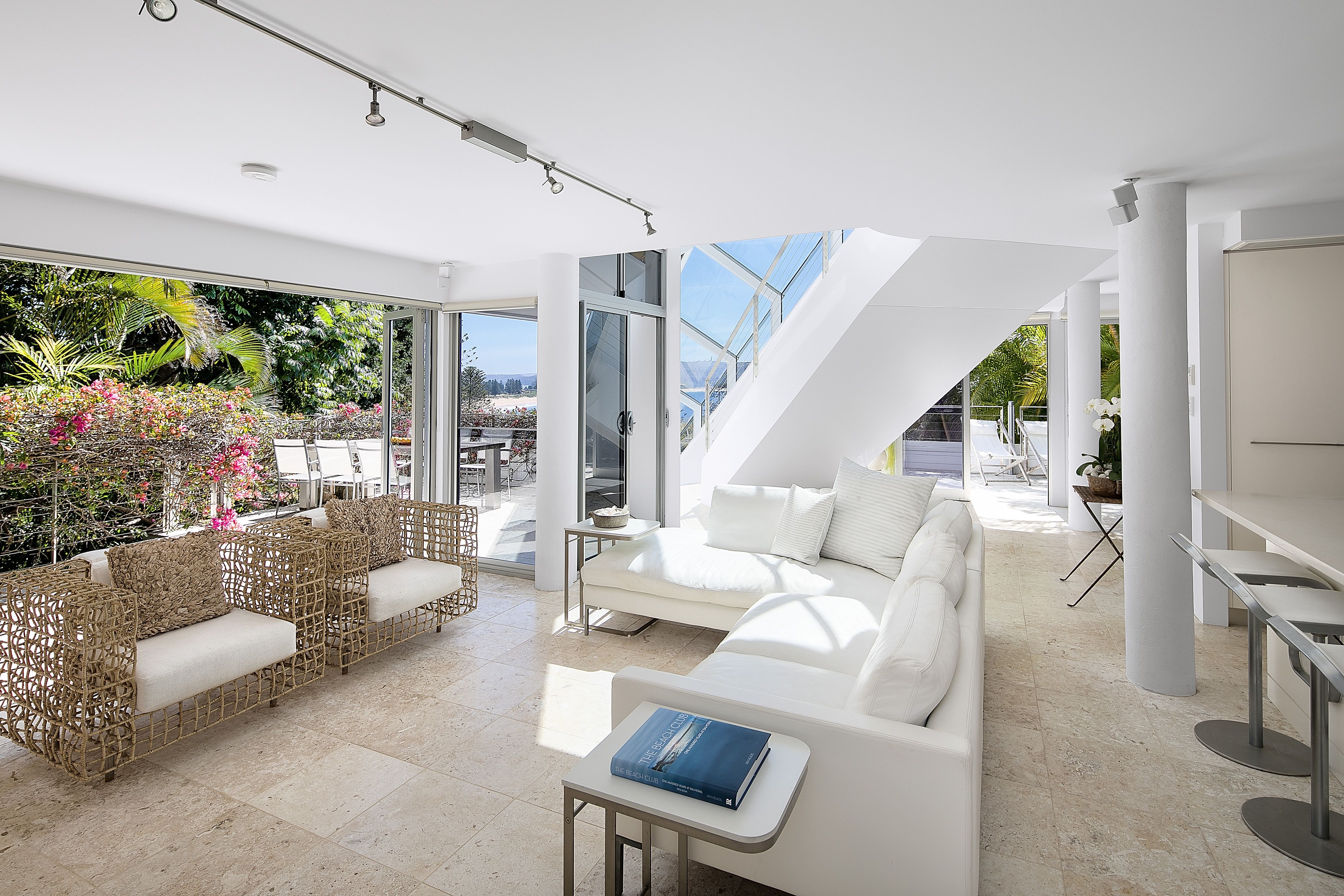 • Stunning interiors deliver panoramic Palm Beach views from every vantage point • Formal and casual lounges merge with expansive alfresco decks and terraces • Well zoned for guests with two serene bedrooms and kitchenette on lower level • Open plan Corian/gas equipped kitchen includes a casual meals bar • Each of the four deluxe bedrooms open to either a sun-drenched deck or terrace • Jetmaster gas fireplace, ducted/zoned A/C, ample storage with custom cabinetry • Guest powder room, wine storage, surround sound, lock-up carport + offstreet • Five minute walk to the Rockpool and beach from nearby public pathway