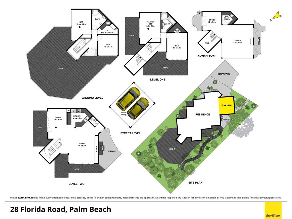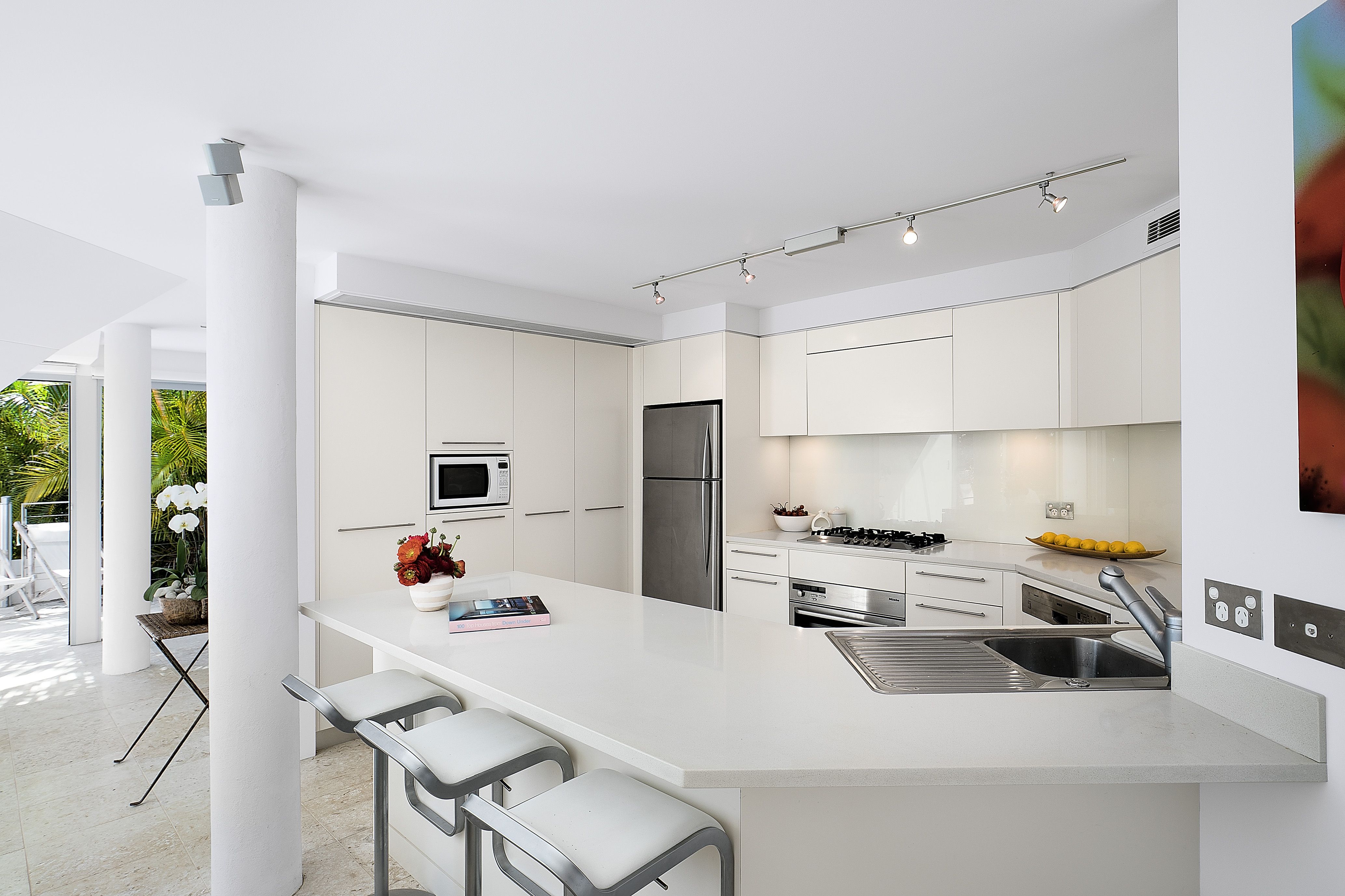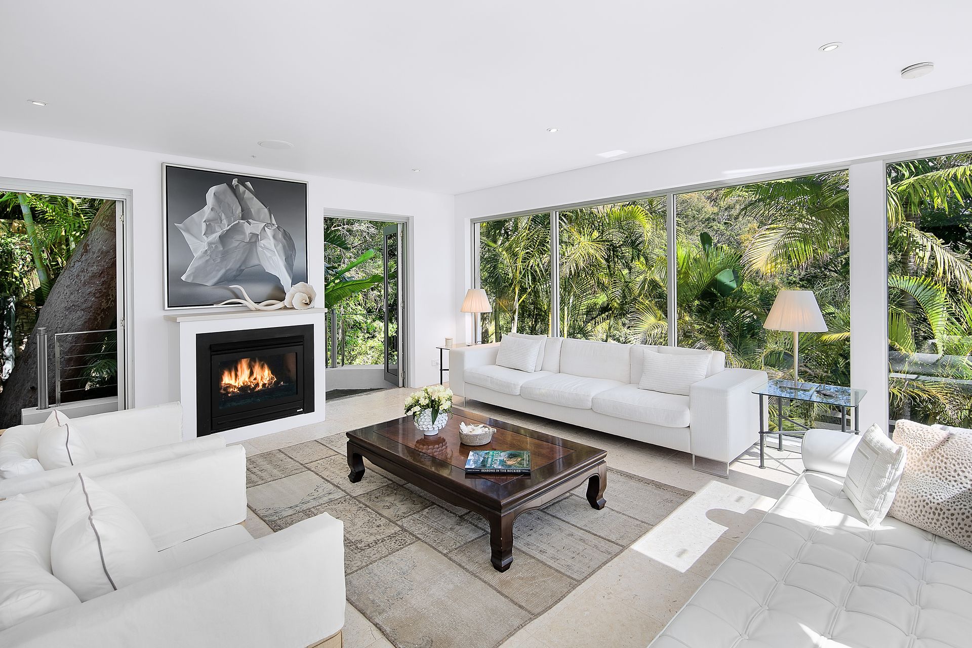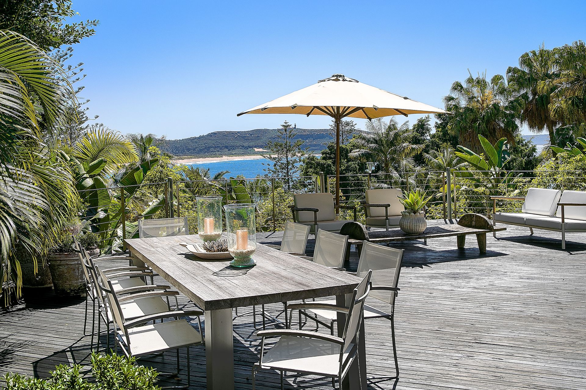 • Stunning interiors deliver panoramic Palm Beach views from every vantage point • Formal and casual lounges merge with expansive alfresco decks and terraces • Well zoned for guests with two serene bedrooms and kitchenette on lower level • Open plan Corian/gas equipped kitchen includes a casual meals bar • Each of the four deluxe bedrooms open to either a sun-drenched deck or terrace • Jetmaster gas fireplace, ducted/zoned A/C, ample storage with custom cabinetry • Guest powder room, wine storage, surround sound, lock-up carport + offstreet • Five minute walk to the Rockpool and beach from nearby public pathway