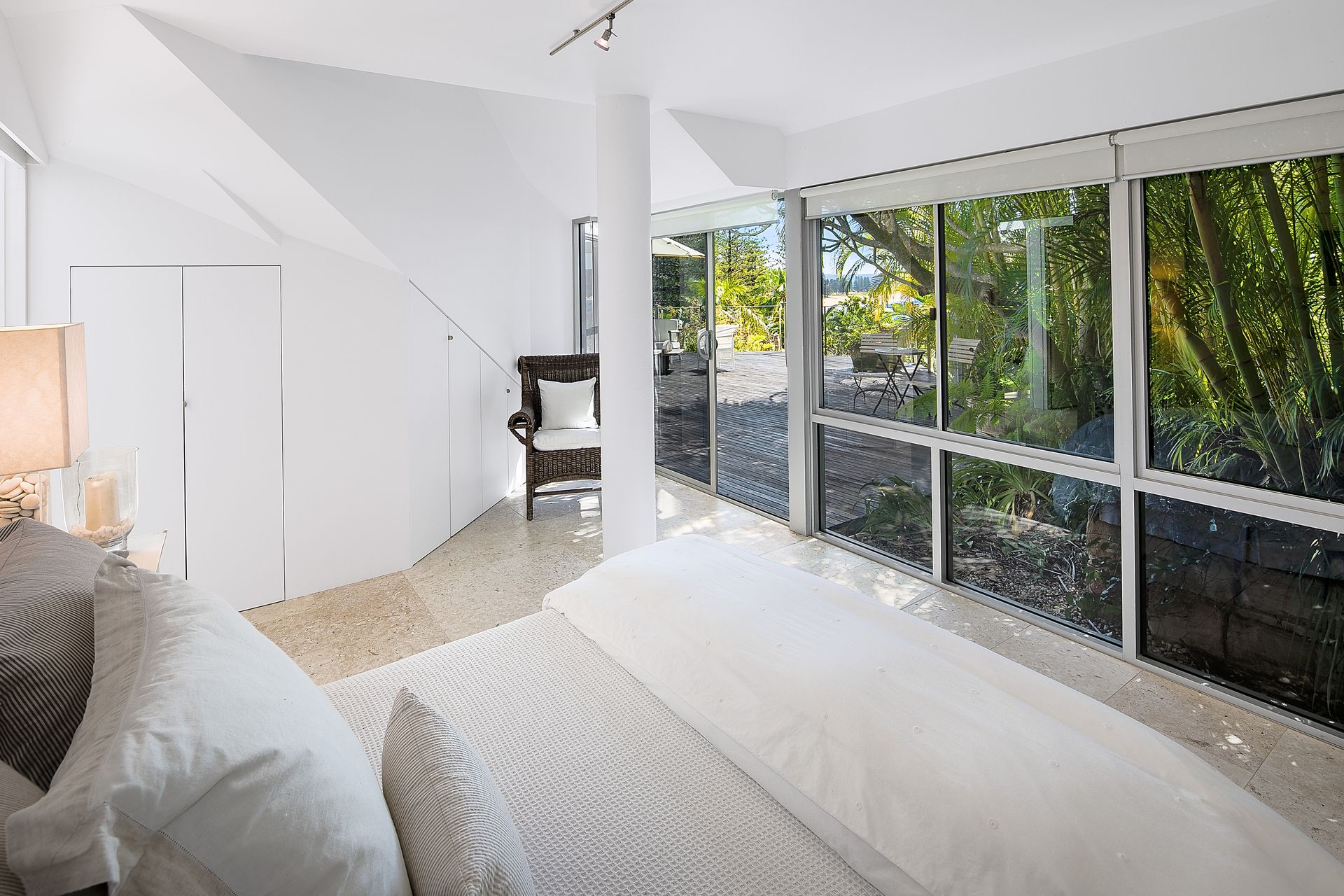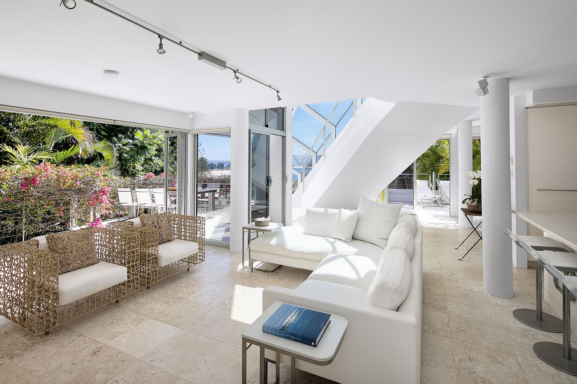 An award-winning architectural design is matched with iconic Palm Beach views and a perfect north aspect in this flawless beachside residence. The home claims one of the most private settings imaginable, yet the panoramic views and all day sunshine dominate the exquisite interiors. Its sophistication is derived from the simplicity of its striking forms, featuring a robust combination of extensive glazing, light shellstone floors and an easy connection to the outdoors from virtually every room.