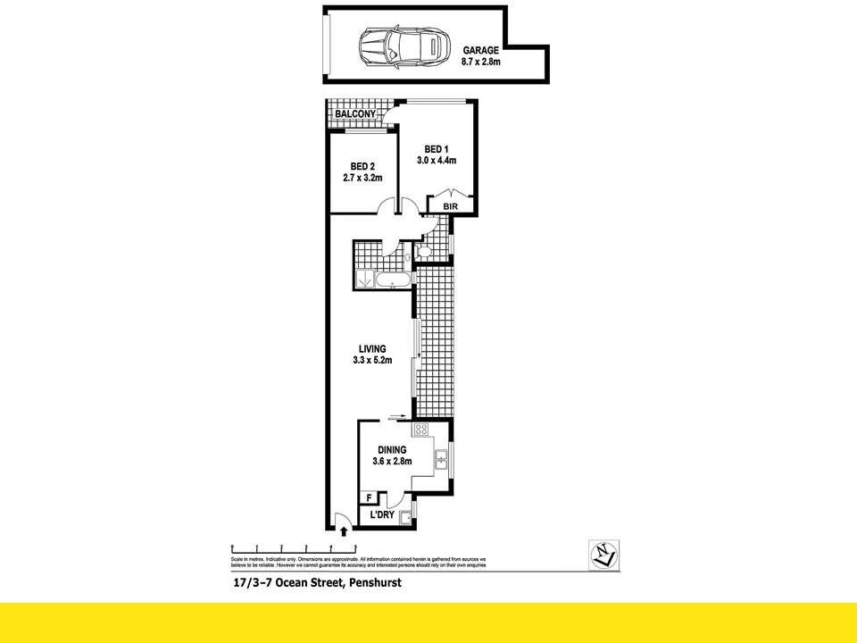 • Spacious open plan living area with sunny balcony • Large updated, eat-in kitchen • Two spacious bedrooms, main with large built-in and balcony • Spacious lock up garage, plenty of room for storage • Neat and tidy bathroom with separate bath and shower • Internal laundry • Short walk to Penshurst and Mortdale shops and train stations • Total size 119sqm (approx.). 99sqm internally plus 20sqm garage.